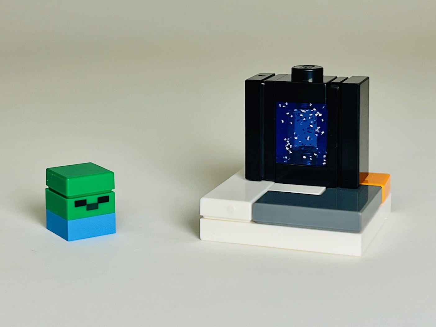 Another great Minecraft build! The choice for the 1x1 glitter purple brick for the portal is excellent. Kudos to the designer!