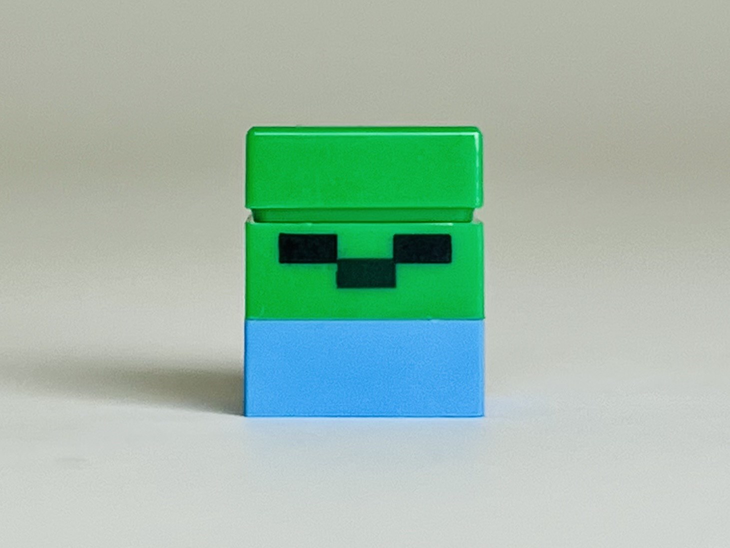 A micro mob Zombie first appeared in 21105 Micro World - The Village in 2013, but this variant is brand new! It may be simple, but it looks great, matching Steve in its build but using different colors and printing. As with Steve, you can build a second Zombie with the spare parts provided.