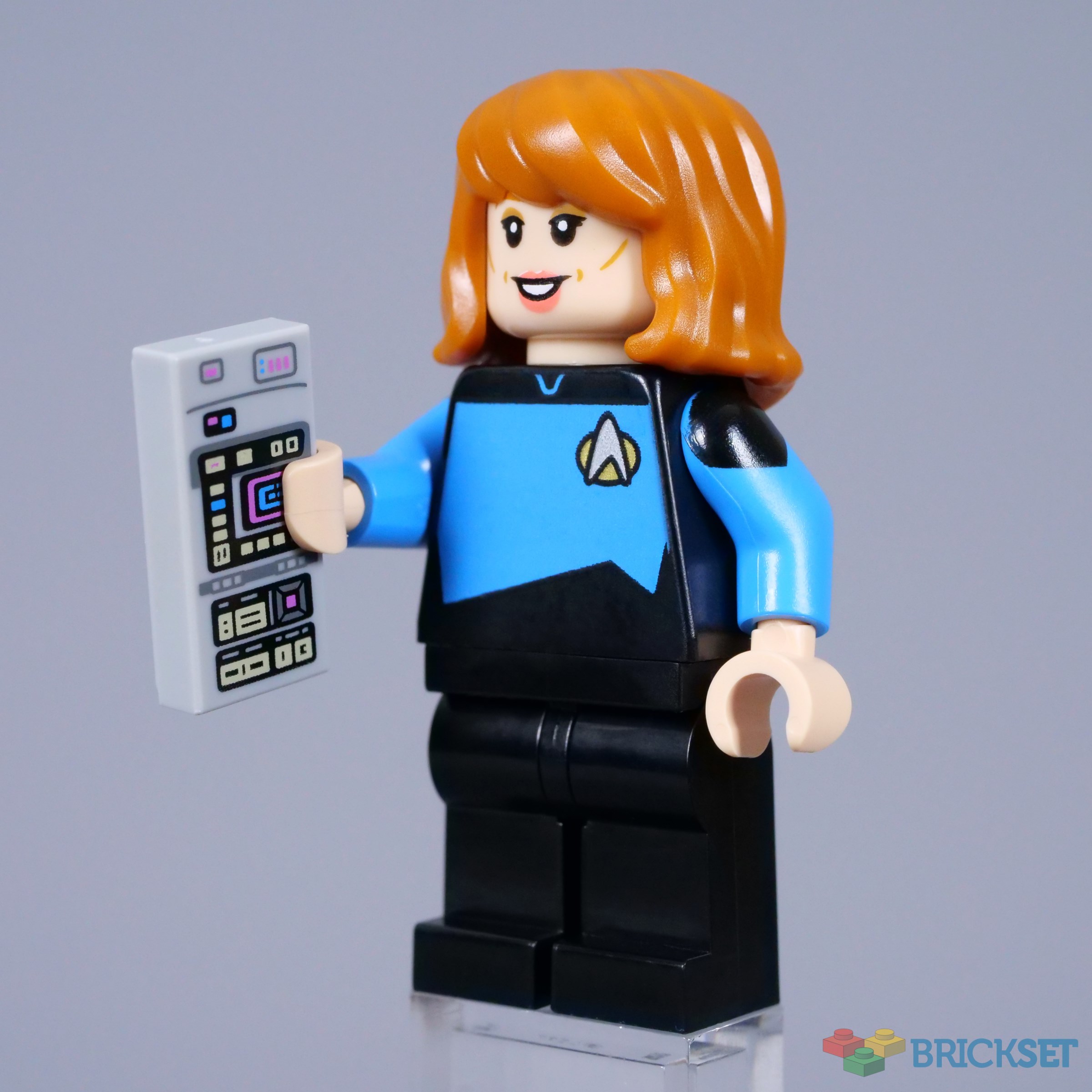 Guinan is perhaps the most surprising inclusion, but very welcome! The mysterious bartender running Ten Forward is outside the bridge crew, though her sage advice is often important and Guinan translates well to minifigure form, incorporating a new hair and hat piece inspired by the character's most common attire.