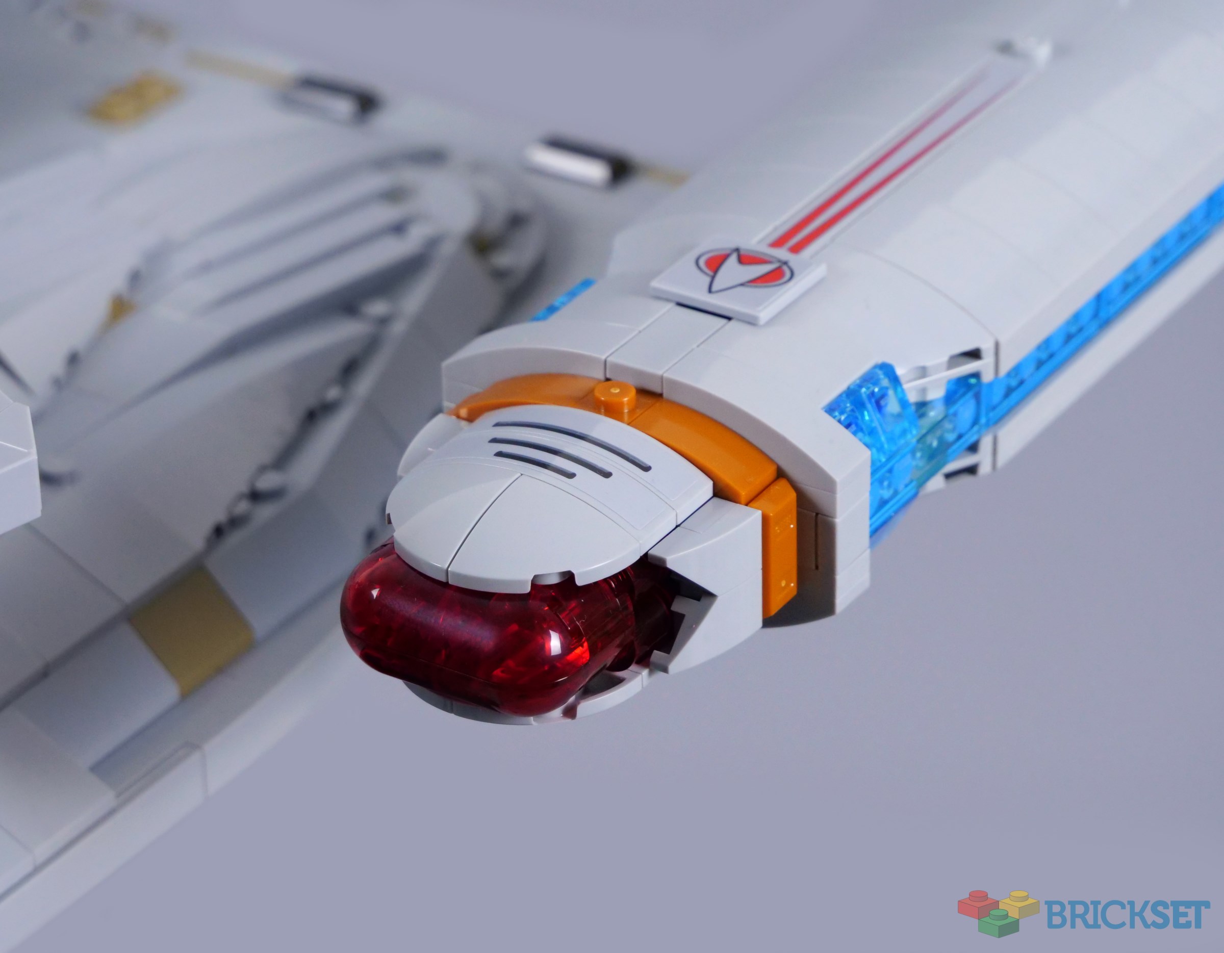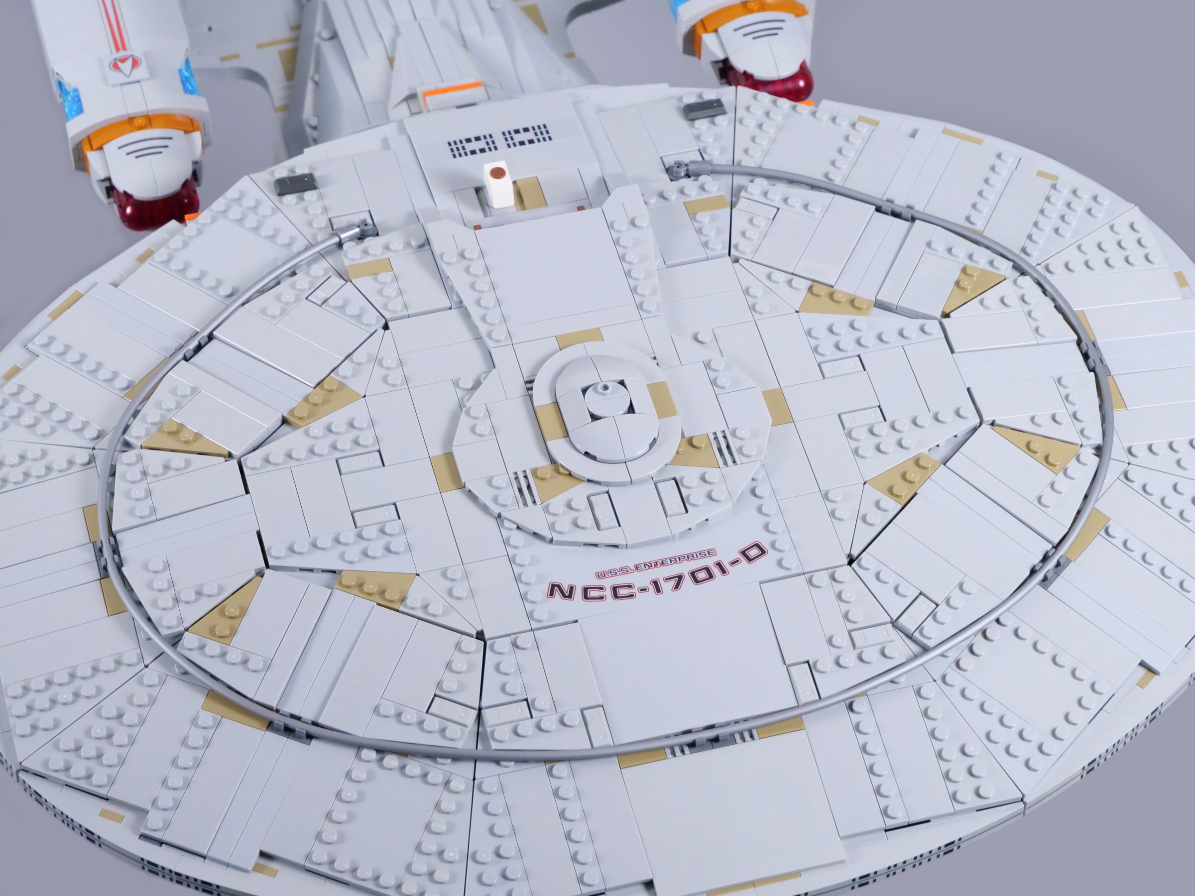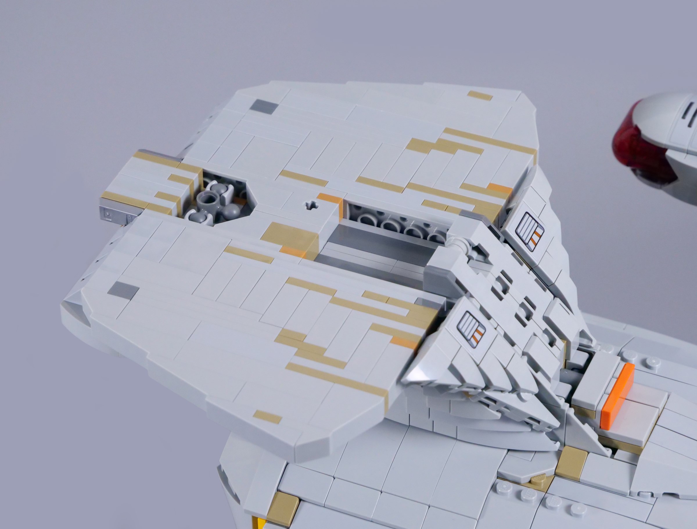 Certain vehicles seem inherently suitable for a LEGO recreation, like the angular shuttlecraft in 40768 Star Trek: Type-15 Shuttlepod. The Enterprise NCC-1701-D is quite the opposite though, packed with compound curves. Given the challenge of building those curves without resorting to highly specialised pieces, I think this model looks outstanding on the whole.