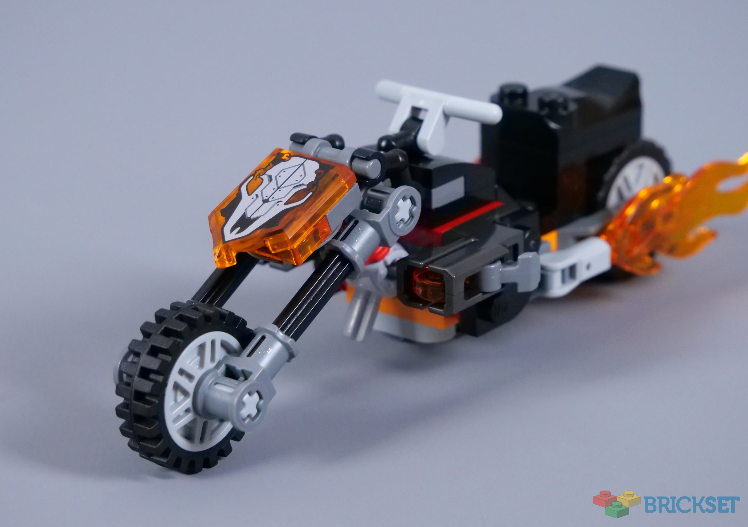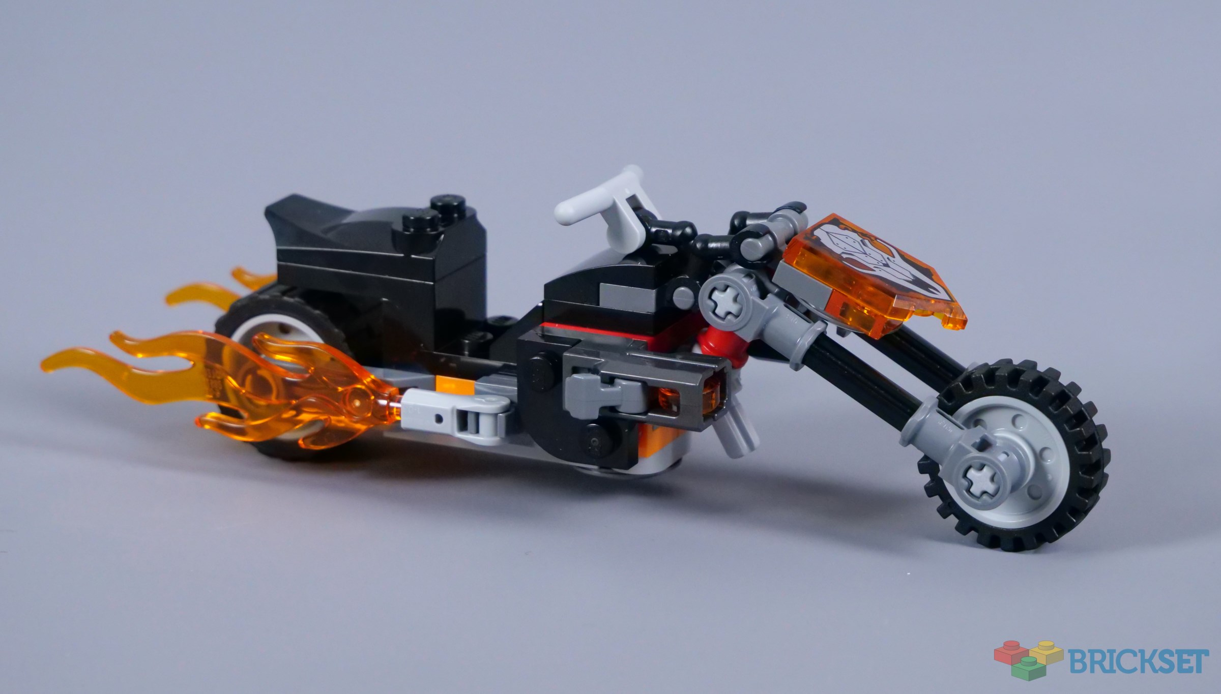 LEGO motorcycles are often oversized and the previous two Ghost Rider Hell Cycles are truly enormous! That can be a good thing because there is more opportunity for detail, although the smaller edition available here is a fine alternative. The bike measures 14cm in length, including the flames, so it is still a decent size, but it does not overwhelm other vehicles or buildings.