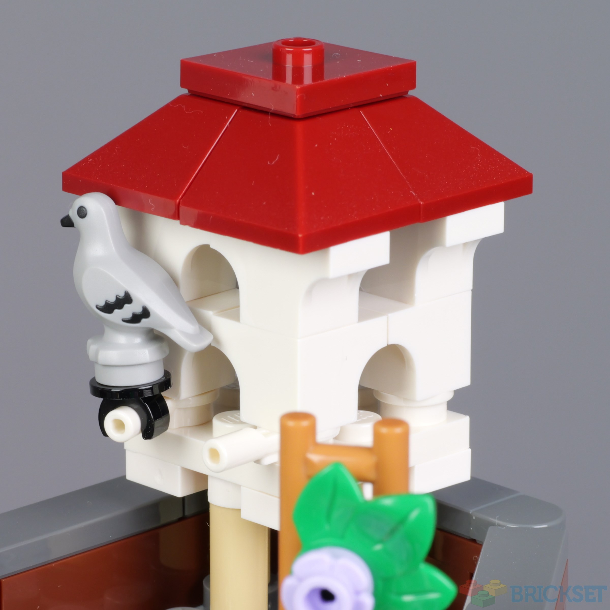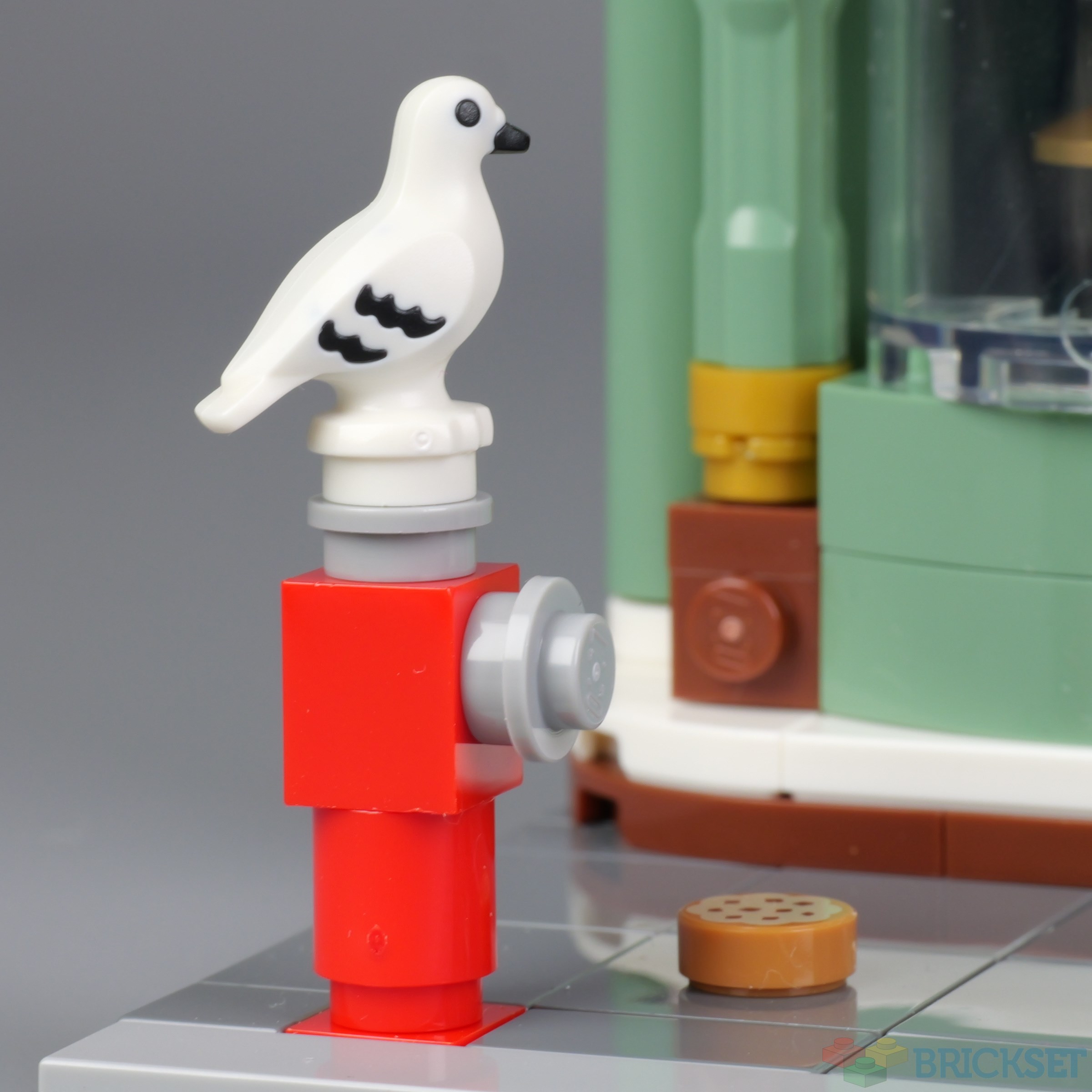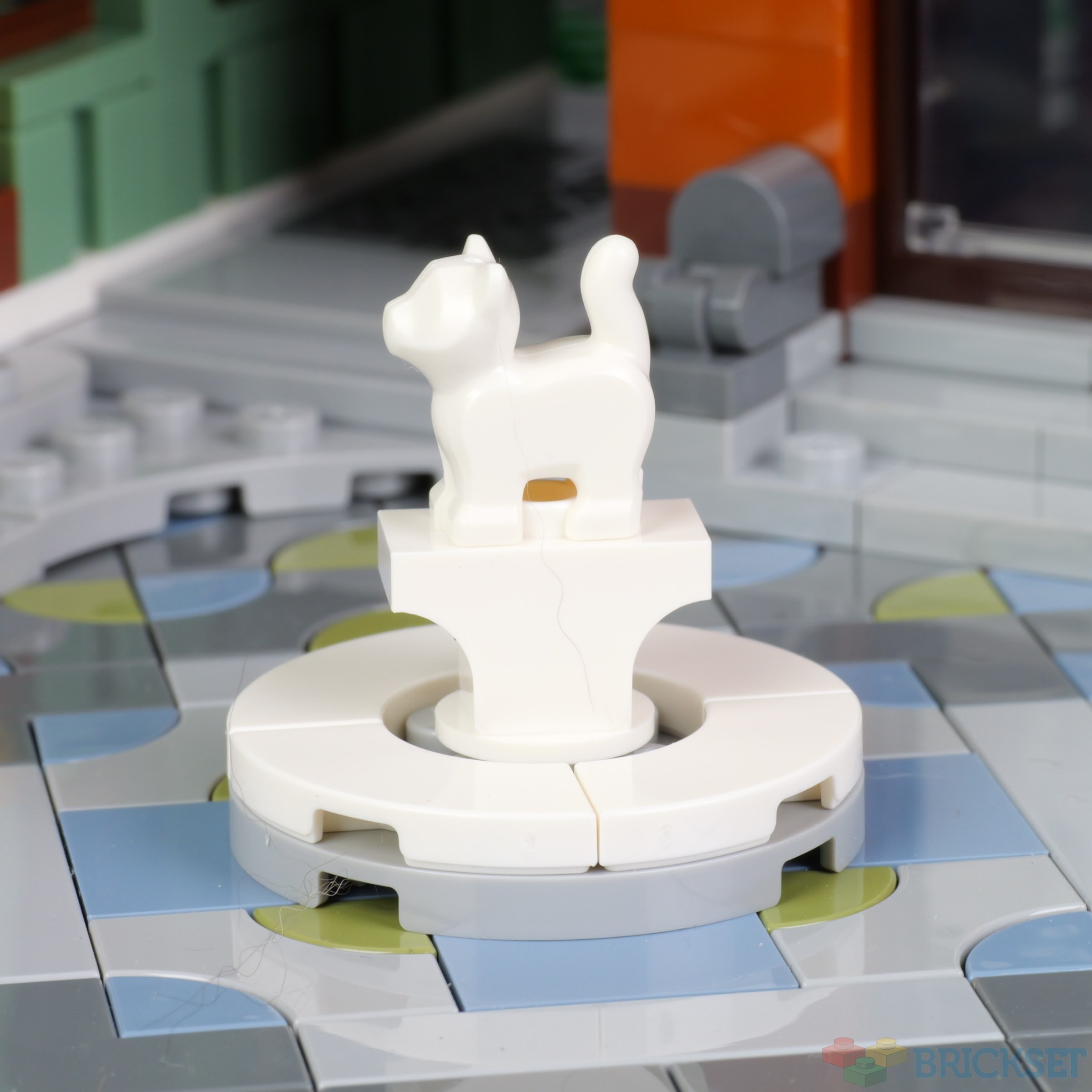 The small square in the middle has a statue of a cat, and the set introduces a white 'bird no. 32' (aka pigeon) which I suspect is much-coveted by anyone who builds LEGO cities!