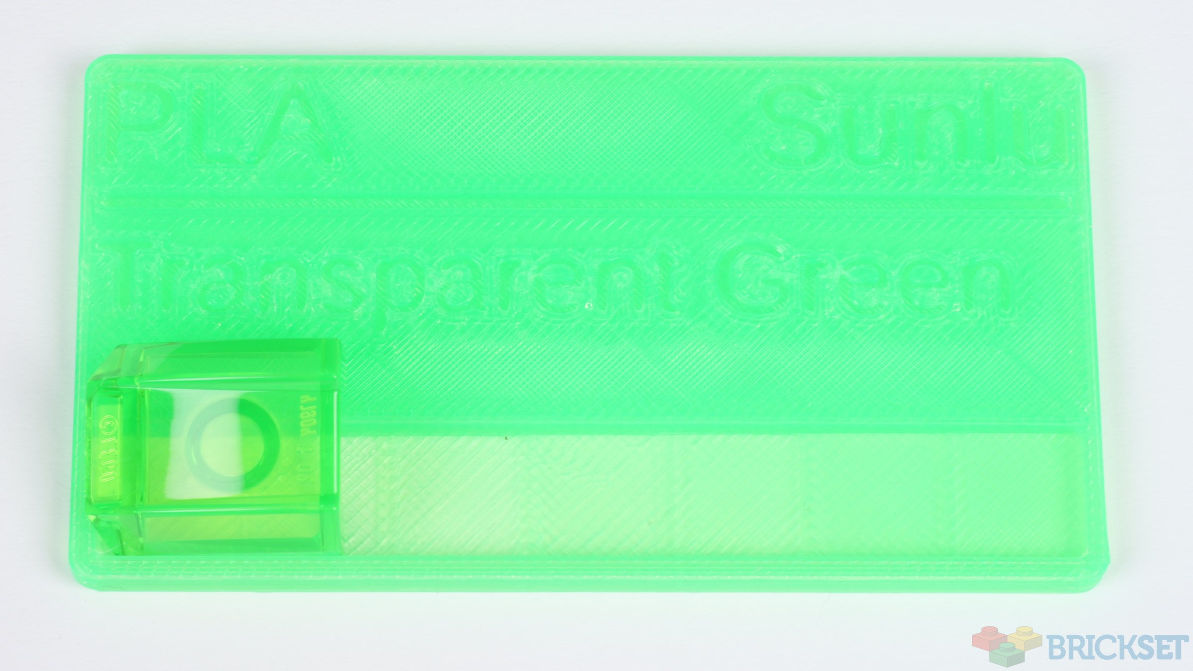 Sunlu transparent red and yellow pass for LEGO transparent colours, and its green is close to transparent bright green. I've not found one that matches regular transparent green yet.