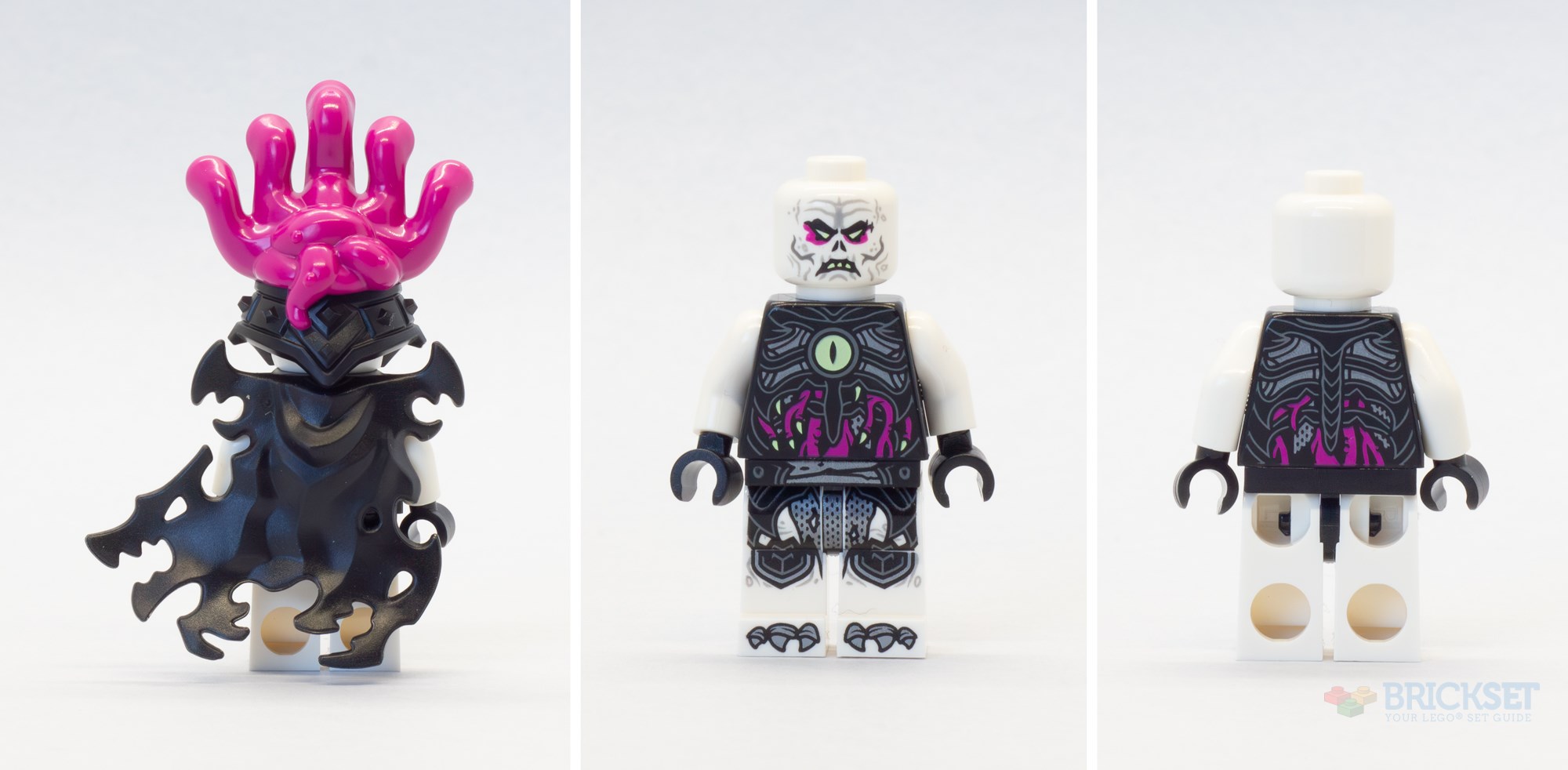 This year's Big Bad is the Nightmare Emperor, a suitably imposing figure in minifigure form! This is one of the most impressive minfigure designs I've come across, with a highly detailed torso, legs, and face, a new cape, and an enormous headdress. He is accompanied by two grimspawn with menacing faces.
