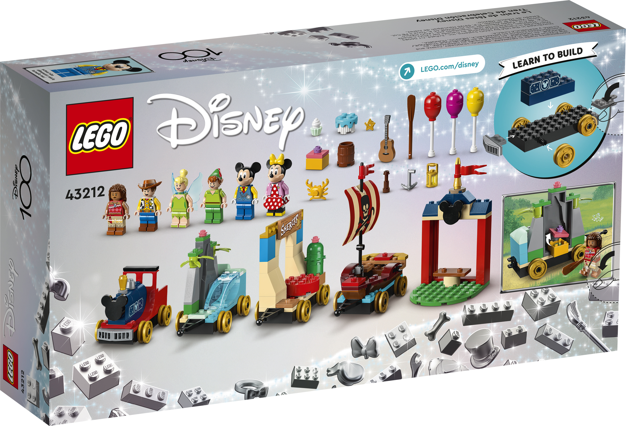 The LEGO Disney Celebration Train (43212) calls all young Disney fans to jump aboard and join in the anniversary celebrations. The parade train features beloved Disney and Pixar characters from Mickey Mouse and Minnie Mouse, Moana, Peter Pan, and Toy Story on bespoke parade floats.