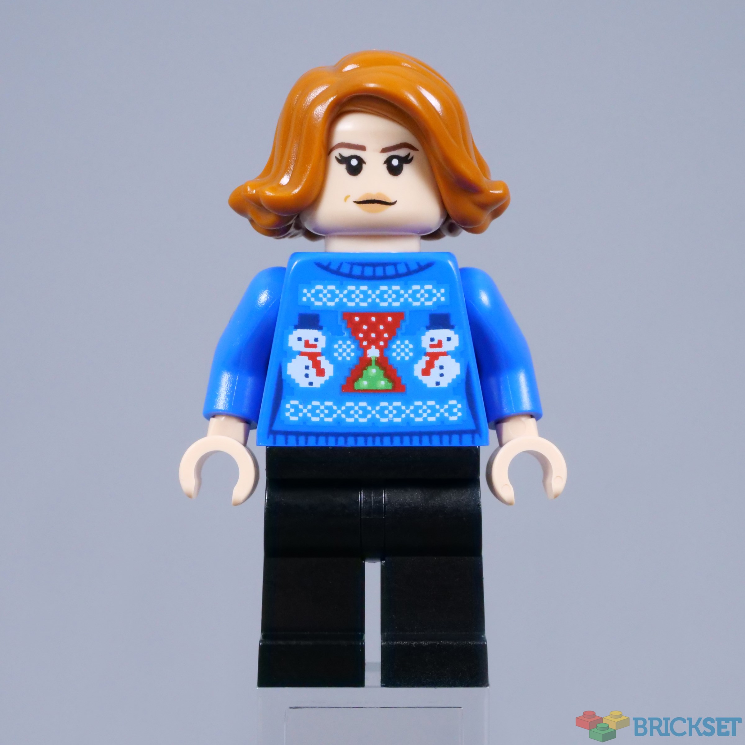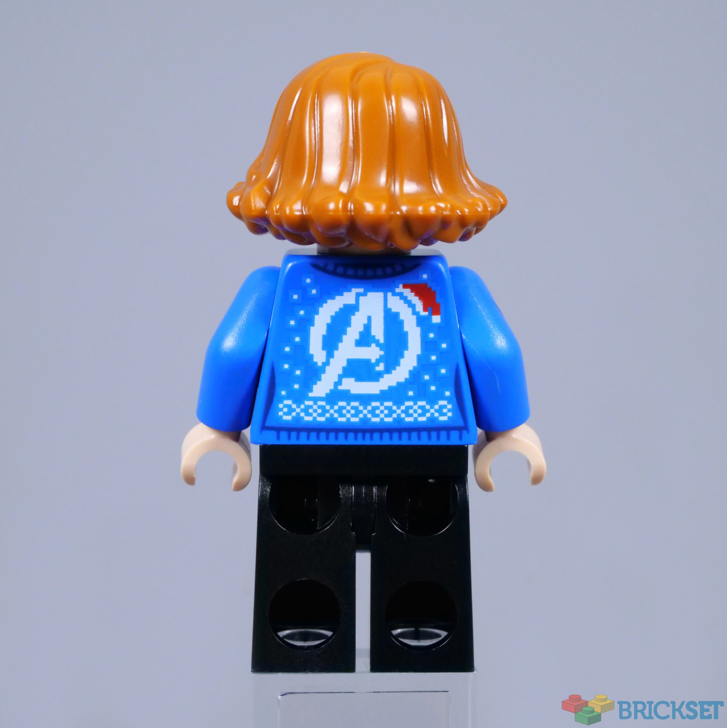 Our third minifigure emerges instead and this version of Black Widow, like Spider-Man before, wears a charming festive jumper. The knitted style is again effective and Black Widow's symbol is displayed on the front, although with a Christmas tree inside on this occasion! The blue colour does not feel suited to Black Widow though.