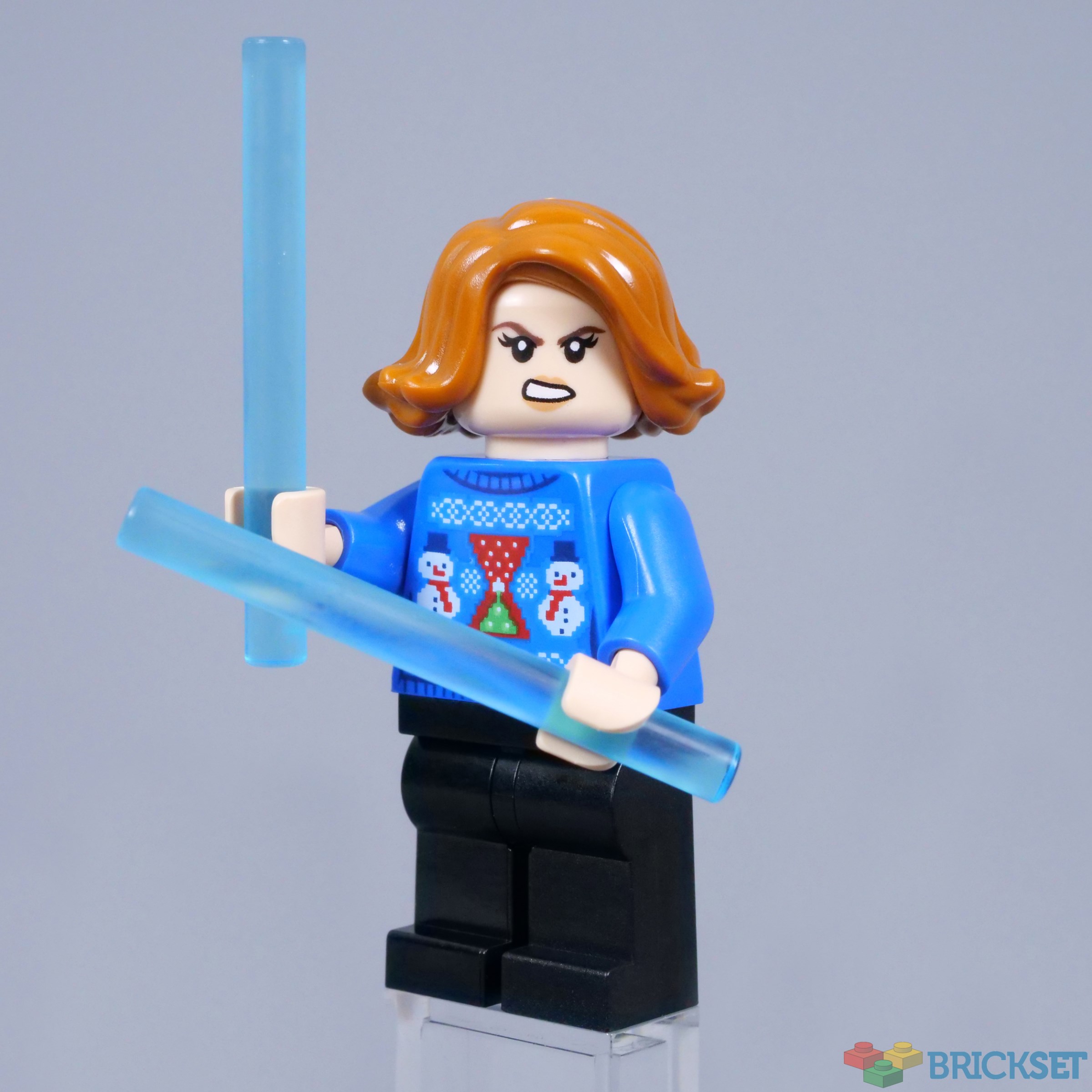 The minifigure wields a bar of trans-light blue 4L bars, representing Black Widow's electroshock batons and returning from many of her past appearances. Hopefully they will not be needed for the Christmas season!