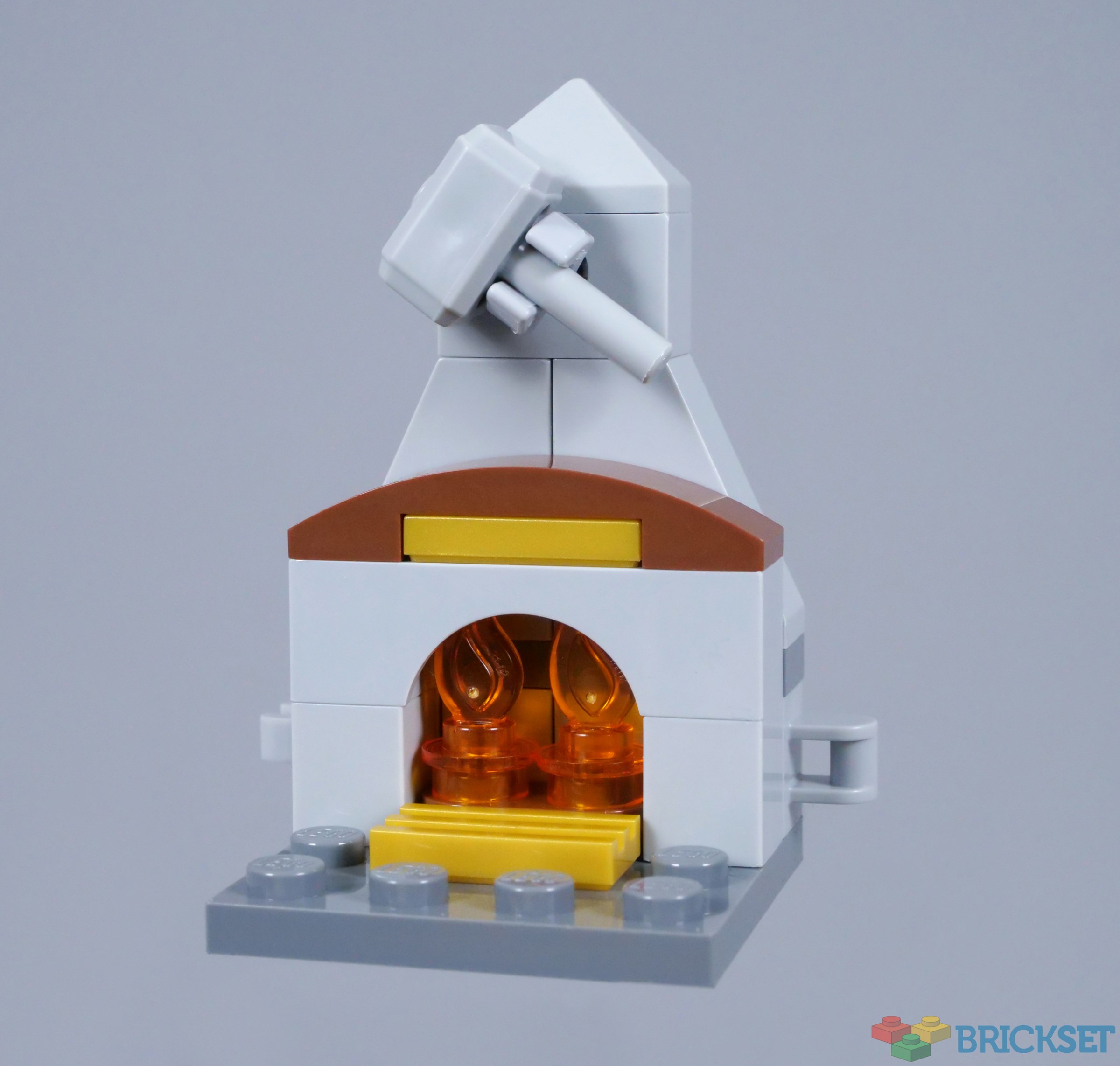 Fireplaces are another regular feature of LEGO Advent Calendars, having already appeared in the City calendar yesterday. This example is somewhat lacking in texture, but its general shape looks good and I like the reddish brown and pearl gold accents. In addition, Mjölnir is attached to the chimney breast, which provides some Marvel theming, at least.