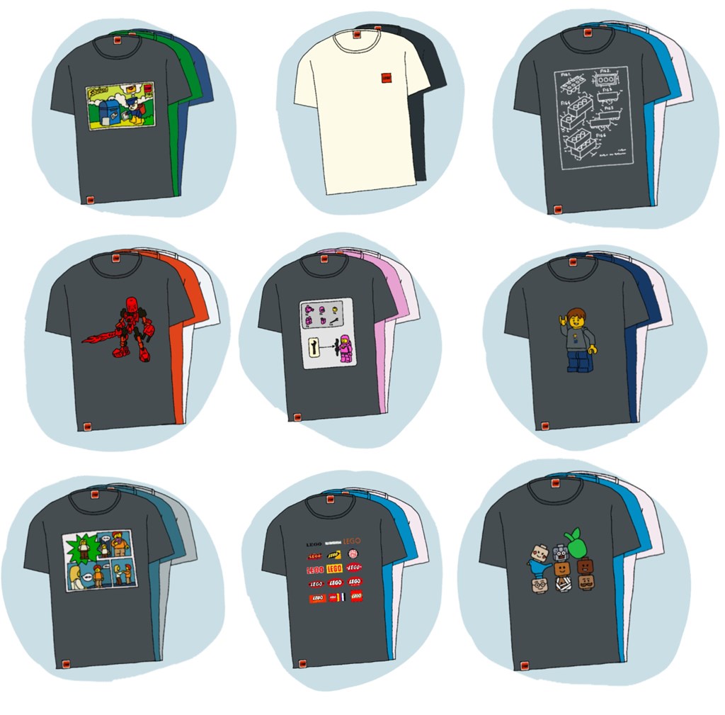 Agreed on the T-shirts. When I've bought Lego-themed clothes in the past from third parties they've been replications of minifig torsos: the Classic Space logo or Castle coats-of-arms. (My sister-in-law wants one with the Paradisa 973px5 horse + palm tree design, but I don't think anyone makes that!)