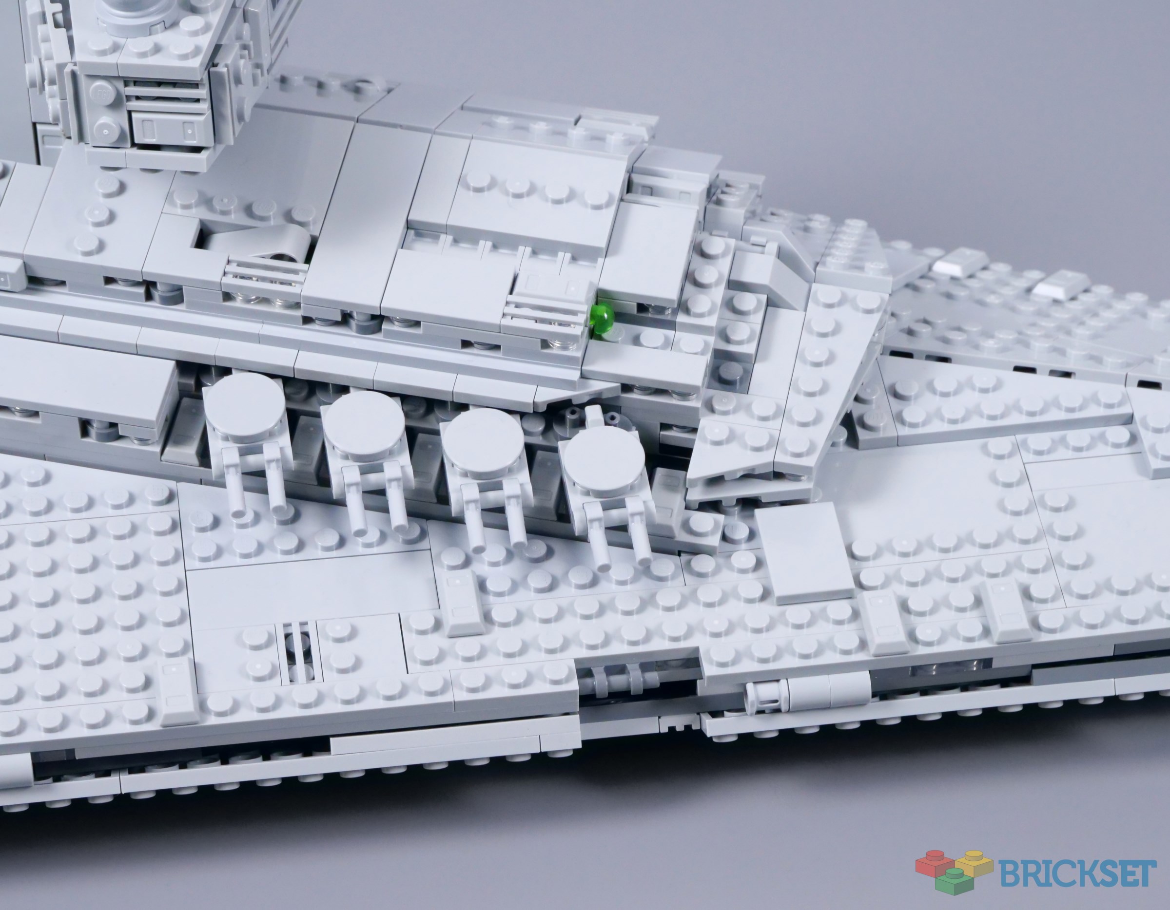 Nevertheless, there are areas of improvement between the previous Star Destroyer and this design. The engines are accurately arranged and attached using Technic elements, as usual, but those Technic parts are disguised reasonably well and the surrounding armour looks better than ever. I particularly like the 2x4 tiles framing the engines.