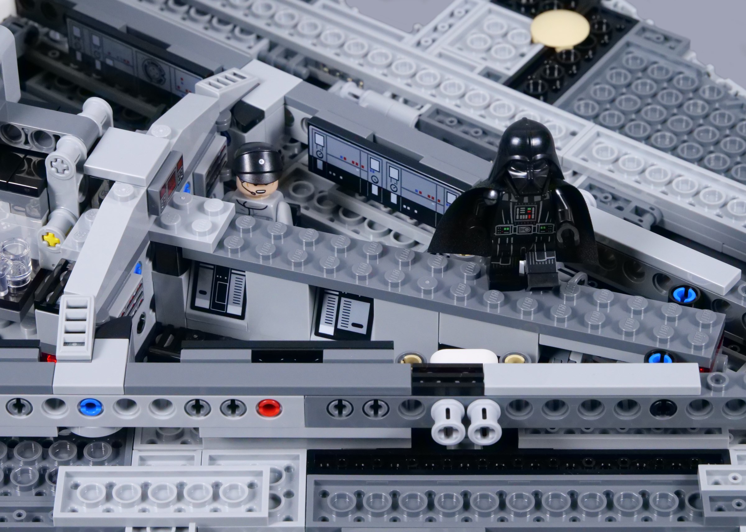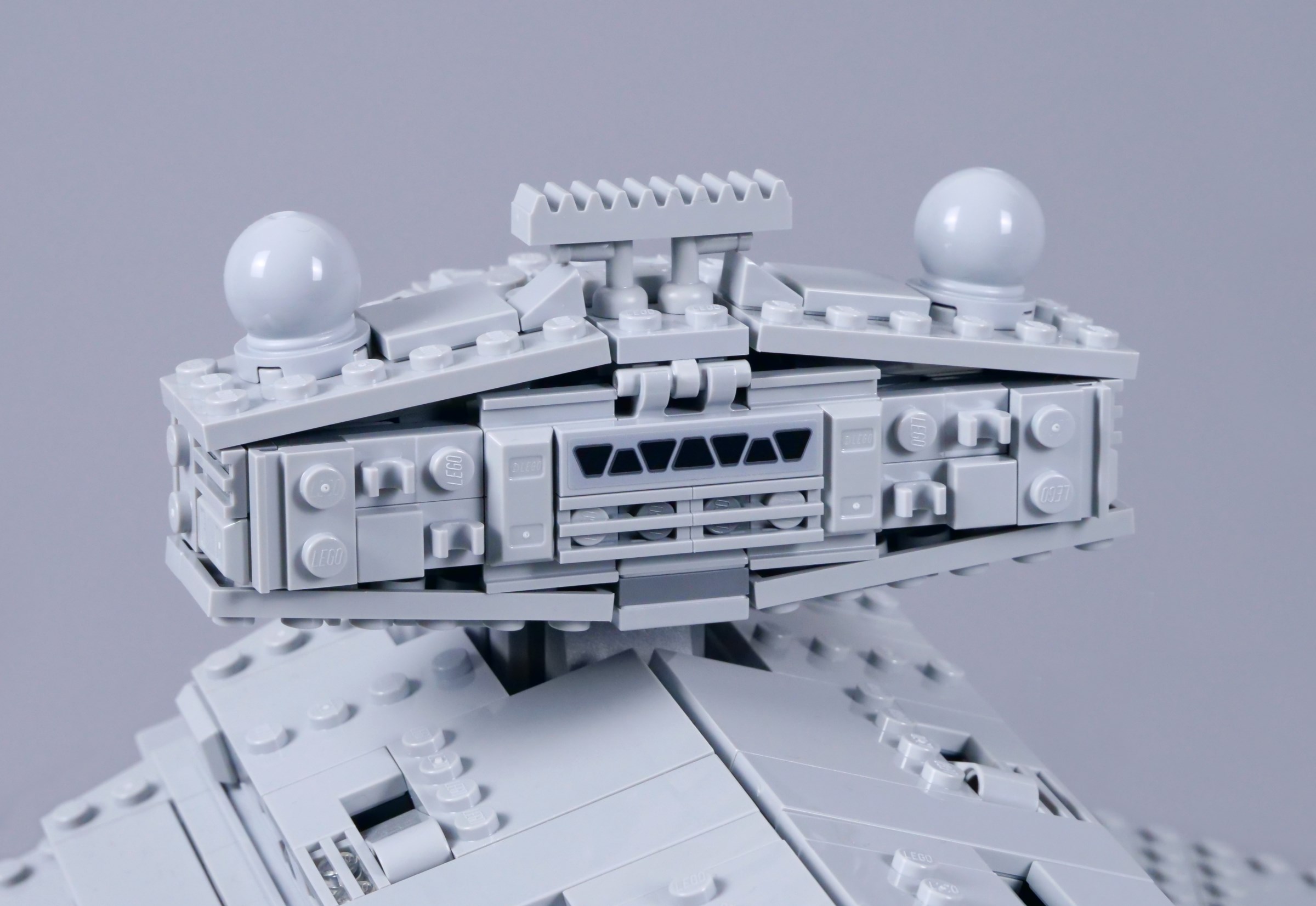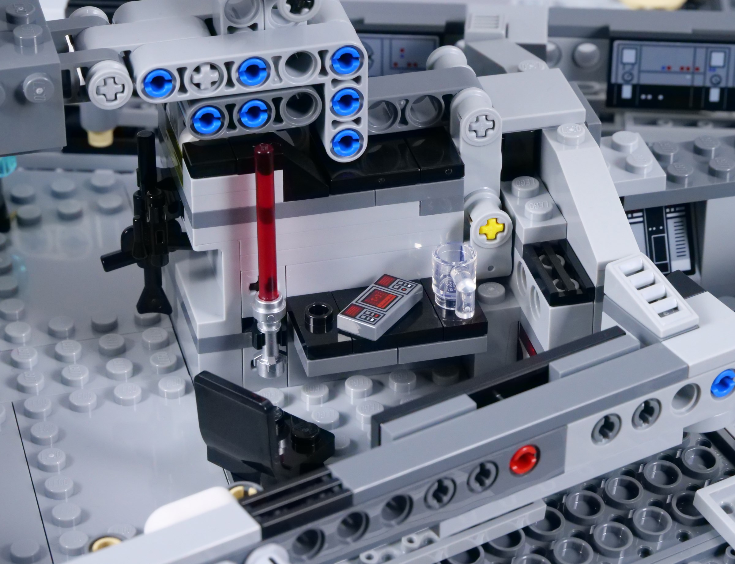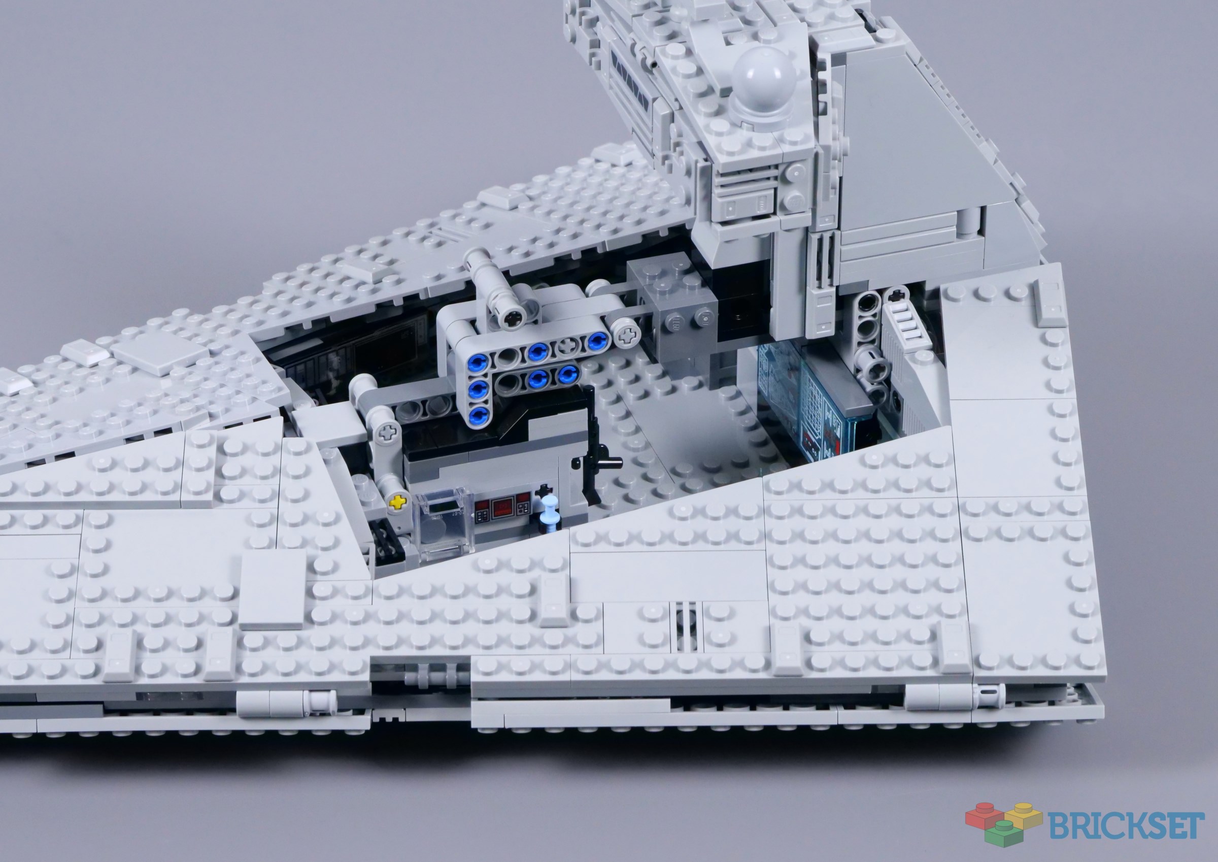 However, I would prefer a stronger colour contrast between those panels and the interior, as everything blends together in a mix of greys. The interior of 75190 First Order Star Destroyer remains the gold standard in that regard, being predominantly black inside. That would not be possible here because Imperial bridges are grey, but maybe the Technic bricks on either side could have been black, serving as defined borders.