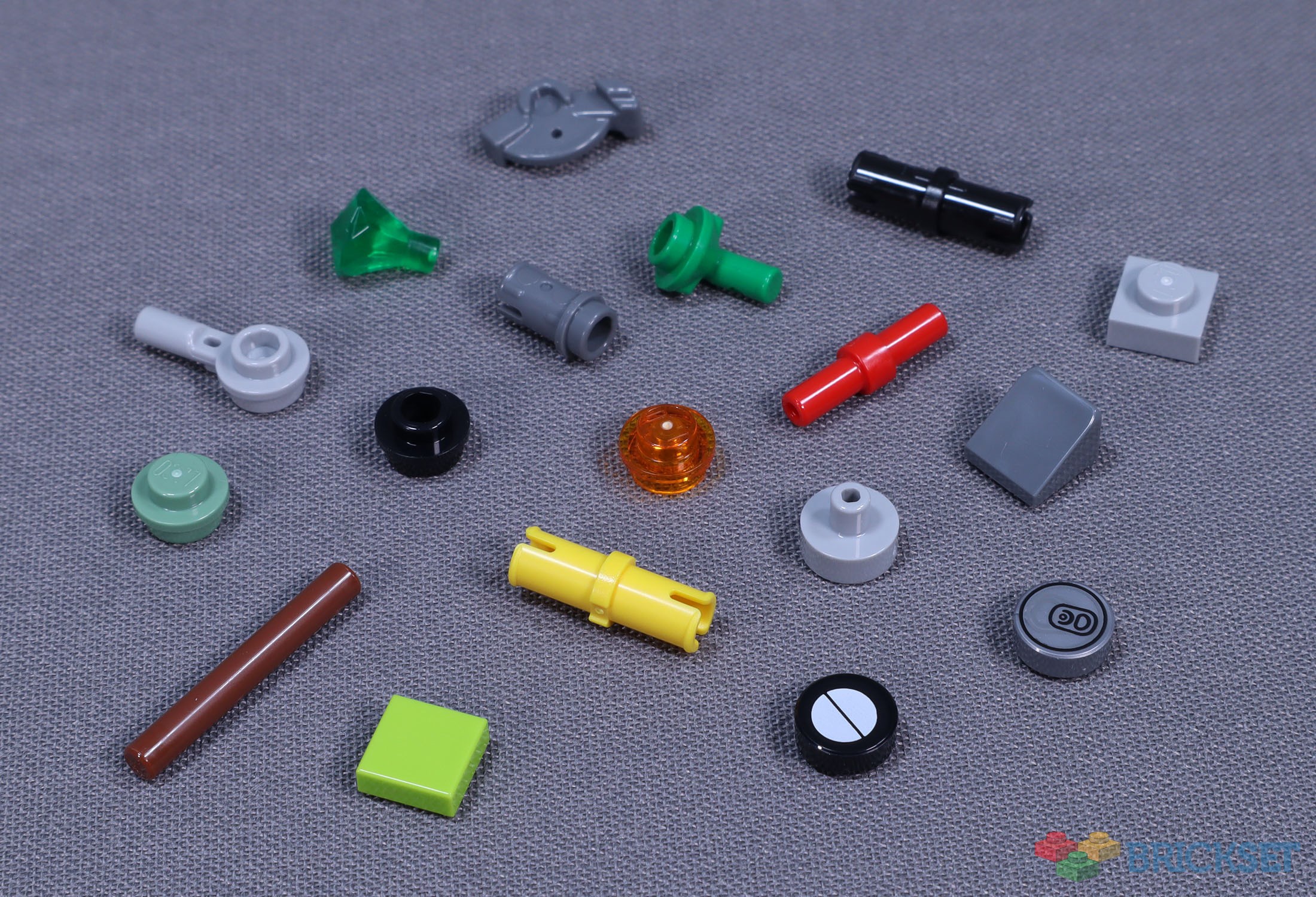 A chaos emerald, printed screw head, and can top are amongst the expected extra pieces.