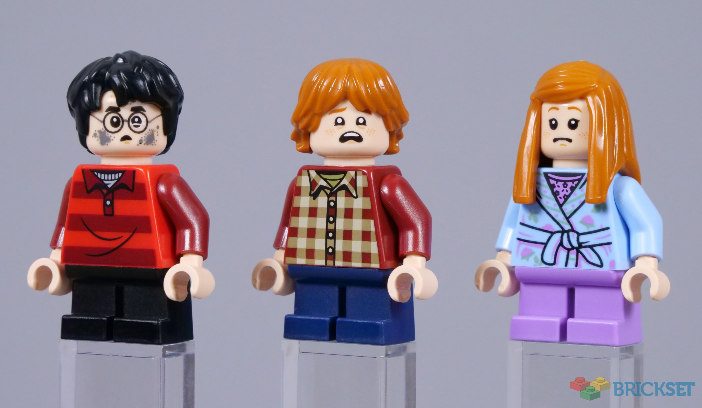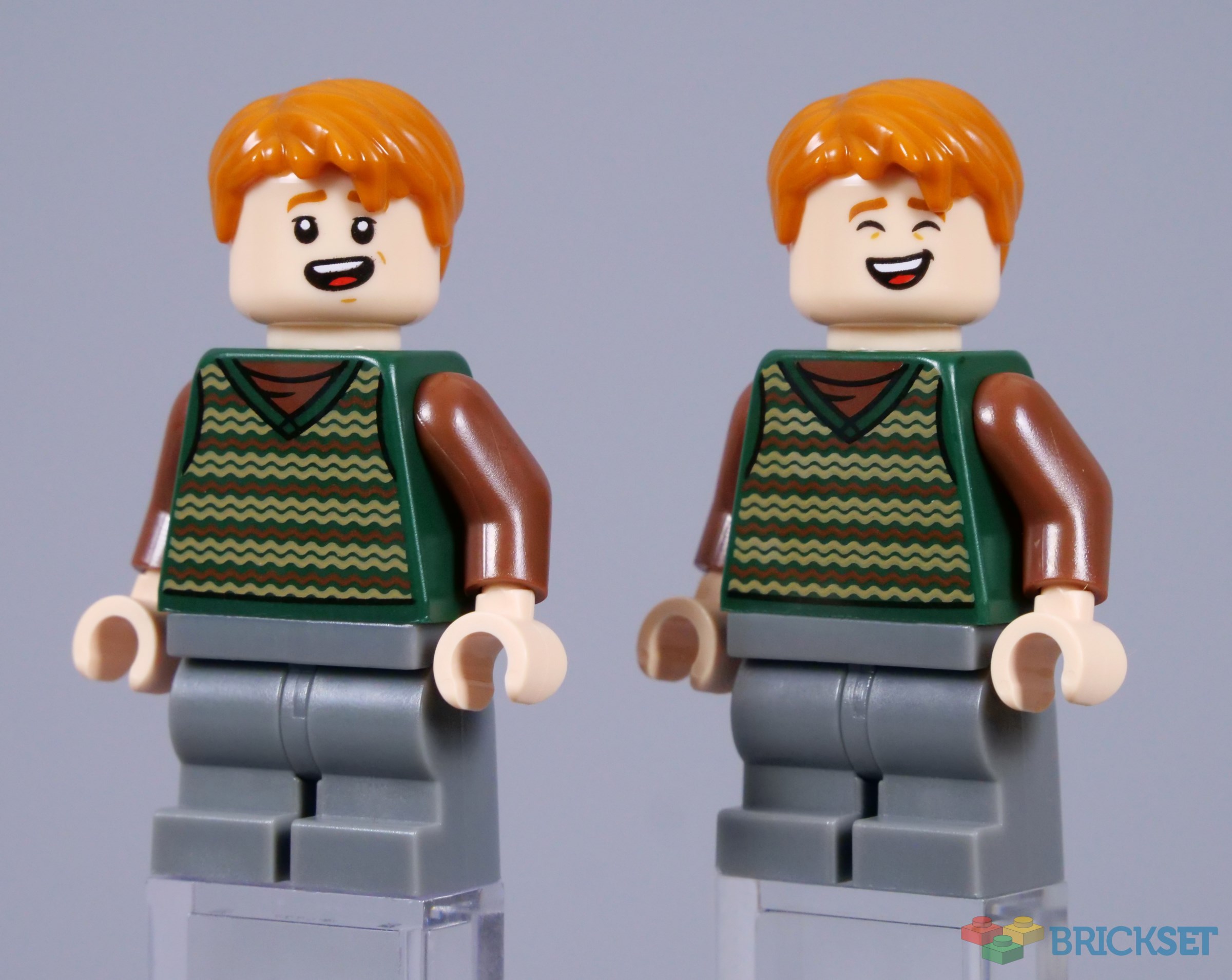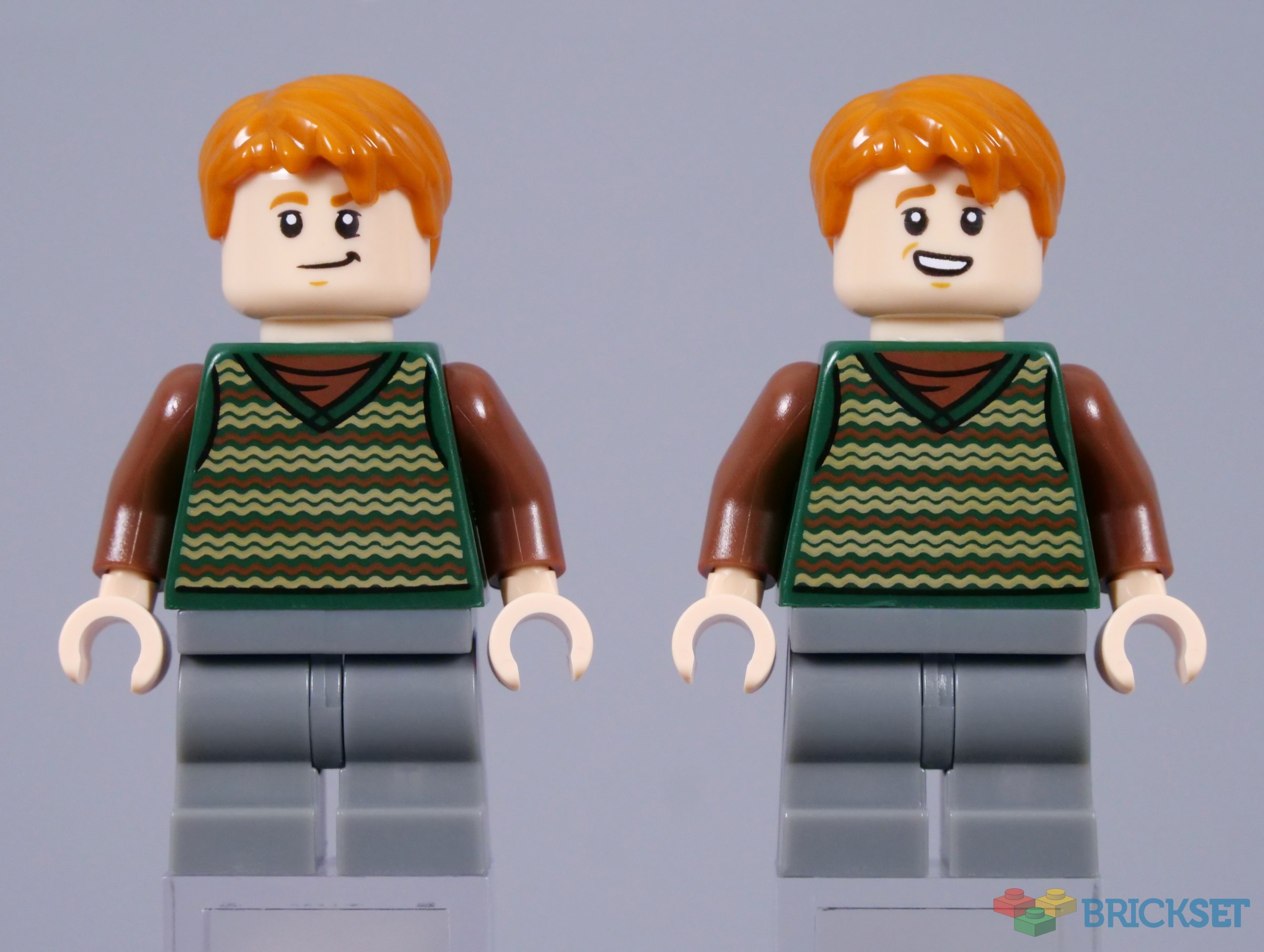 Unlike the other minifigures, Fred and George's double-sided heads have appeared previously, originating from 75978 Diagon Alley. Regardless, these cheerful expressions are perfect for the twins and their dark orange hair pieces look reasonable as well.