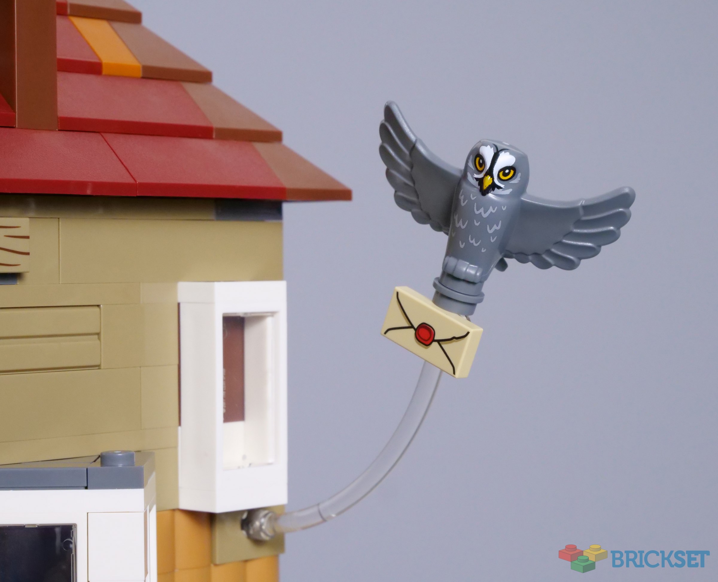 Nevertheless, I think the model looks fantastic. The slanted sections of the structure are fairly accurate to the movie and its height of 46cm seems appropriate for the Burrow, far exceeding 75980 Attack on the Burrow. In addition, this building is fully enclosed and finished on all sides, unlike its precursor. There are cosmetic similarities between the pair though, as the construction of the roofs and the porch are almost identical.