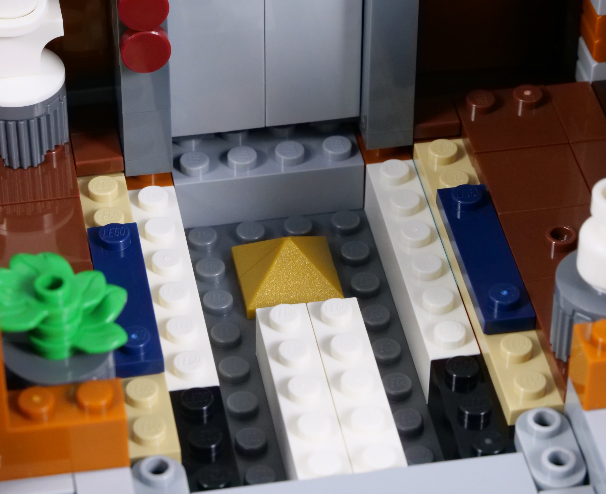 There are three Technic pin holes near the front of the mansion, accommodating the misplaced Technic pin in 76178 Daily Bugle.