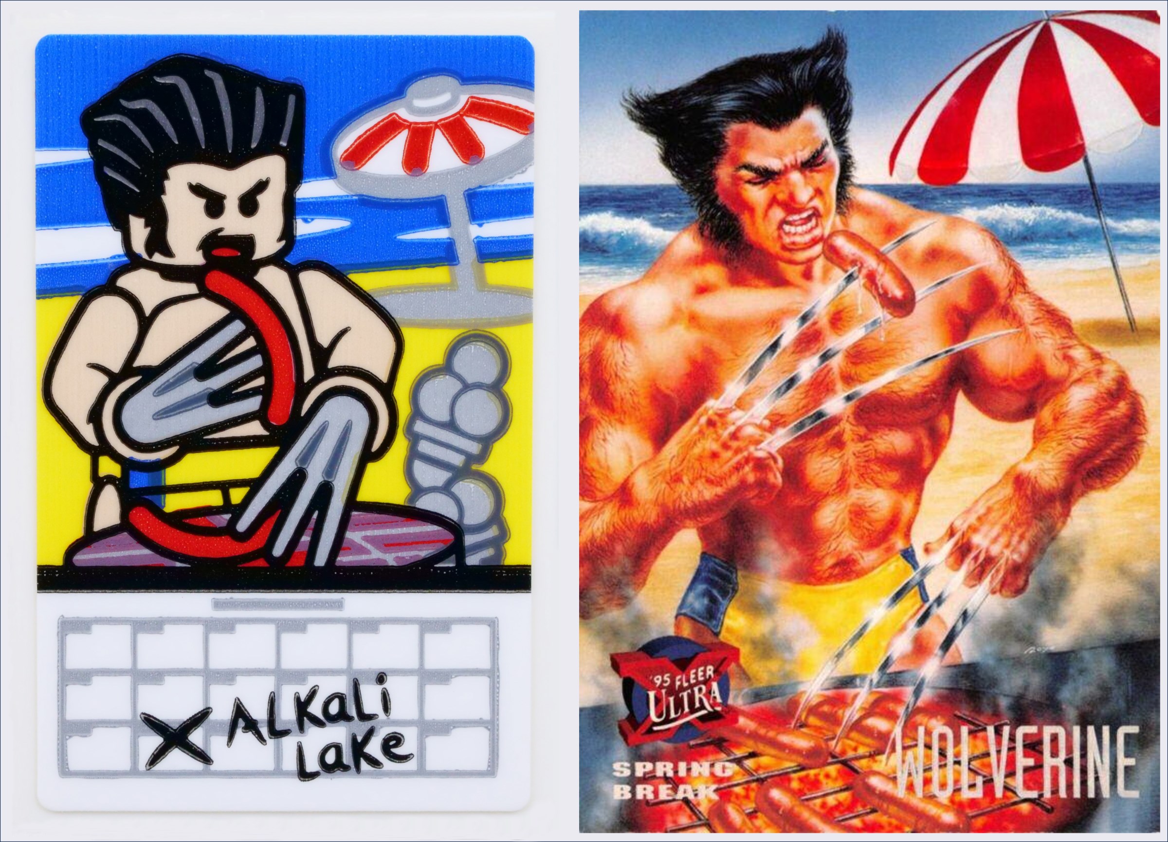 The image of Wolverine on this calendar is inspired by a 1995 Fleer Ultra trading card, known as 'Wolverine Spring Break'.