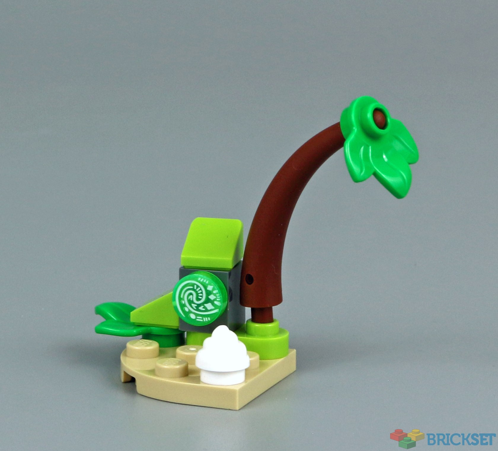 This is a nice scale model of Moana's island. I like how the designer, with just a few parts, has captured the palm trees, greenery, a structure, and even a shell on the beach. The printed tile is a really nice touch.