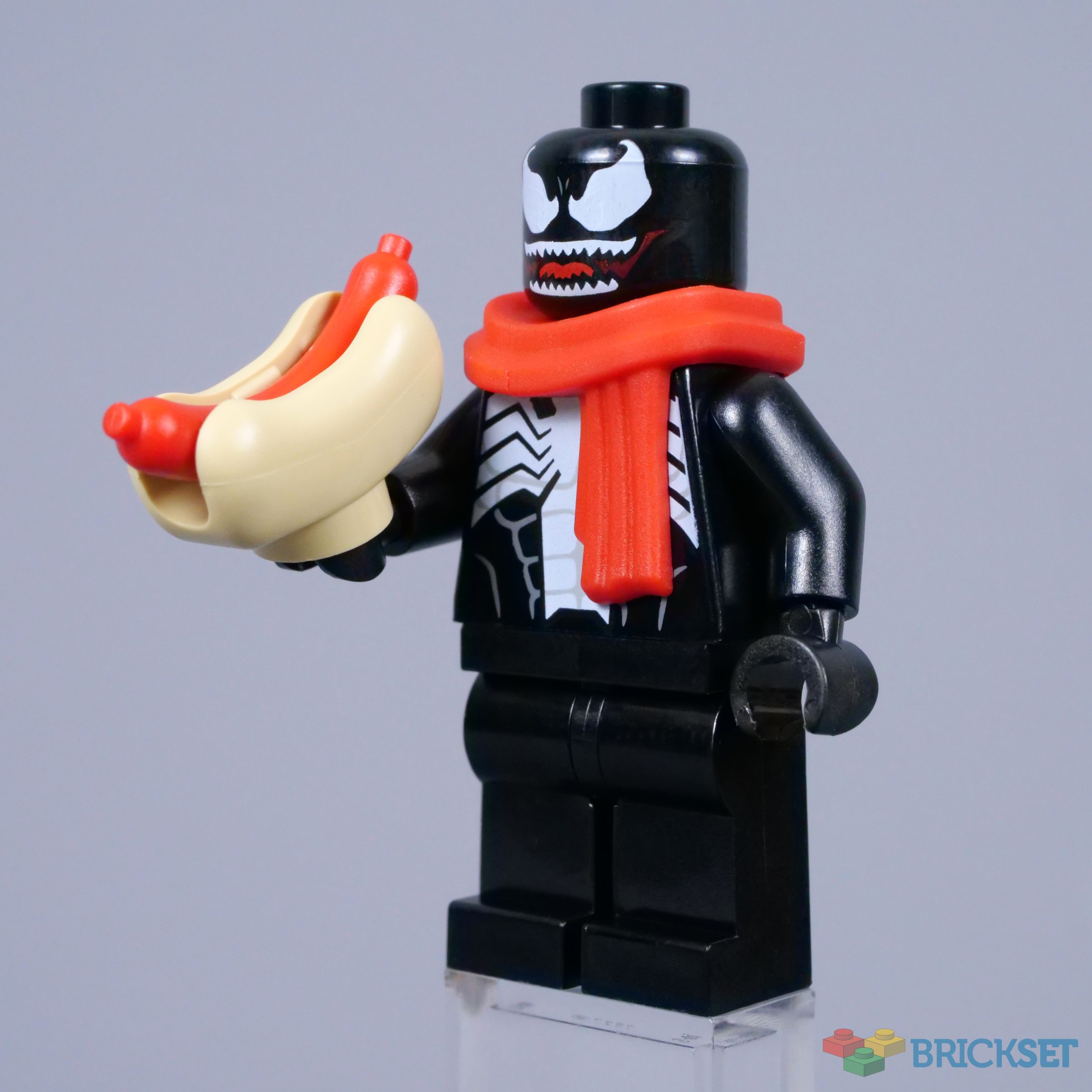 In addition, Venom is known for his voracious appetite in some depictions, so this hot dog is a fitting accessory.