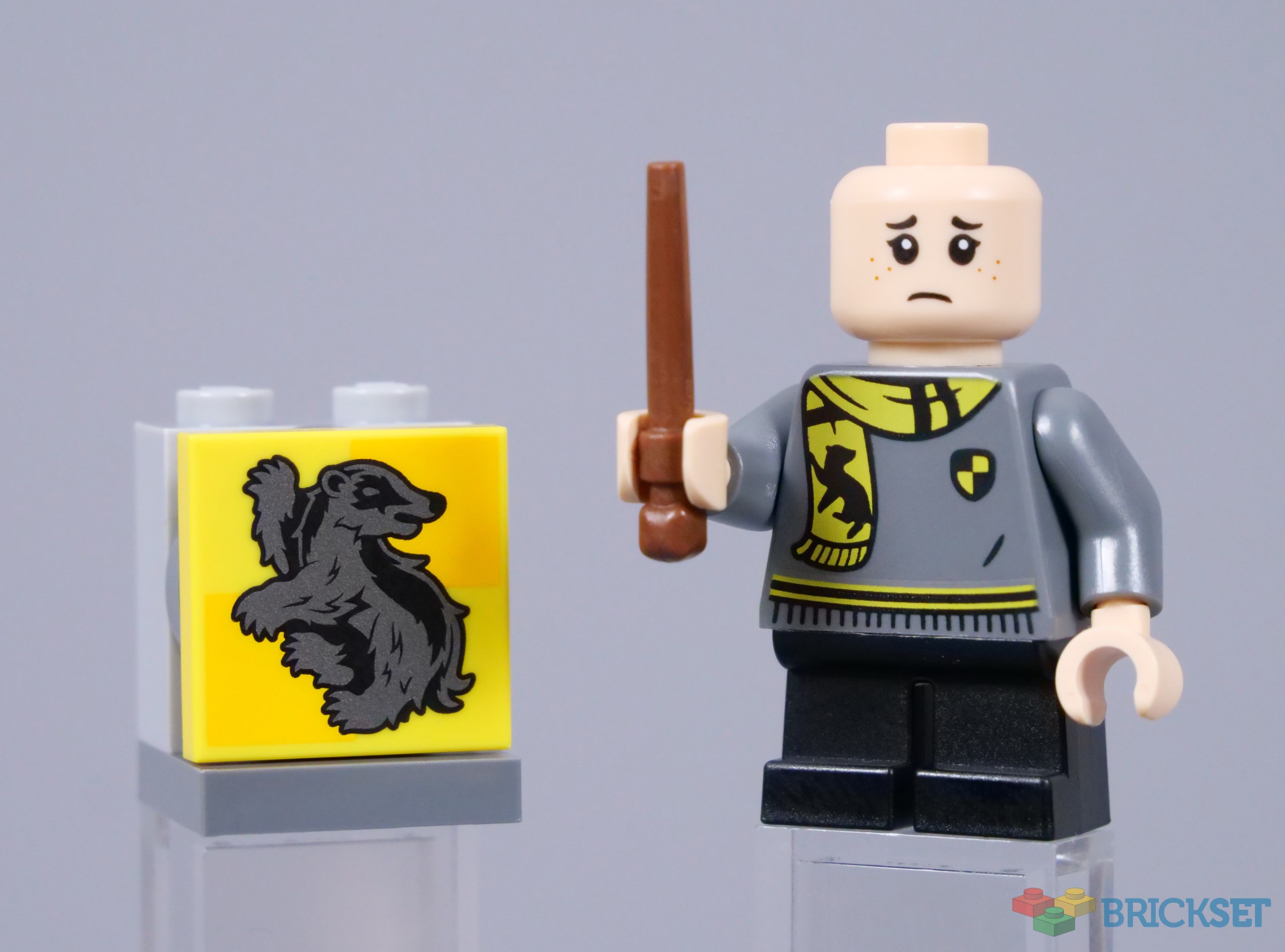 Like her fellow students, the minifigure includes a unique torso with a Hufflepuff scarf. I like the yellow stripes around the hem of the jumper and the badger design on the scarf looks lovely as well,