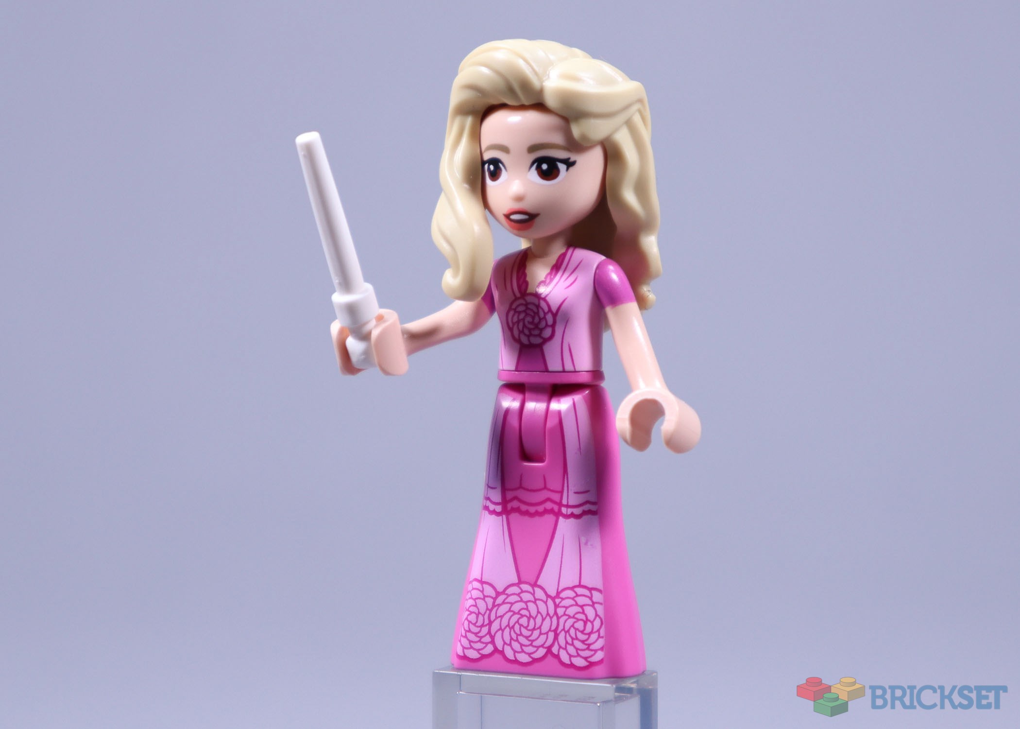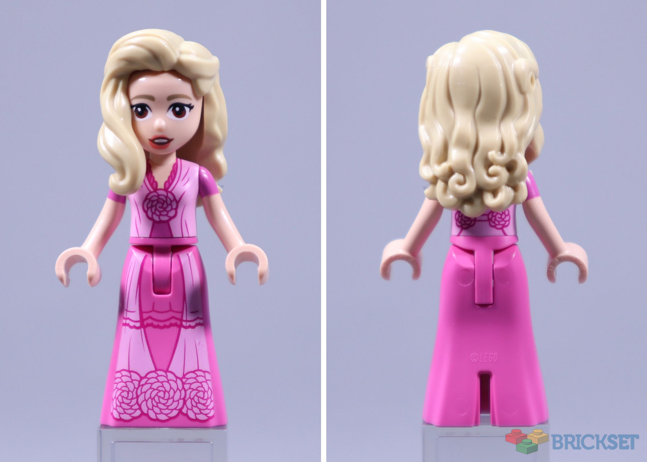 The head and hair are both the same as in 75681 Glinda, Elphaba & Nessarose at Shiz University, but they’re appropriate for this setting, as she doesn’t have her glasses on much in the dorm, nor does she wear them to the ball.