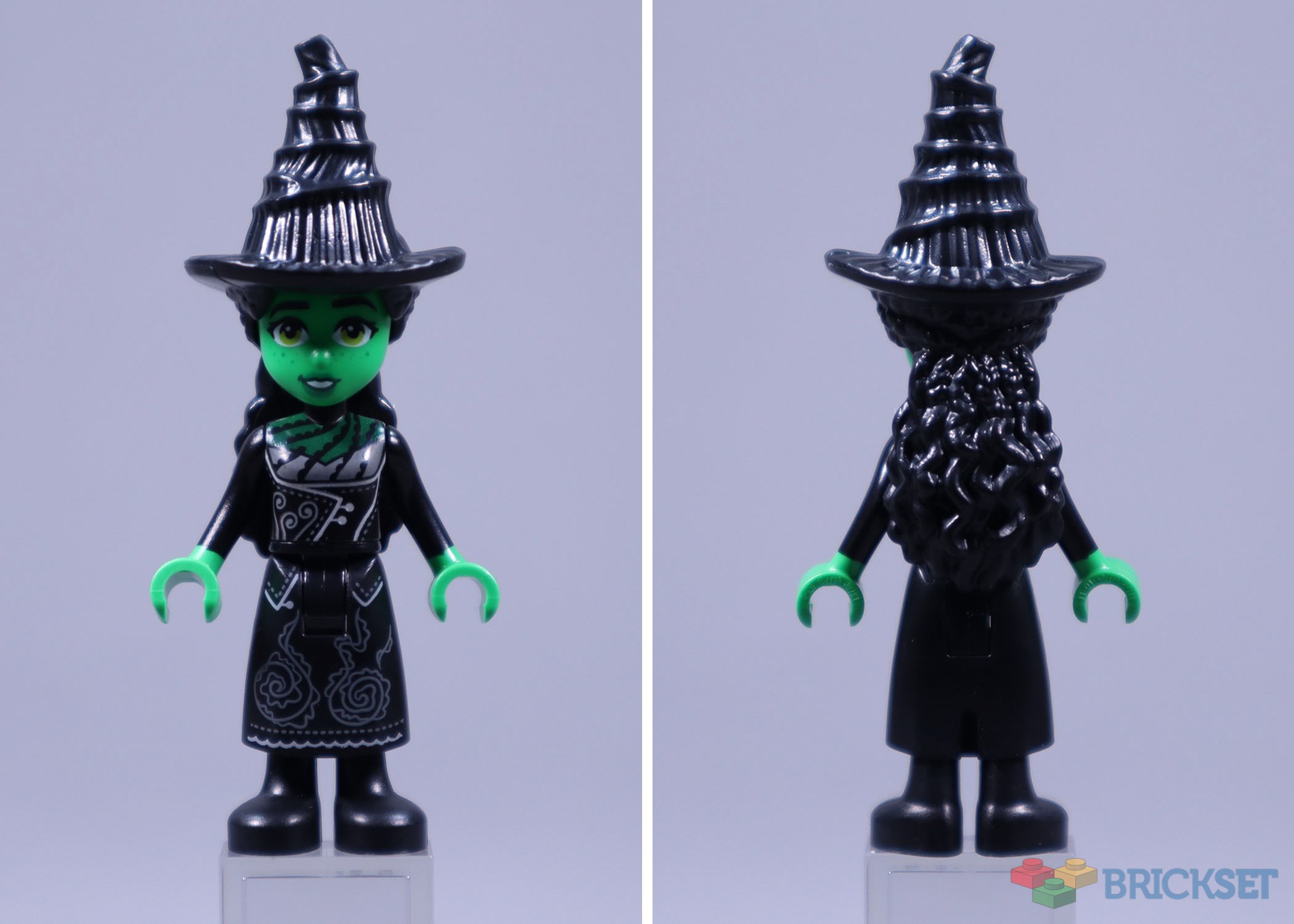 Elphaba’s hat-with-hair piece is shared with the other sets in this wave. The grey linework on her skirt successfully adds detail to what would otherwise be a black-on-black decoration. Overall, I think these are extremely strong figure designs.