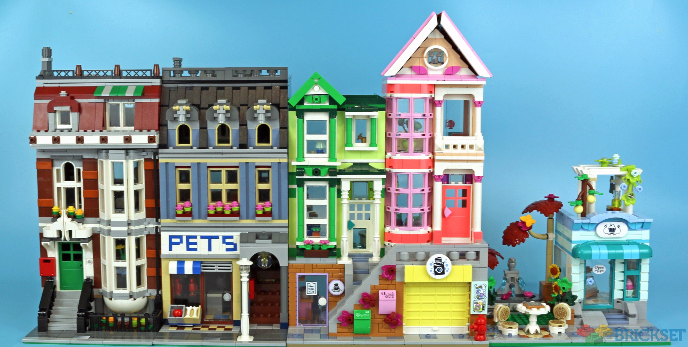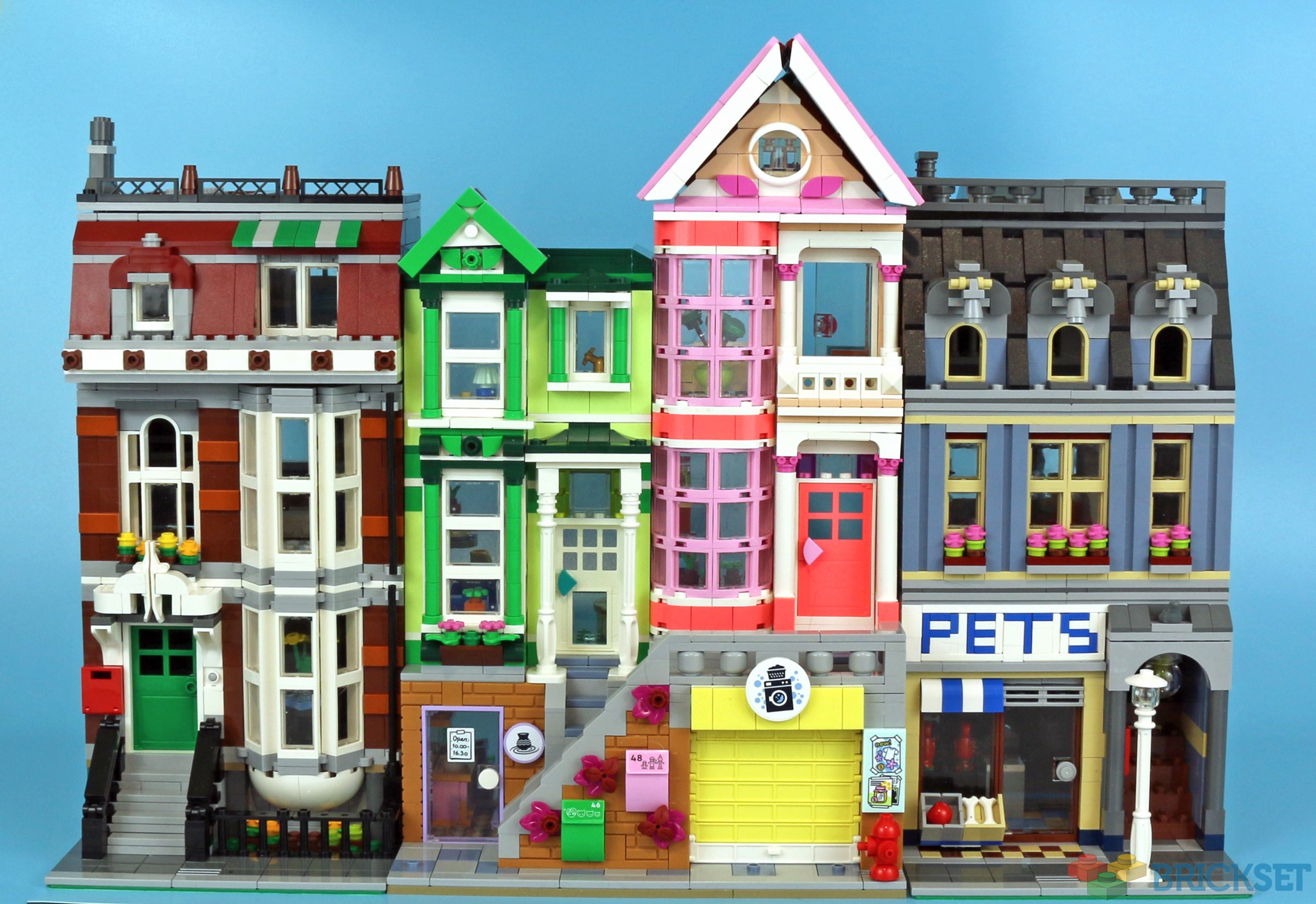 Modulars are not very ‘modulars’. It’s a challenge to find a combination that doesn’t look bad. There is too much differences in style and especially too much different colors. And it’s worst with sets that are two smaller buildings, like the pet shop.
