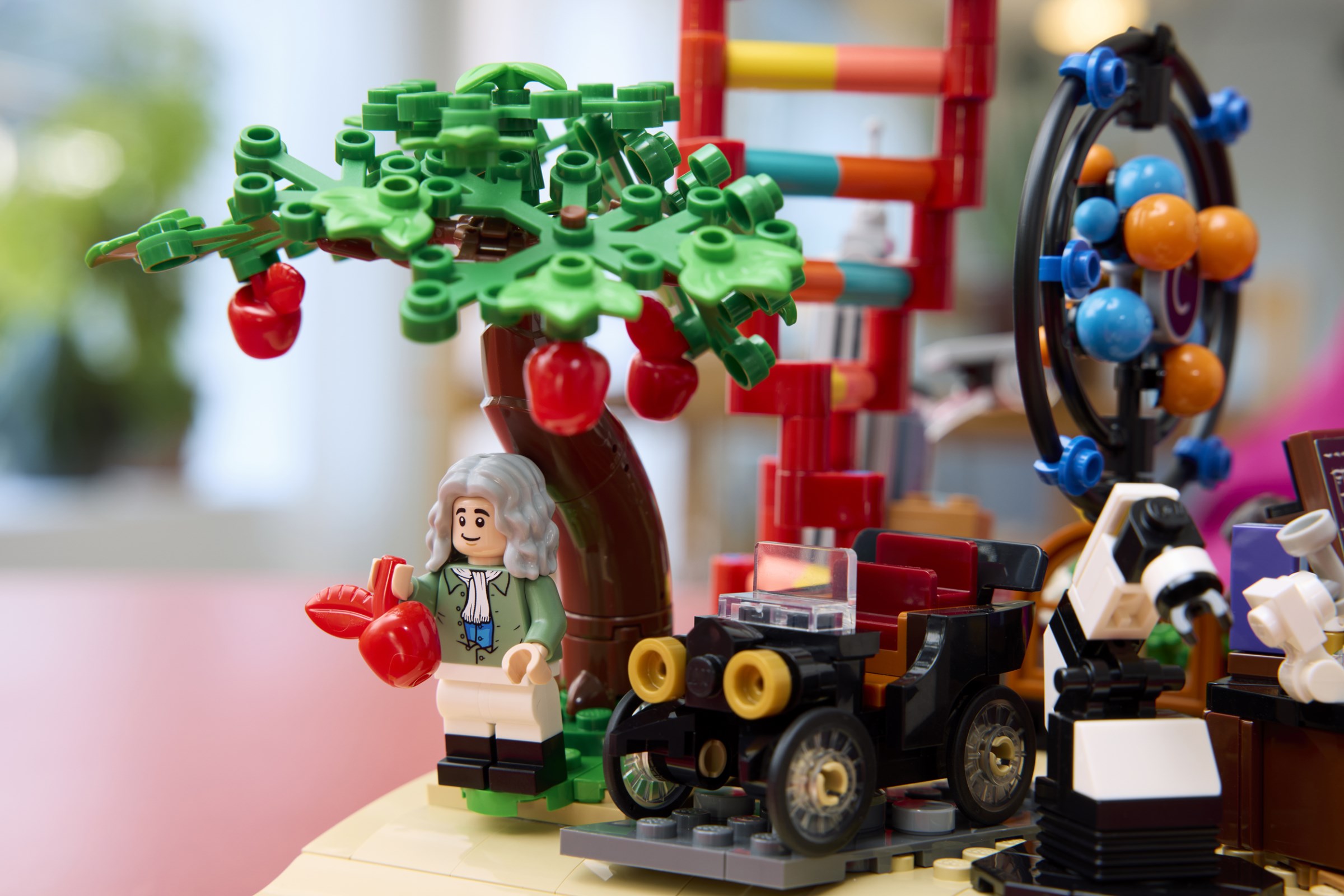 The set includes LEGO minifigures of 3 famous scientists: Marie Curie, the first person ever to win 2 Nobel prizes; Sir Isaac Newton, famous for his law of universal gravitation; and pioneering agricultural scientist George Washington Carver.