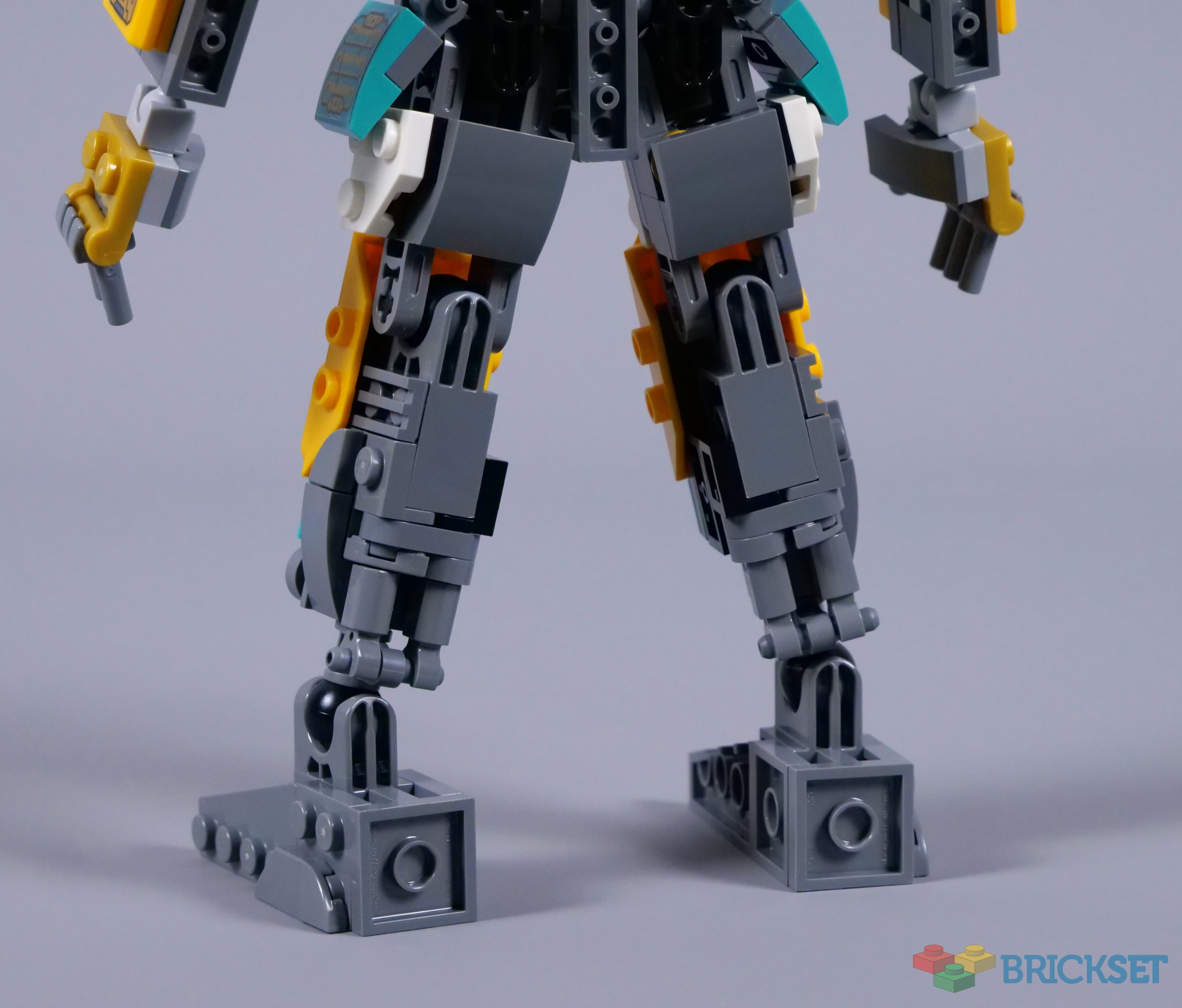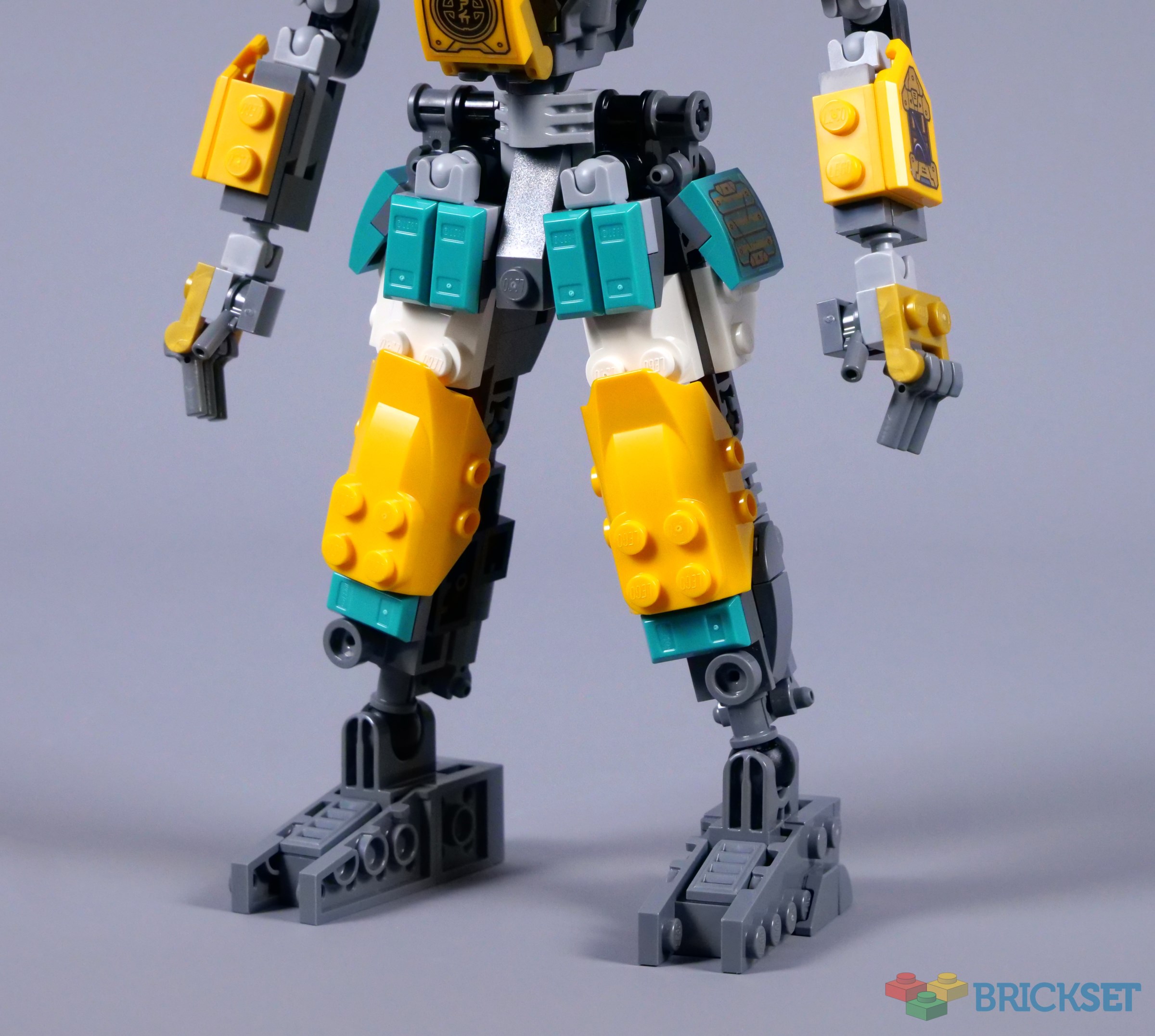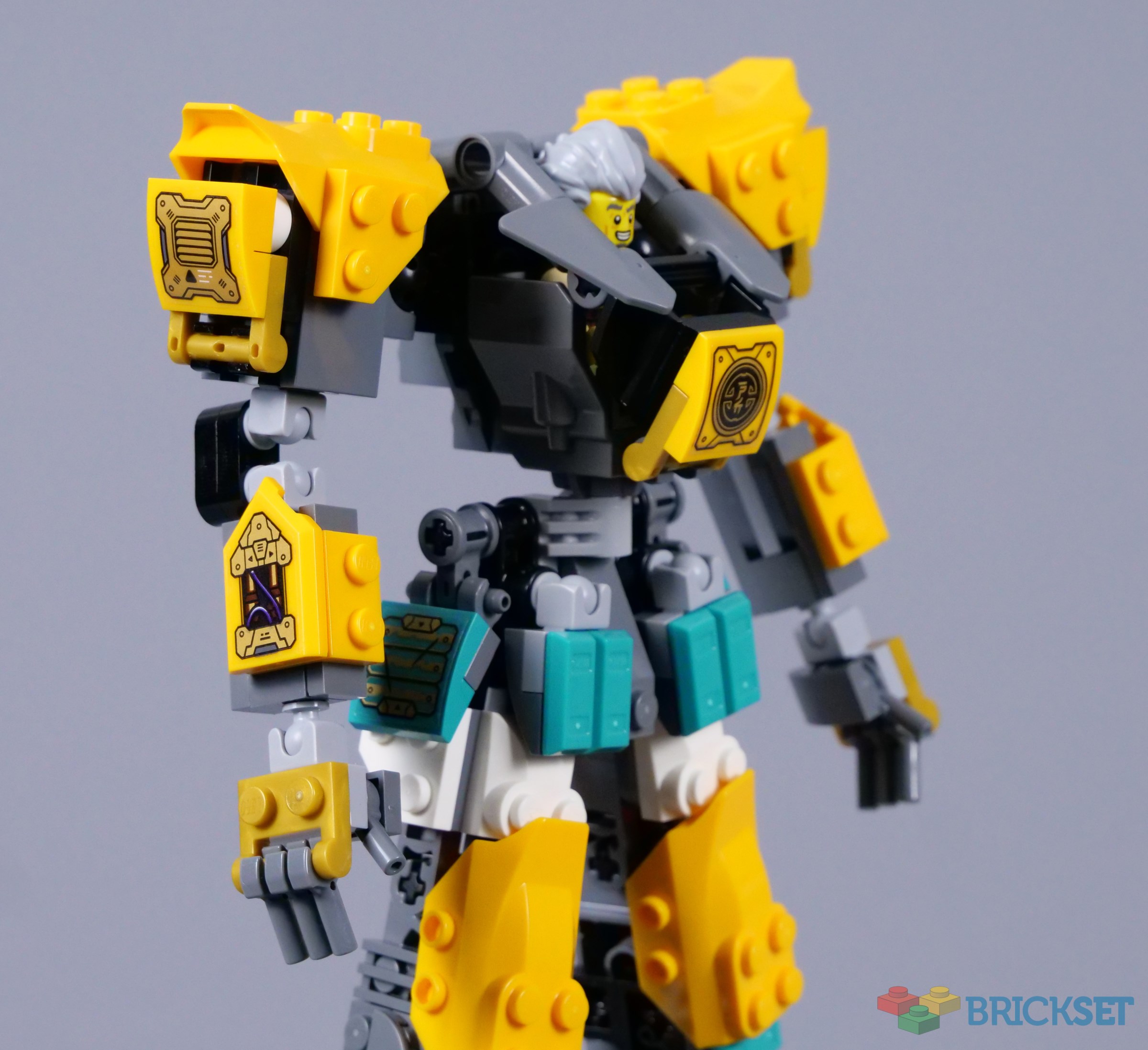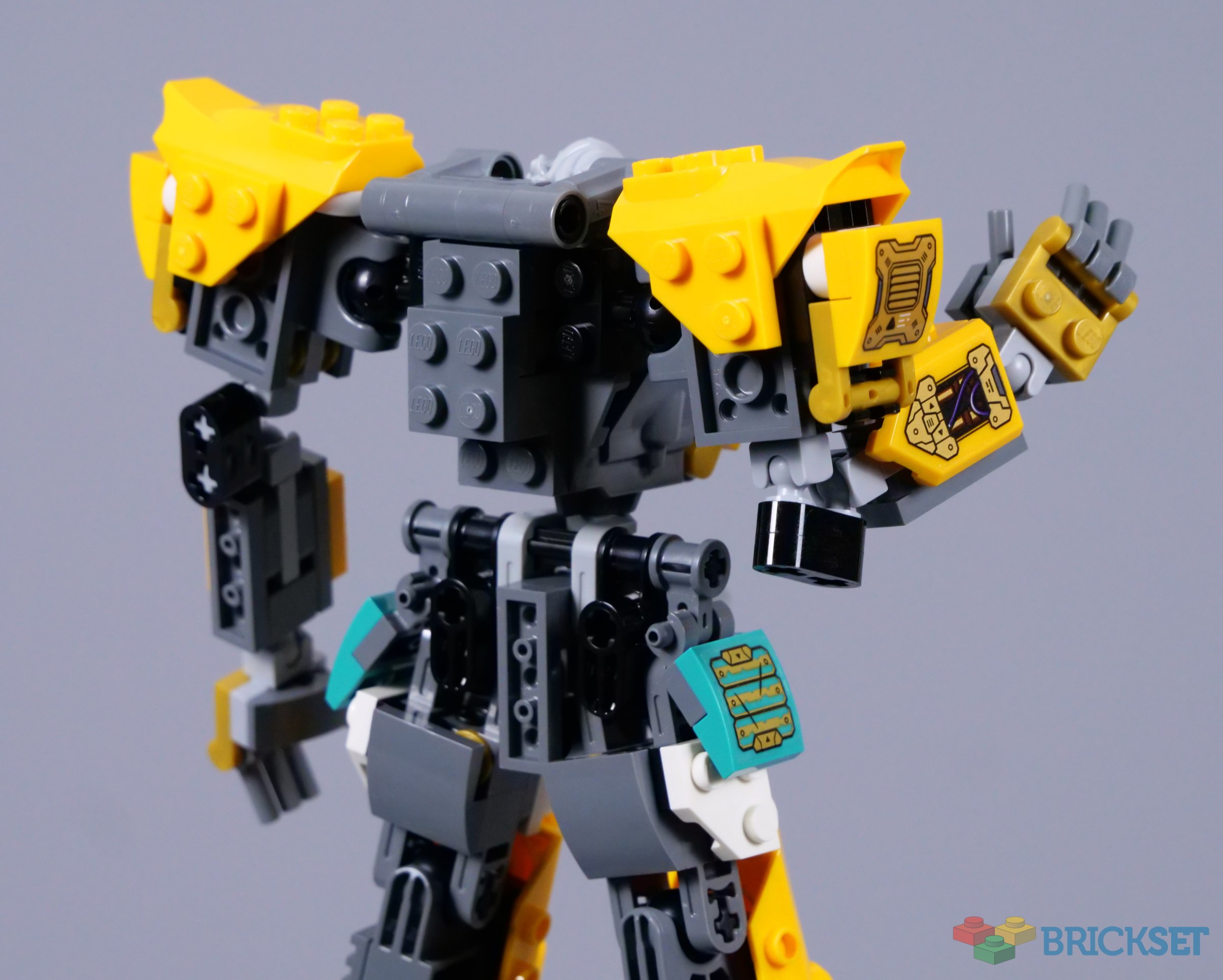 I love the mech's bulky shoulders and how the minifigure nestles inside the chest, so the mech lacks an obvious head. Its proportions remind me of Cole's vehicle from 71699 Thunder Raider, at least around the torso and arms because the lower body is slimmer.