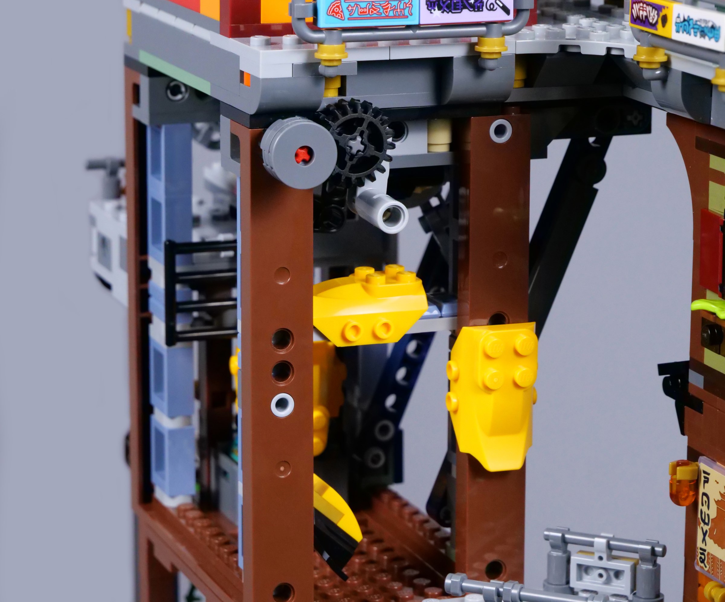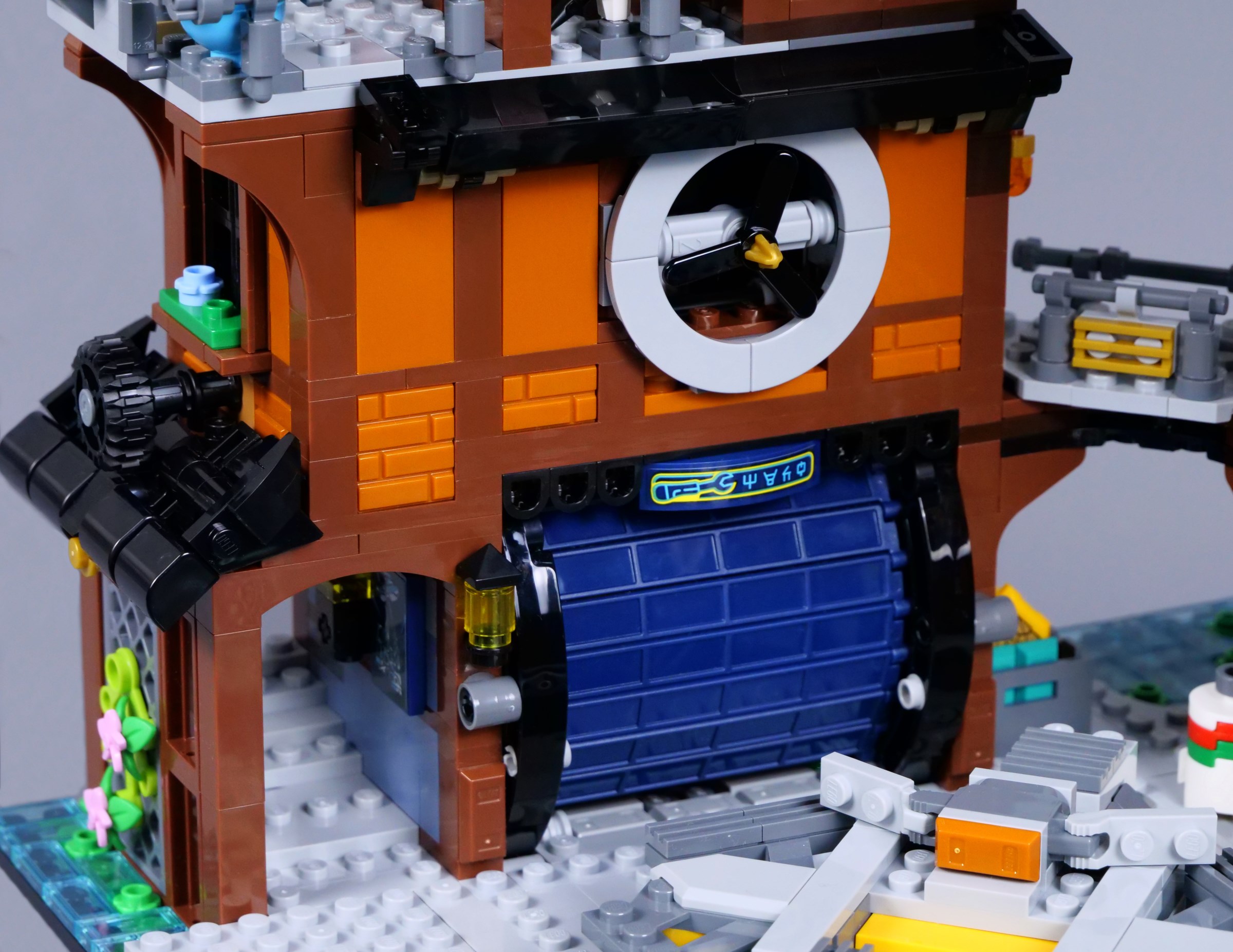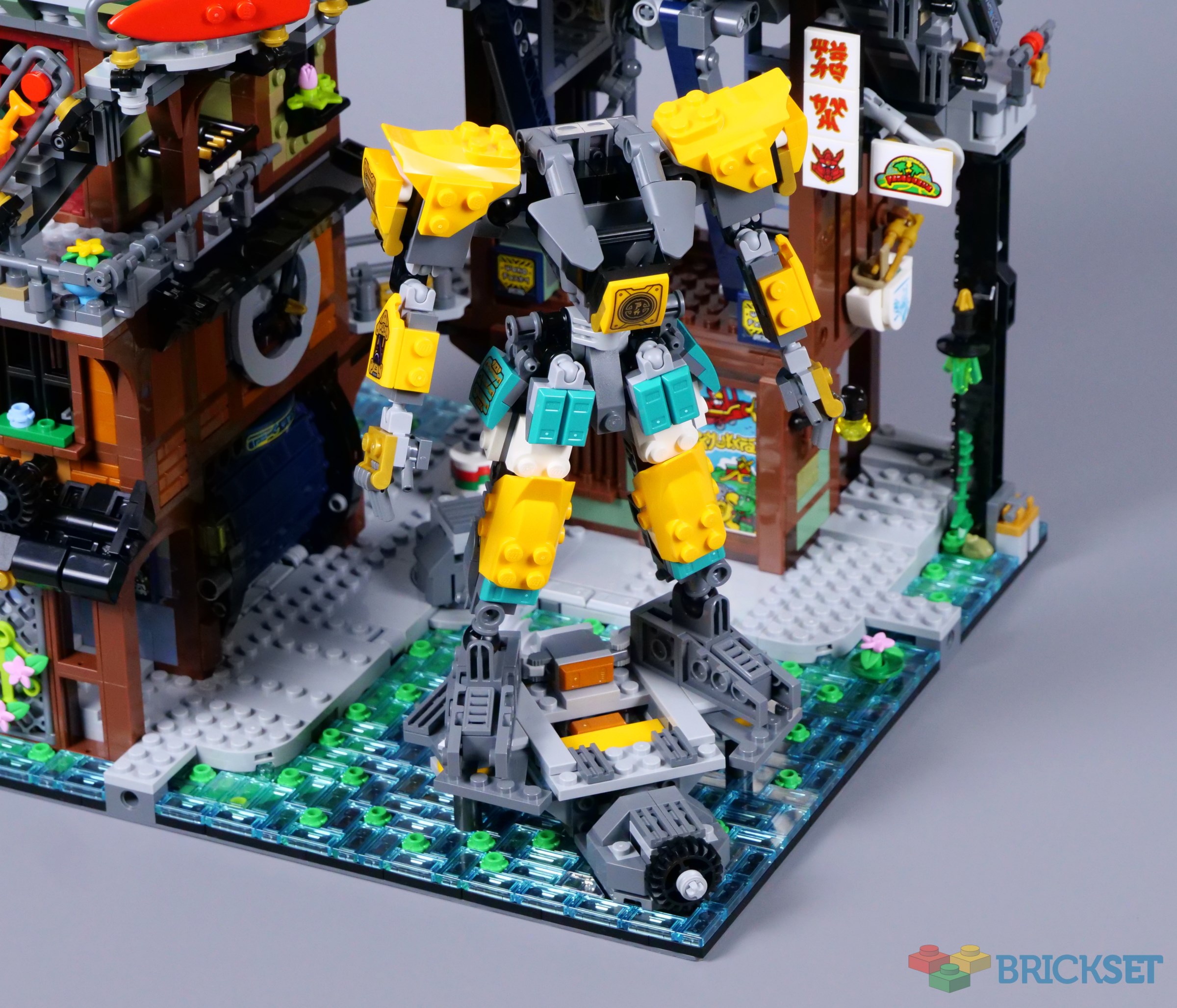 I mean, these have always been playsets. The very first Ninjago City set had integrated play functions like an elevator, a working ATM, a conveyor-belt sushi restaurant, and a grill that transformed a crab from raw to cooked. I don't really feel like functions such as the Markets' elevators, cable car and flushable toilet or this set's retractable mech platform, cranes, and opening garage doors are in any way a departure from that.