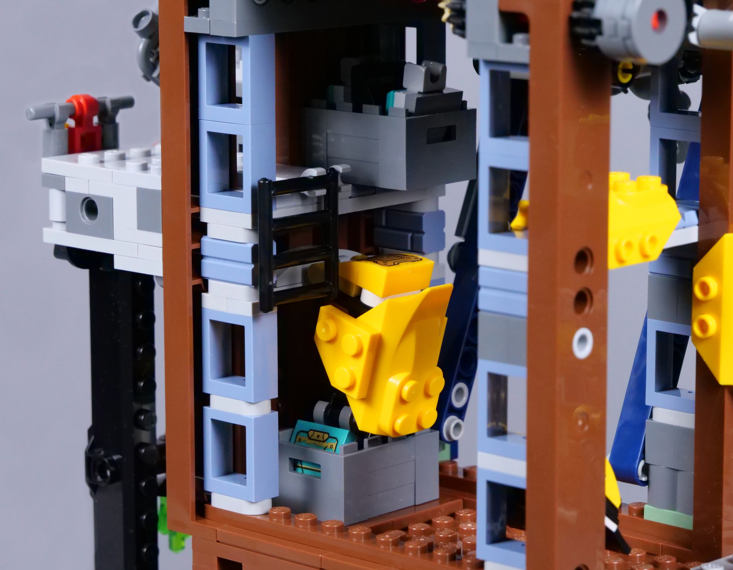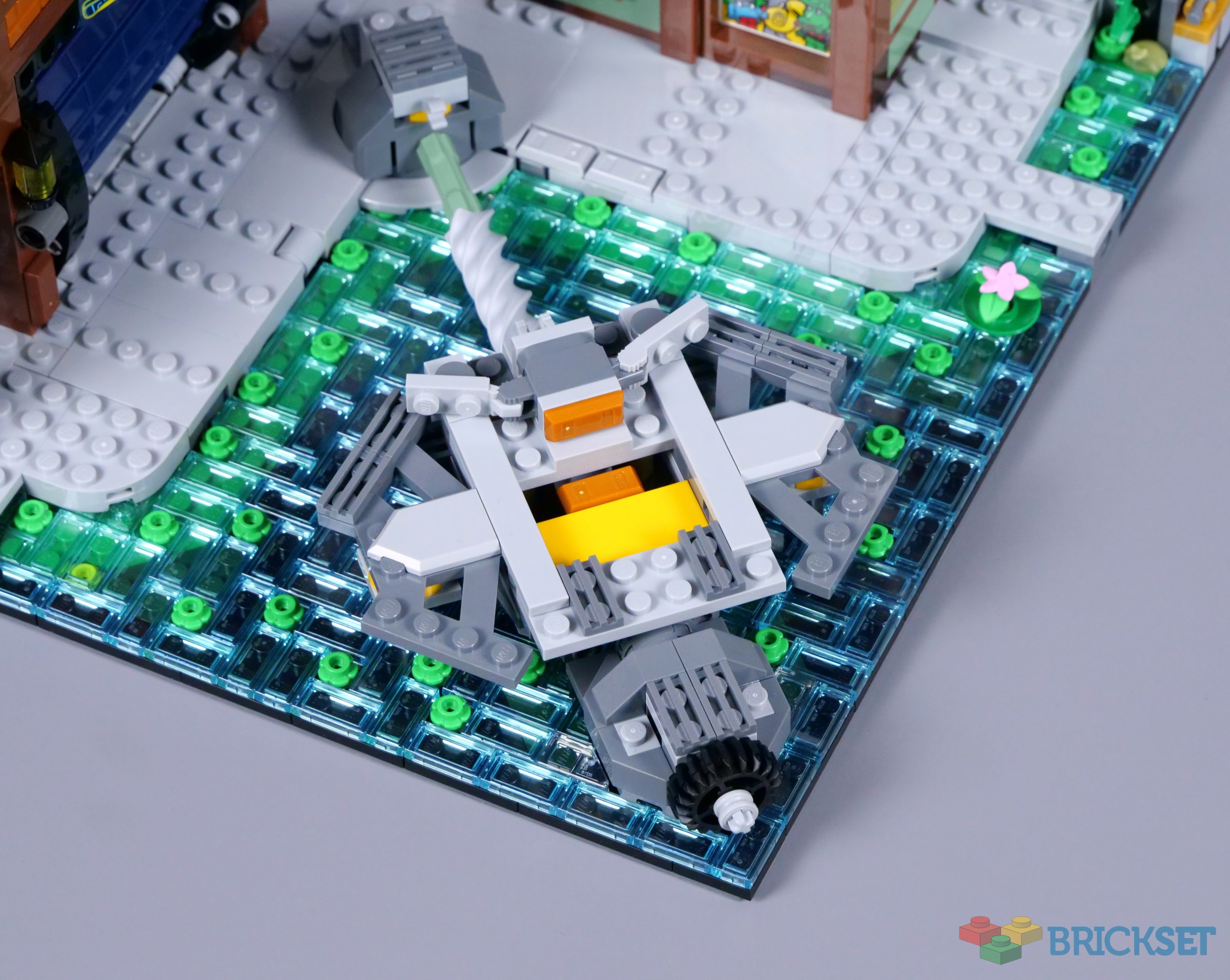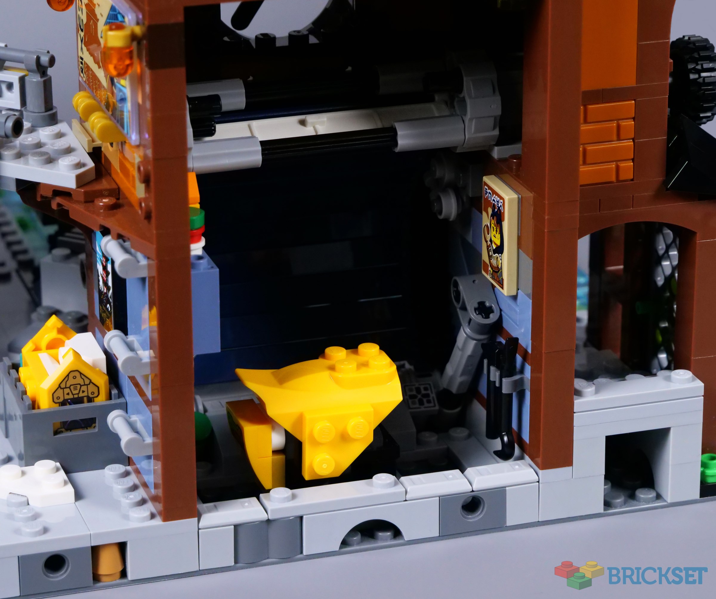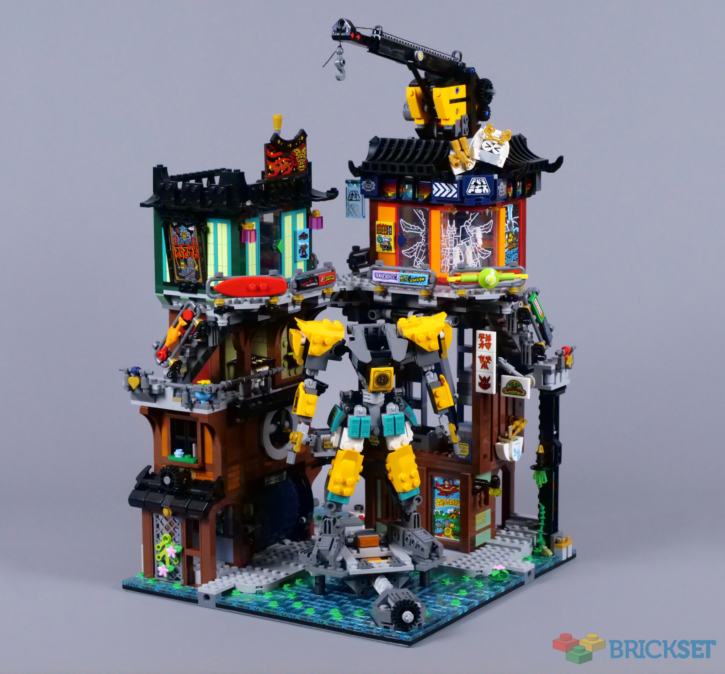 I mean, these have always been playsets. The very first Ninjago City set had integrated play functions like an elevator, a working ATM, a conveyor-belt sushi restaurant, and a grill that transformed a crab from raw to cooked. I don't really feel like functions such as the Markets' elevators, cable car and flushable toilet or this set's retractable mech platform, cranes, and opening garage doors are in any way a departure from that.