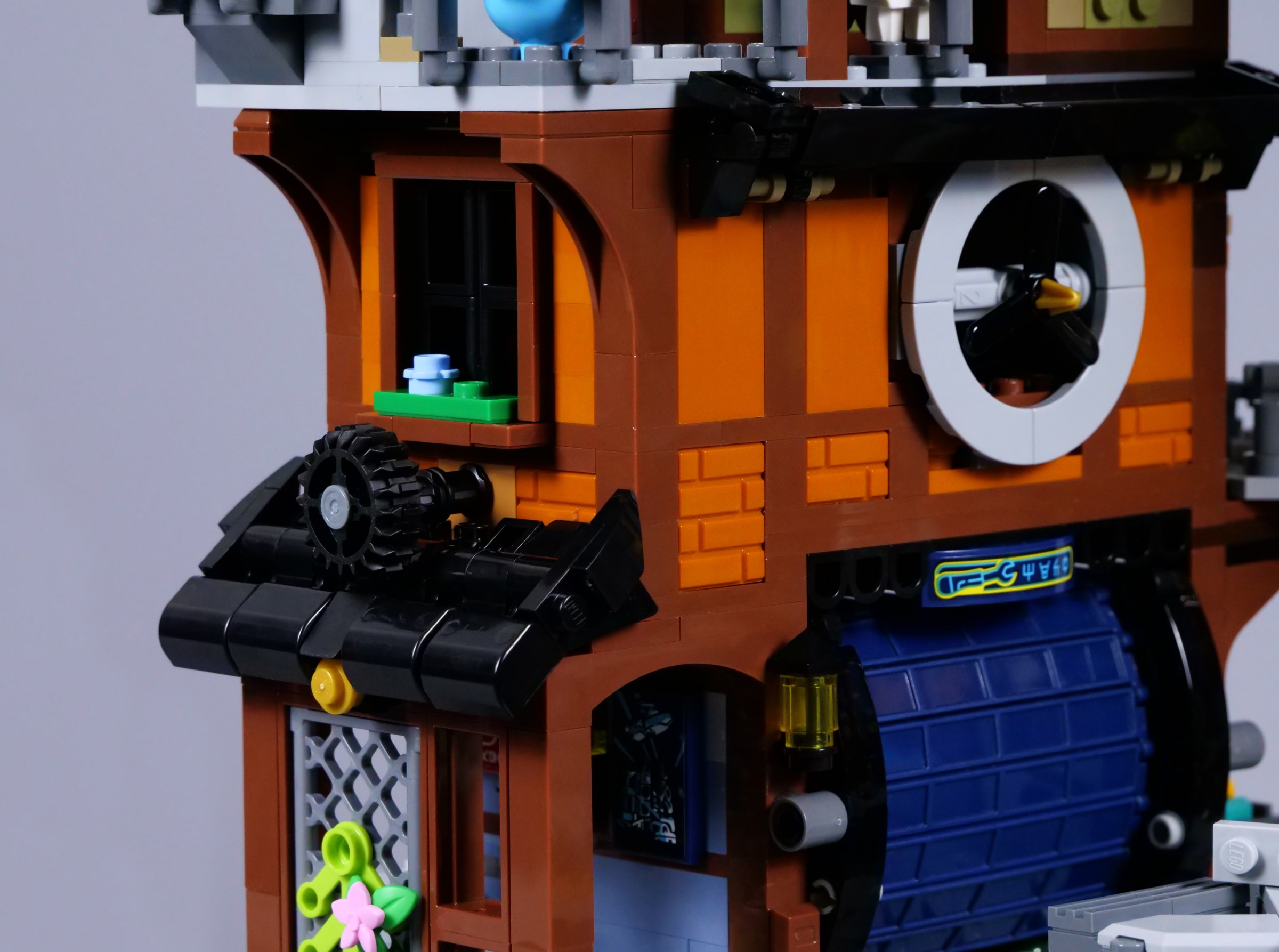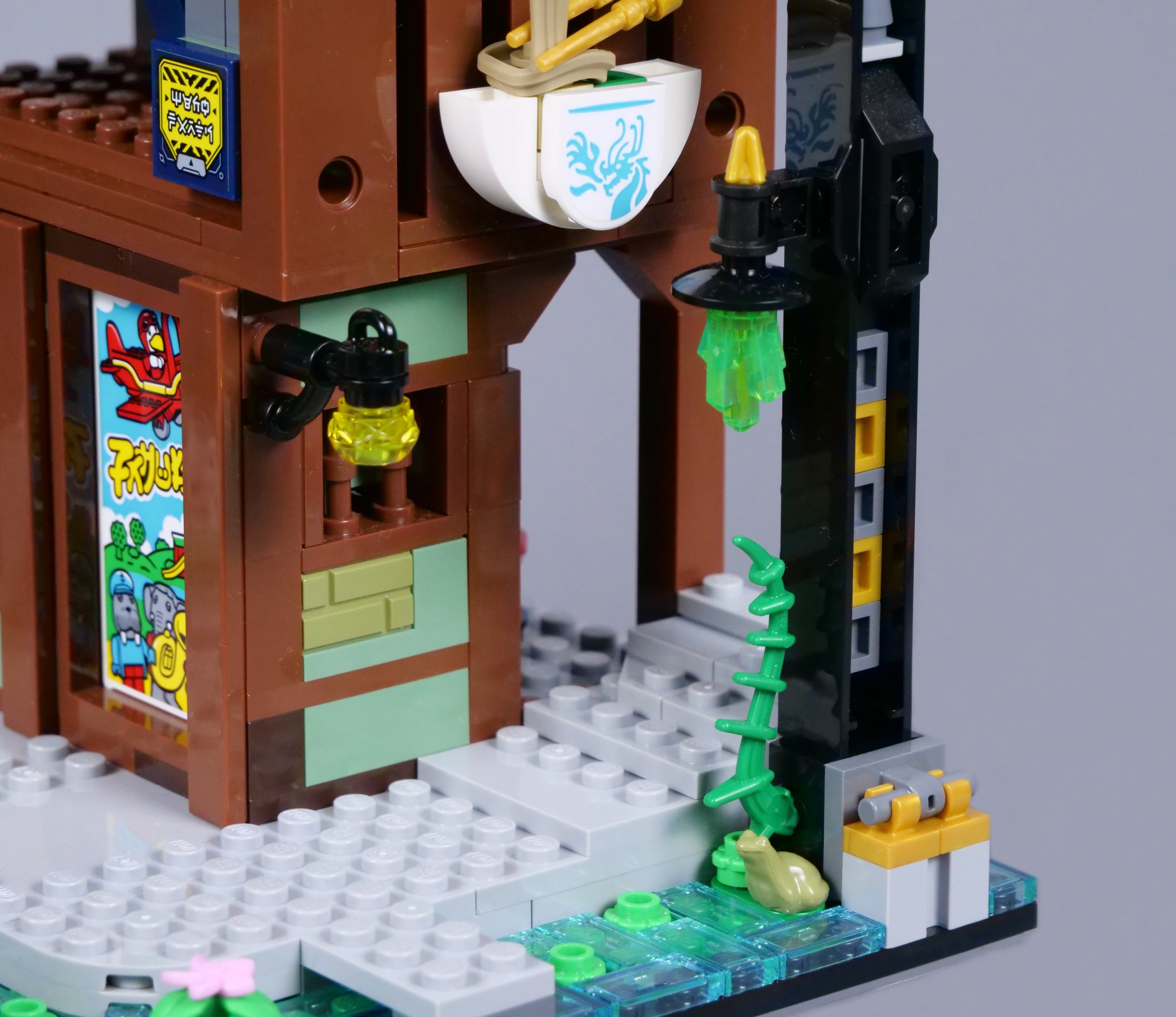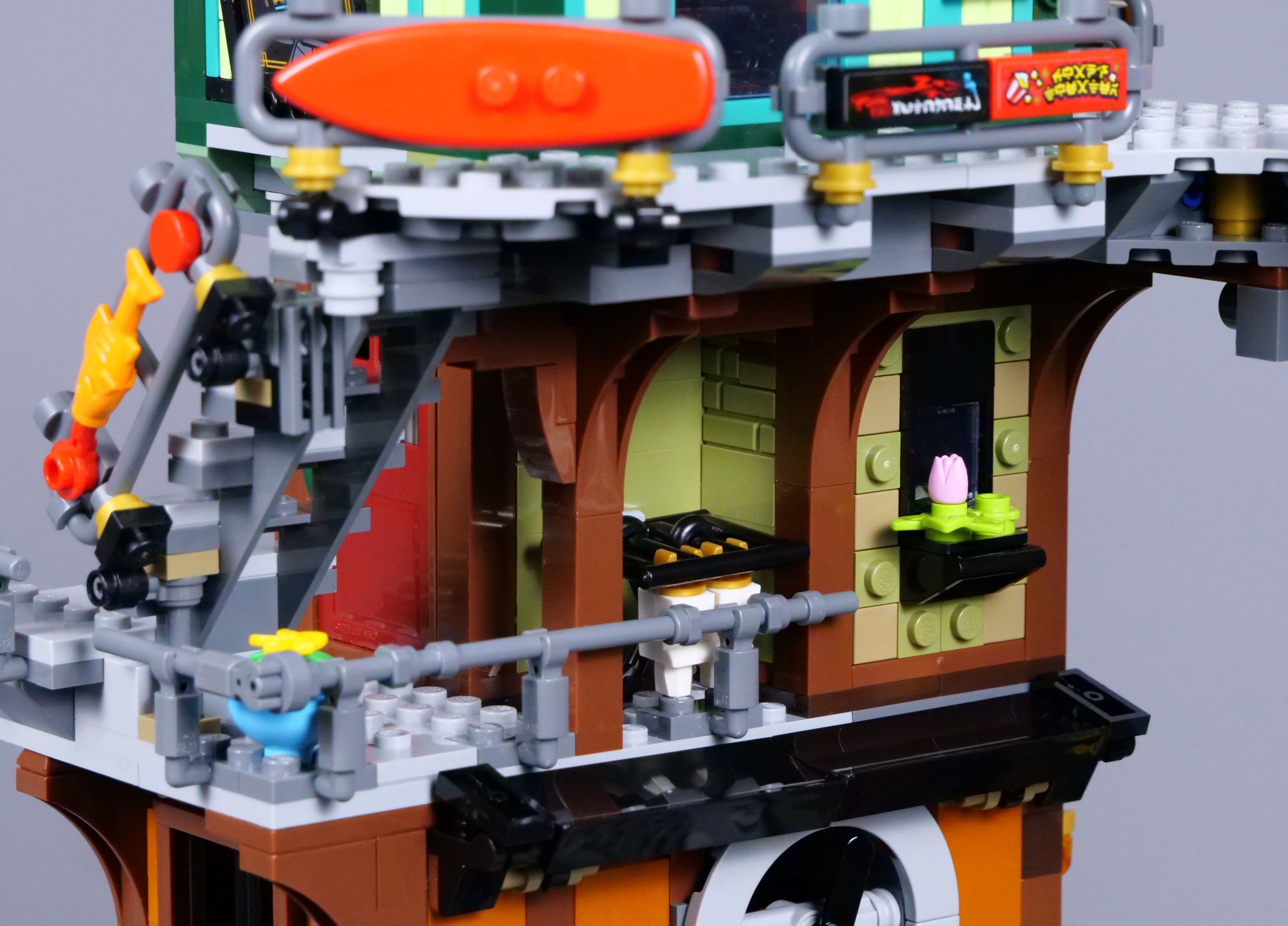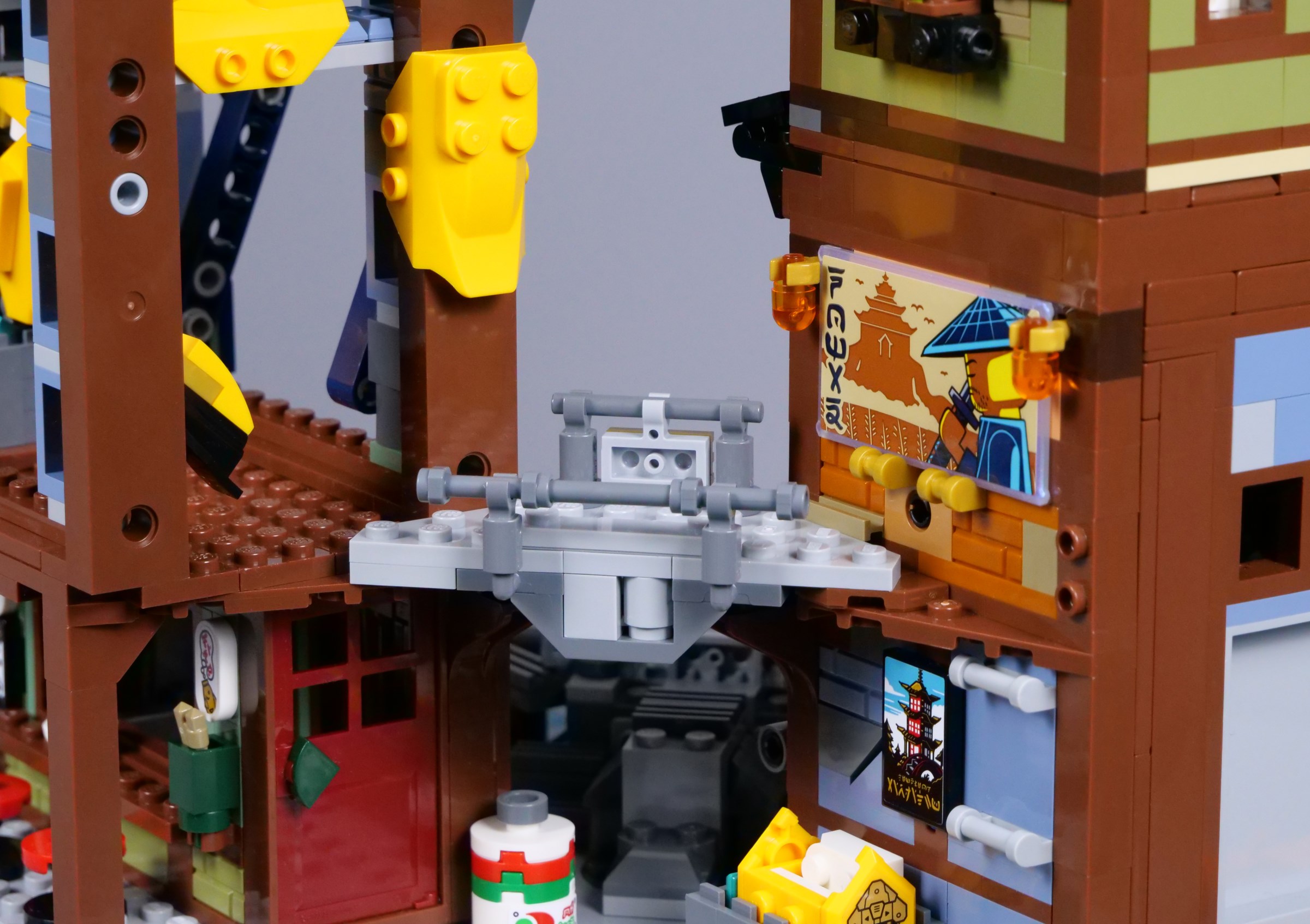 Nice review and photos! While this set is certainly smaller than Ninjago City's past corner buildings (closer in scale and piece count to the Docks), I think the designers did a very good job providing the sort of highly detailed and varied architectural styles, irregular ways of getting around the city, compact homes and shops, elaborate signage, and creative Technic functions that the series is known for! Plus, as expected, there are a plethora of Easter eggs for Ninjago fans and general LEGO fans alike.