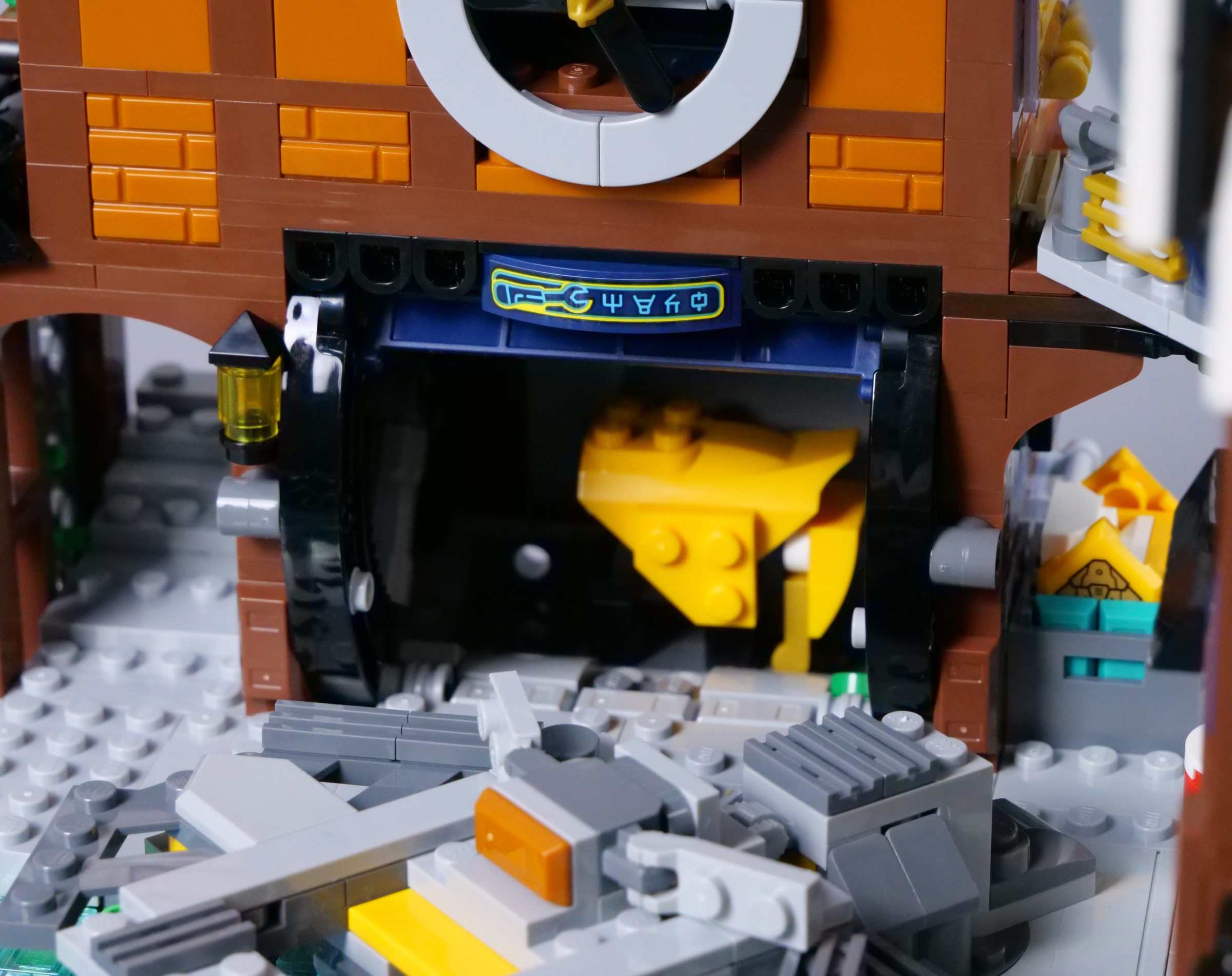 With the mech removed, the lower levels seem quite subdued. I appreciate the clear distinction between older and more modern buildings, similar to earlier NINJAGO City sets, but I think the designer has used too much reddish brown. Moreover, the model lacks the density of previous corner modules, although that suits the industrial setting and offers some variety when sets are combined.