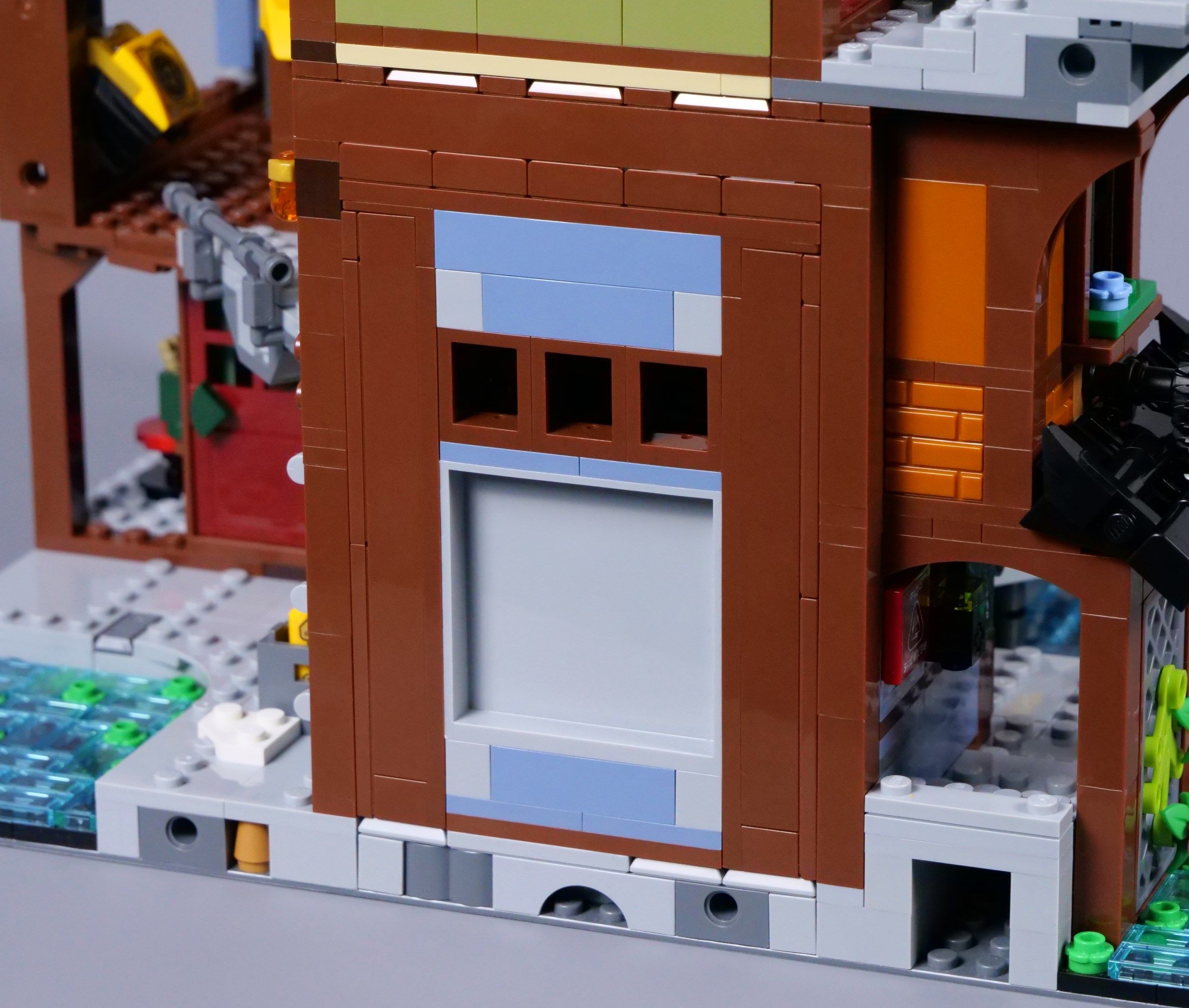 The back of the workshop attracted some criticism when the set was revealed and this wall is rather bland, admittedly. More detail would always be welcome, but keeping this panel simple makes sense because it needs to be easily removable and will be hidden once linked to other NINJAGO City sets.