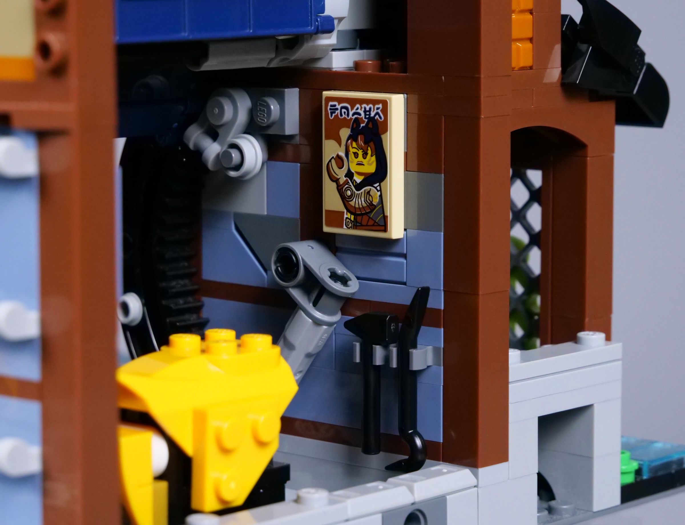This set somehow feels lesser than the sum of its parts. I love all the details, but put together it feels lacking compared to the previous Ninjago City sets. Perhaps if the Mech was more customisable, with different armour or attachments that were hidden around, it would feel more like a workshop?