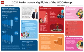 The LEGO Group today issued its annual results for 2024. The company achieved record revenue and operating profit, outpacing the toy market with significant market share gains. The double-digit revenue growth was driven by strong demand for its large and diverse portfolio, excellent execution in markets and a resilient supply chain. To support growth now and in the future, the company accelerated spending on strategic initiatives.