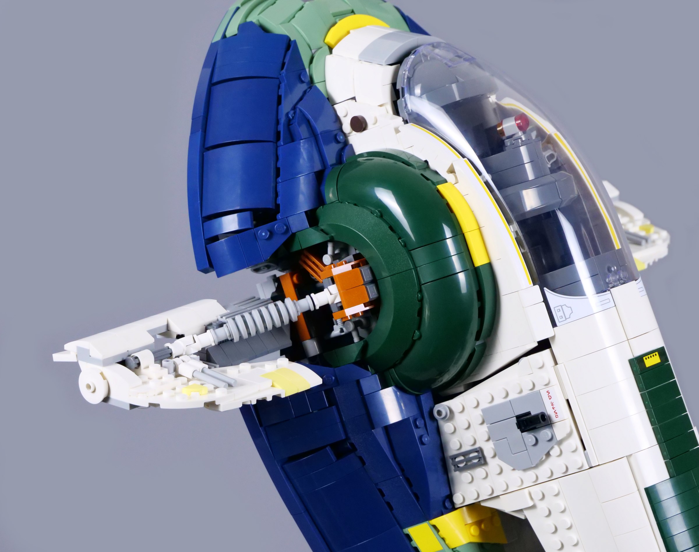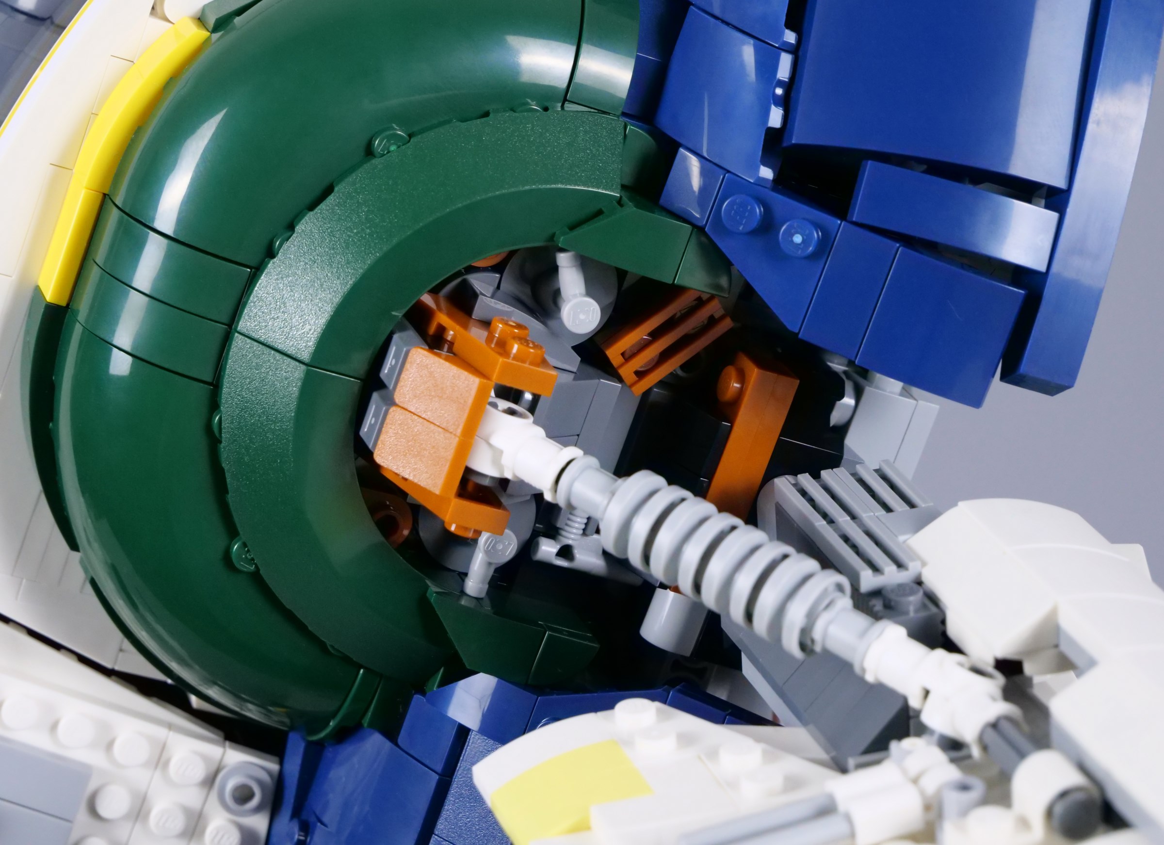 I think mechanical detail has improved on recent Ultimate Collector Series sets, as designers have paid closer attention to capturing texture actually seen onscreen instead of adding more generic greebles. This is a good example, as the taps and nozzles placed inside match details found on studio scale models of the Slave I.