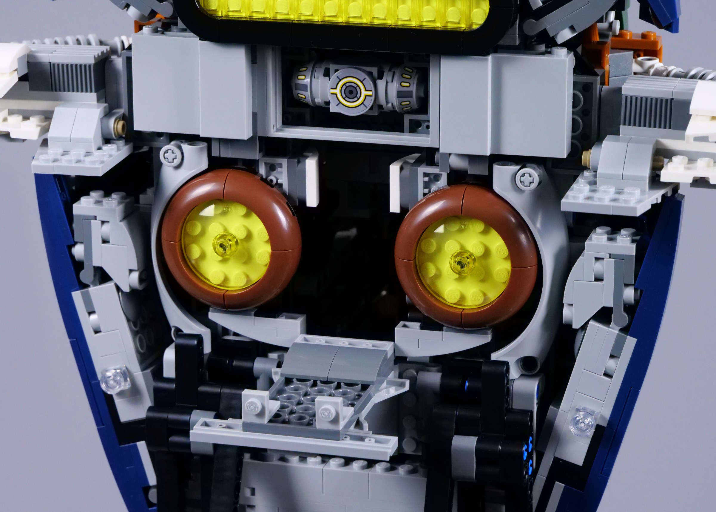 The dark green shrouds protecting the wing mechanisms are beautifully sculpted, putting 5x5 curved corner slopes to perfect use. The decorative yellow stripes look accurate to the source material and the contrasting dark orange elements inside are effective as well, offering another splash of colour.