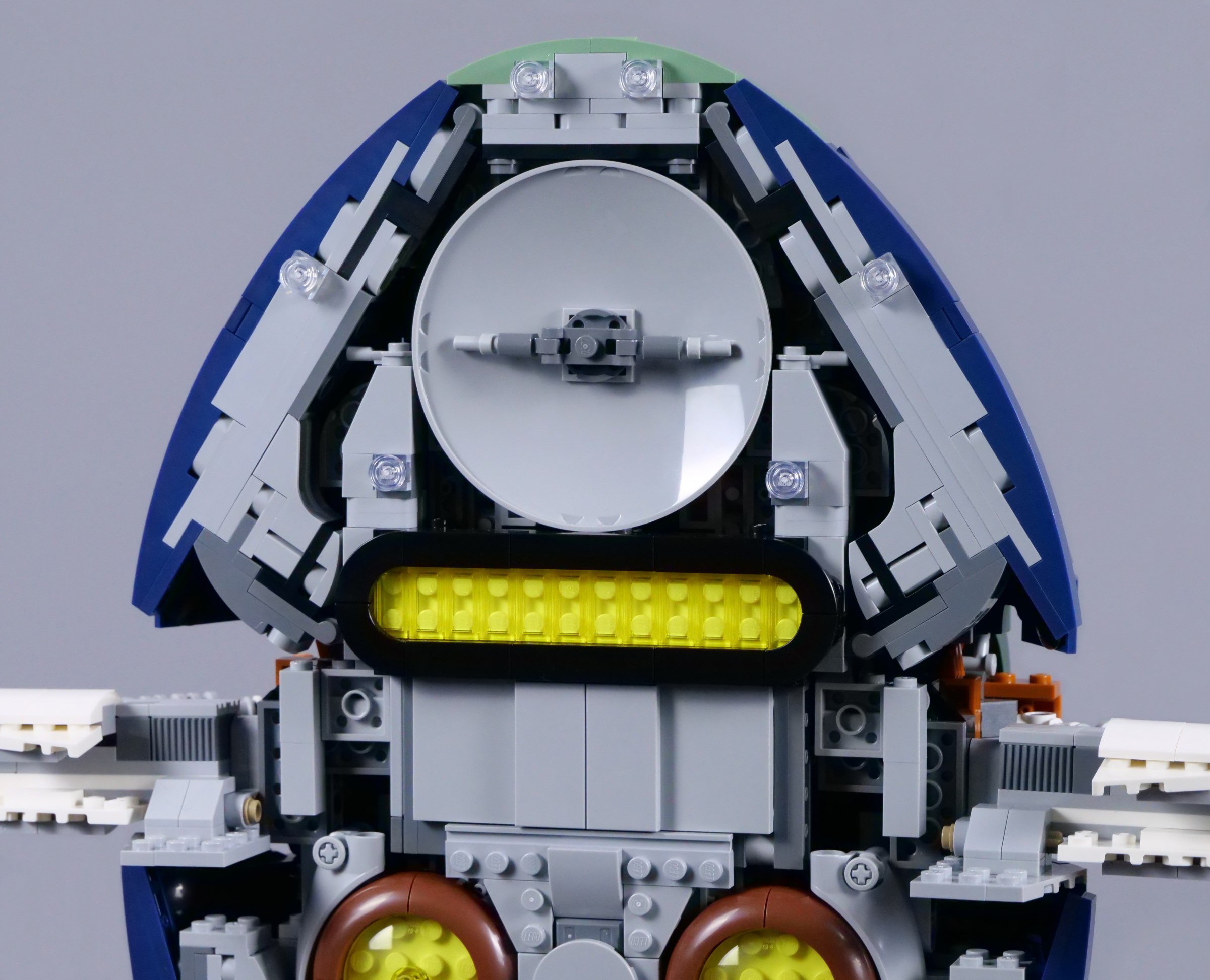 The 4x4 curved slopes introduced in 75429 AT-AT Driver Helmet are used to brilliant effect on the sides, which makes sense because the piece was actually developed for this set. The egg-like shape is evidently difficult to recreate using LEGO elements and there are a few noticeable gaps where sections join, though most blend into the hull.