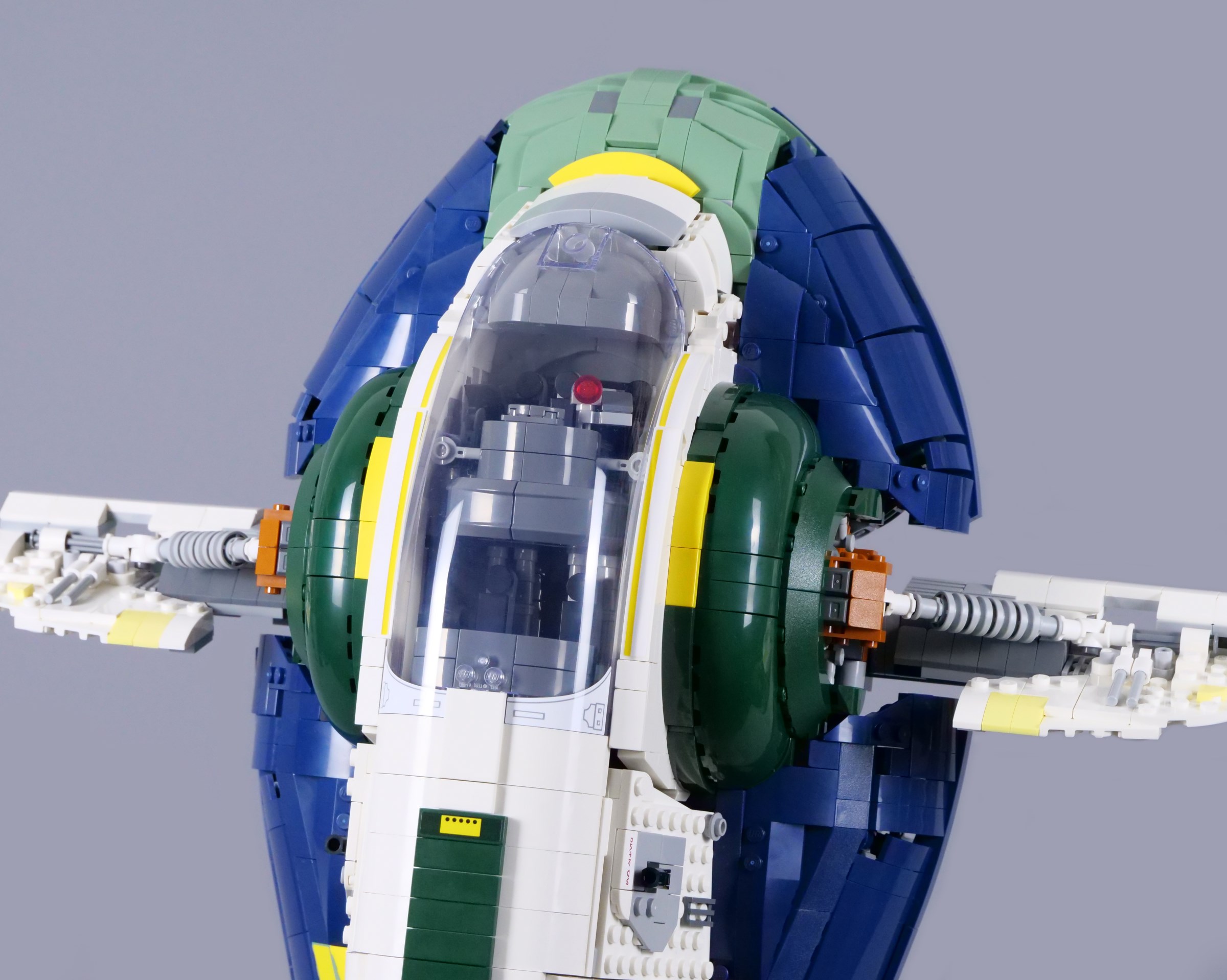 Jango Fett's Slave I has always been my preferred version of the vessel and looks fantastic in LEGO form, especially when presented in flight mode. This colour combination makes a lovely change from the normal black and grey that tend to dominate the Ultimate Collector Series and the vehicle's rounded hull shapes are distinctive as well.