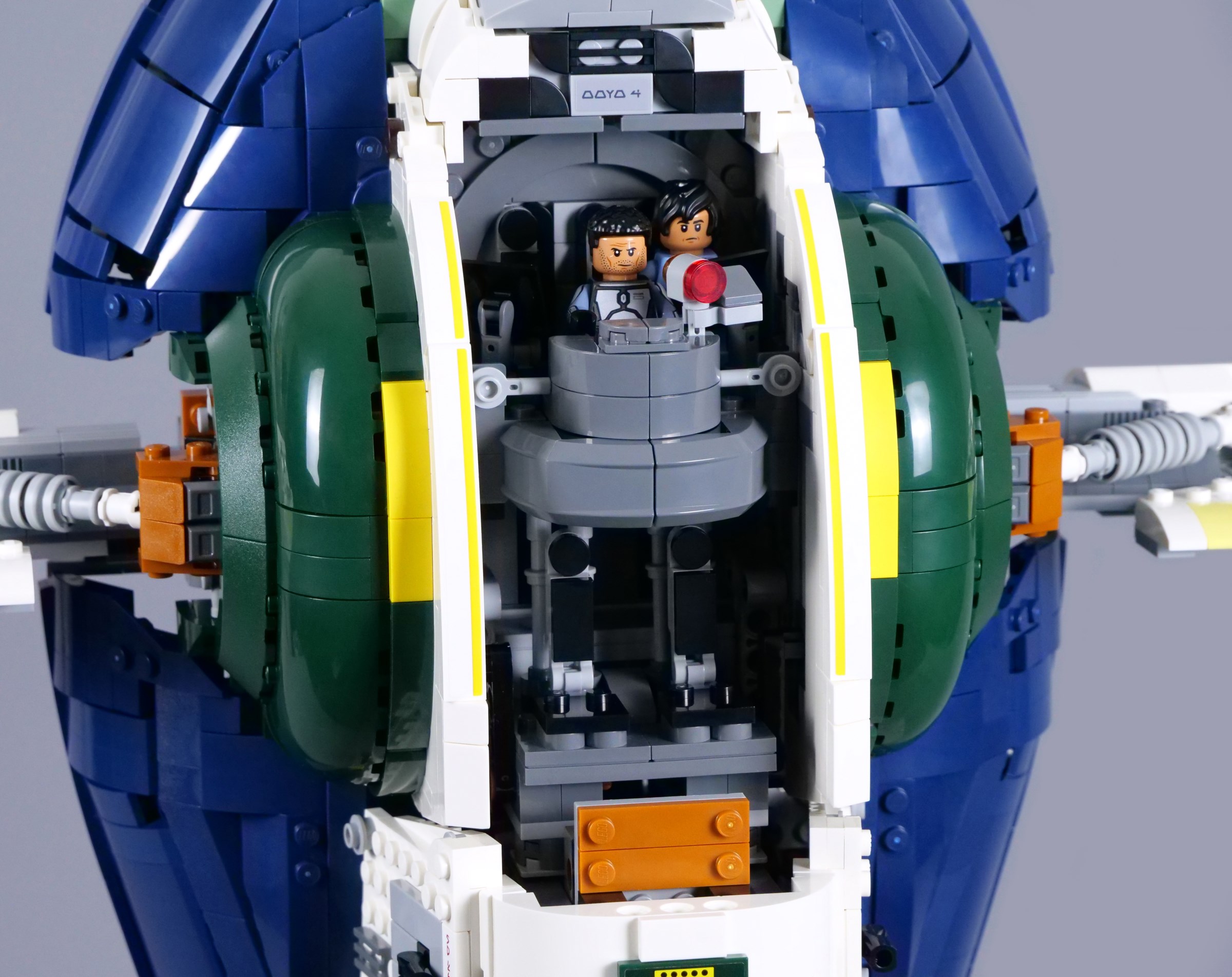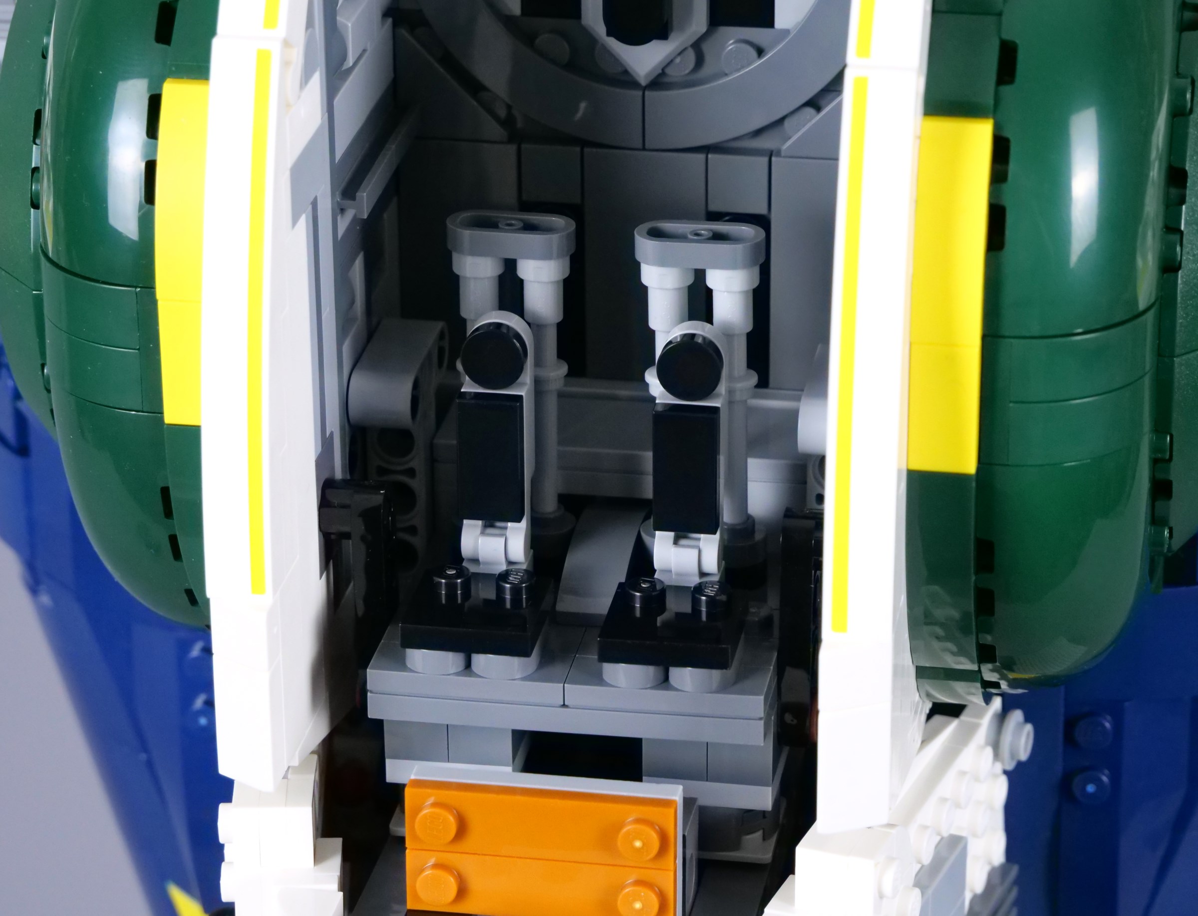 The canopy is easily removable to access the interior, which is spread over two decks. I have seen some criticism that the cockpit does not rotate with the wings, but that is not a feature of Jango's Slave I. The gyroscopic cockpit was presumably added by Boba Fett, although Hondo Ohnaka is a candidate too, especially given the ship's terrible condition when it came into his possession during the Clone Wars.