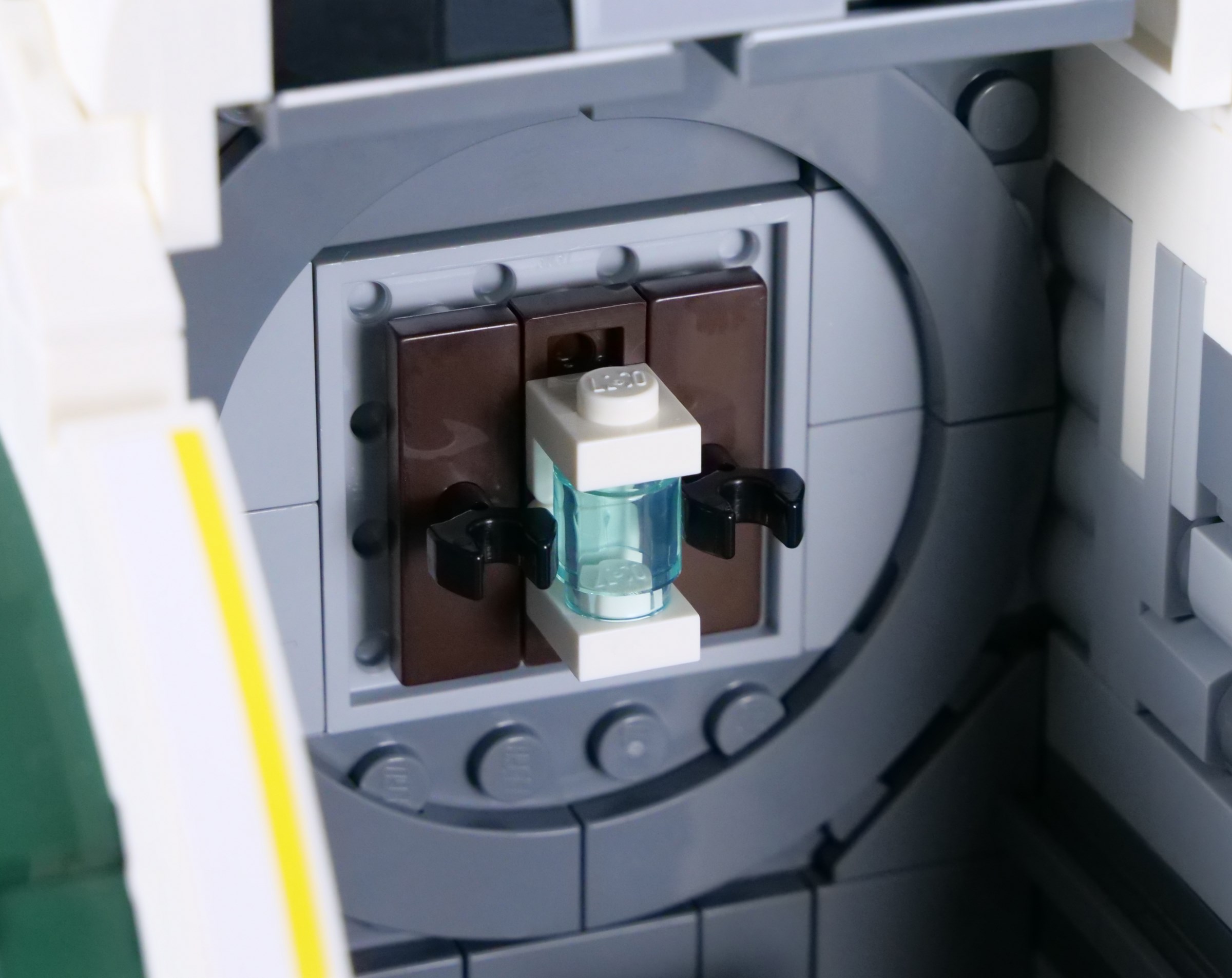 Star Wars: The Clone Wars gives an extended look at the vessel's interior and a door located behind the cockpit. There is no space for a proper door and adjoining dormitory on the LEGO model, unsurprisingly, but the black tiles and frame around the door look marvellous, even so.