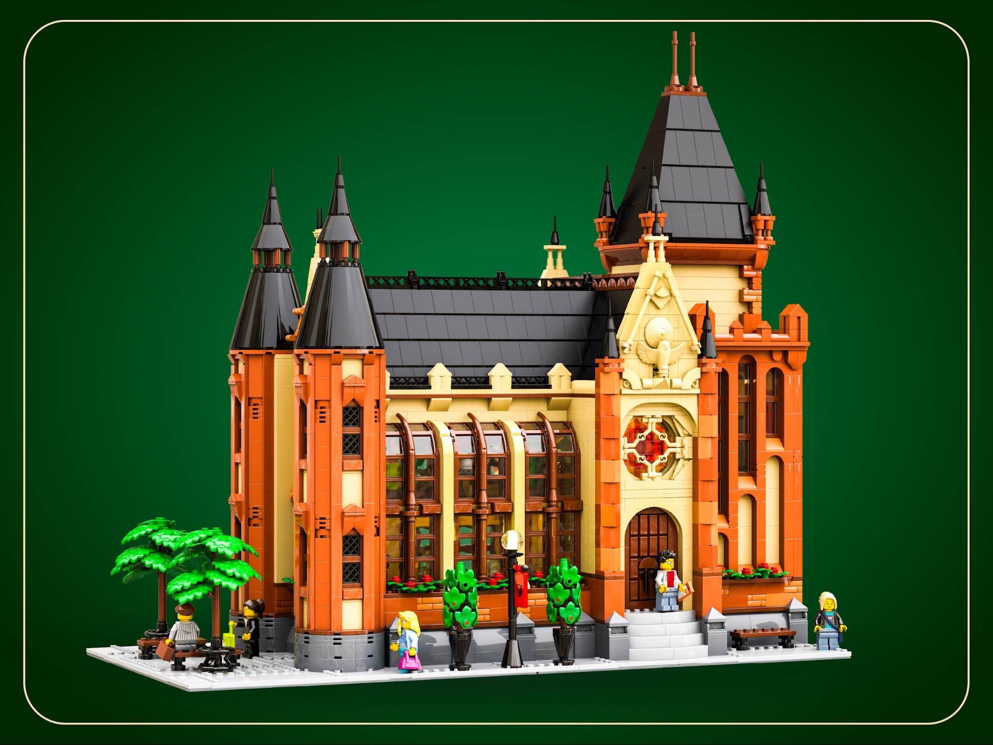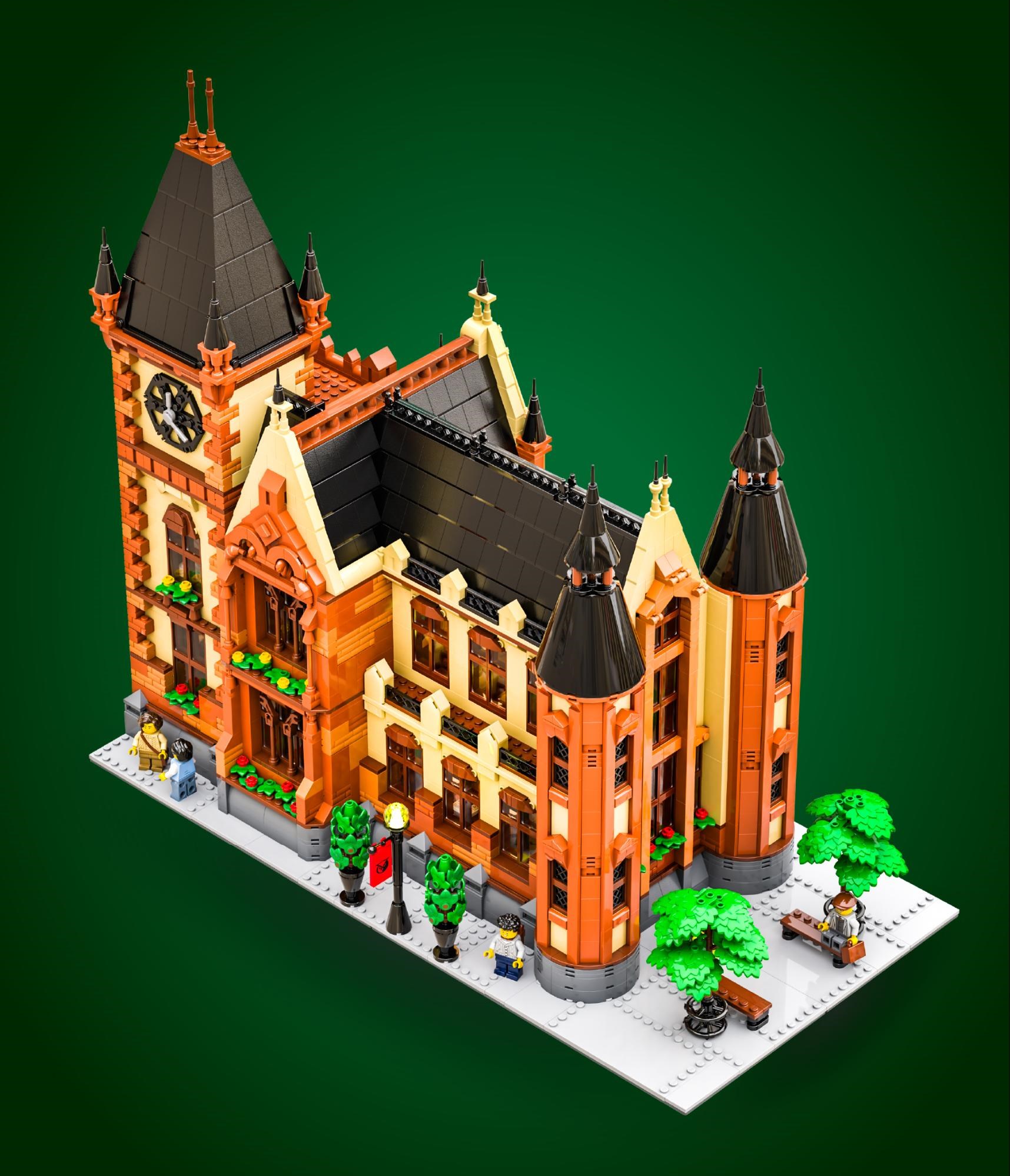 I first started designing a university-themed model for series 5, but it didn’t work out. It began as a modular-type submission, but rule changes implemented around that time prevented future submissions in the Icons modular format. Additionally, the design was primarily done in tan and ended up looking a bit too plain compared to what I was imagining, and the part count was quickly inflating past what I was aiming for.