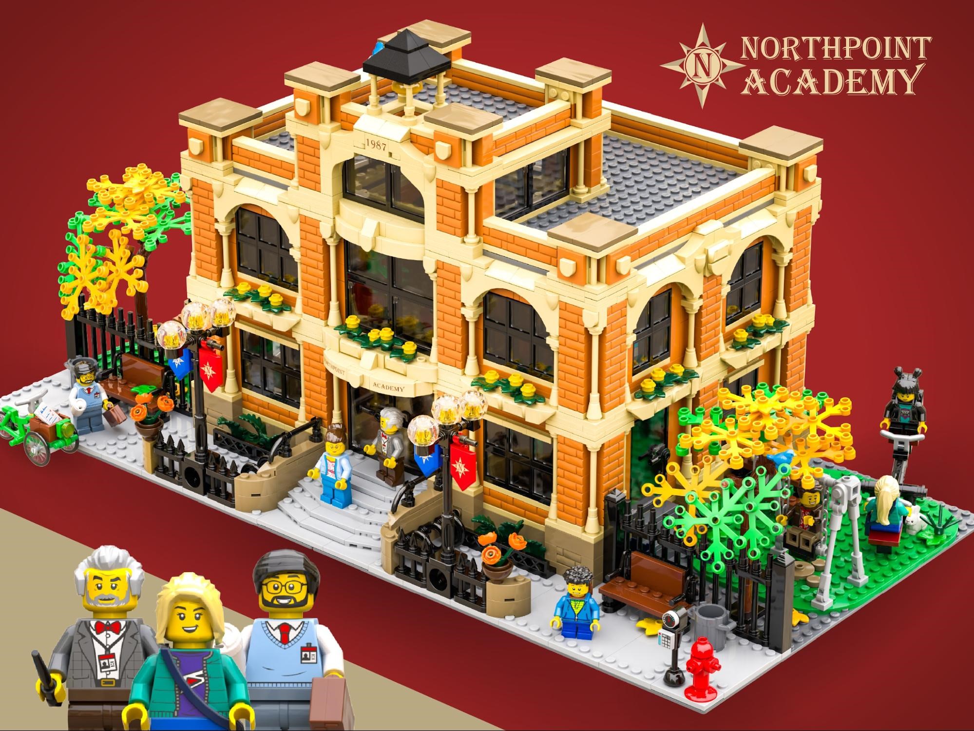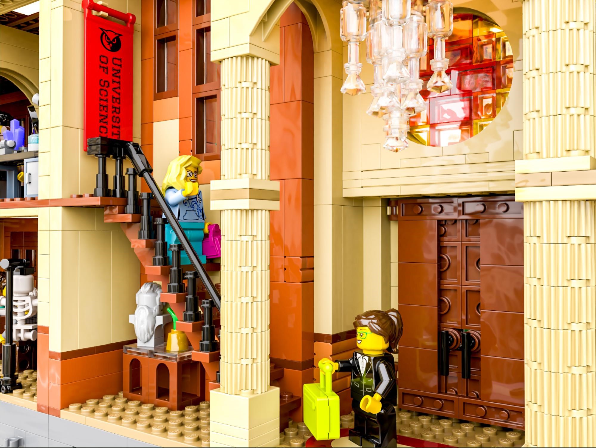 Although I’ve created many different kinds of builds in many different themes, one area I was always interested in was creating some education for our minifigures. LEGO has created surprisingly few sets in this theme, especially sets fitting for an adult fan’s city layout. This theme started with my series 4 submission, Northpoint School, a model that has continued to evolve and is still being submitted under the name Northpoint Academy. Positive feedback from that model encouraged me to continue exploring educational-themed sets, and the concept of a university for minifigures to further their education seemed fitting.