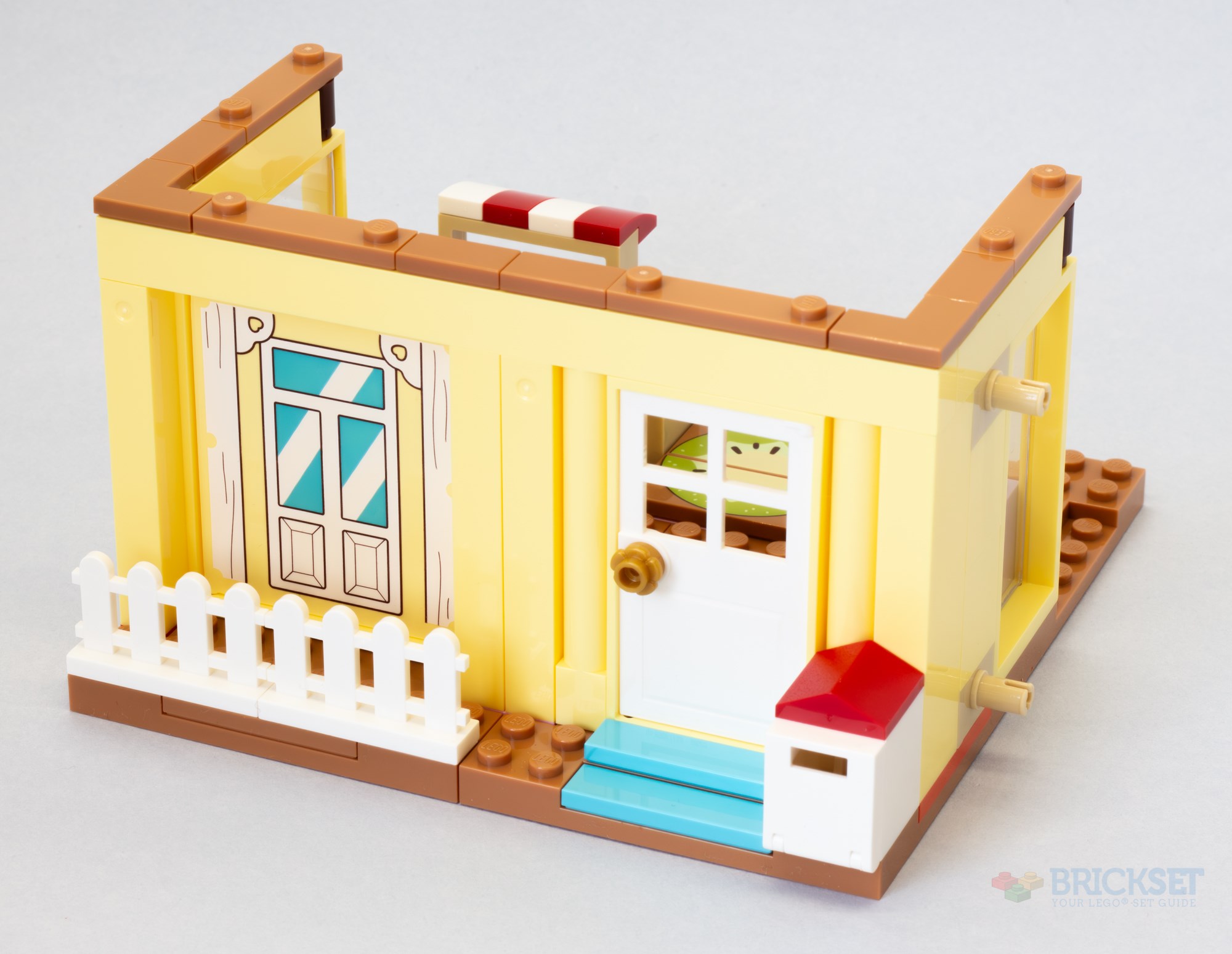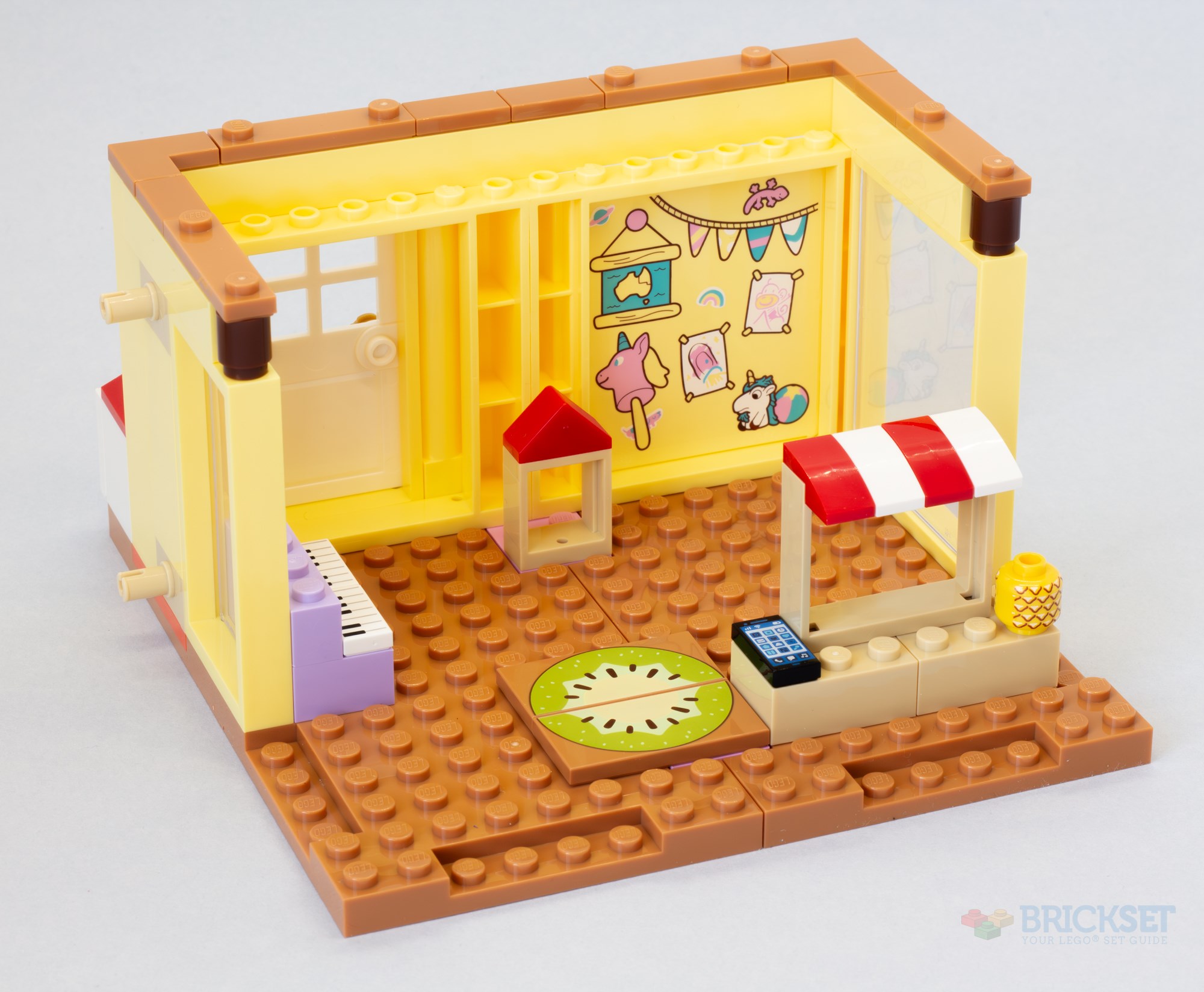 As a 4+ set, the rooms are built in a similar manner to other houses aimed at the same range, such as 10788 Gabby's Dollhouse. The walls are primarily large panels, placed on 8x16 plates, and topped mostly with tiles and the odd stud to enable easily being taken apart for play. The downstairs of the house is built first, with a white picket fence and letterbox on the outside. The printed panel shows a timber-framed window typical of a Queenslander property.