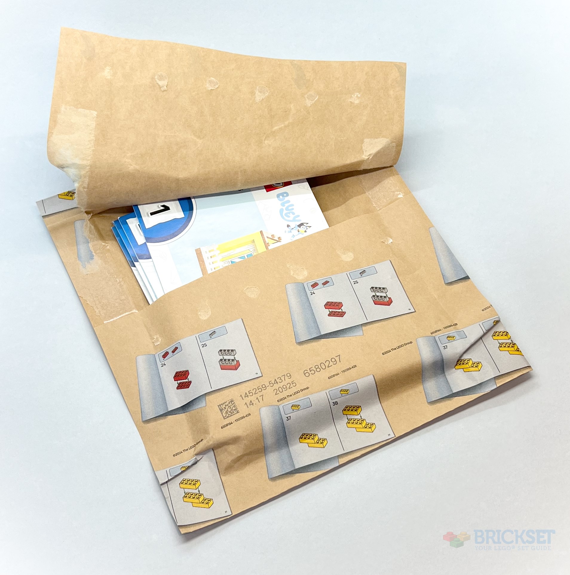 Before I dive into the review proper, the instruction manuals were packaged in an interesting way I'd never seen before. Usually, they're either loose, in a plastic wrap, or in a cardboard envelope. This time, they were in a sealed paper bag decorated with images of instruction manuals.
