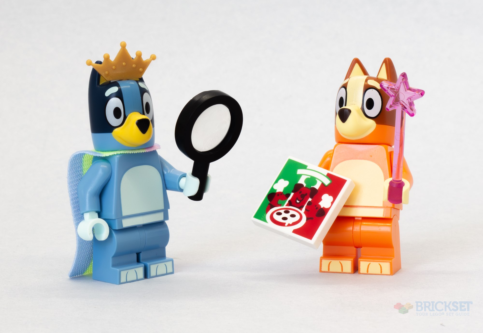 In the show, Bingo is slightly shorter than Bluey, as you'd expect in the age difference between a five-year-old and seven-year-old. In minifigure form, however, they're identical.