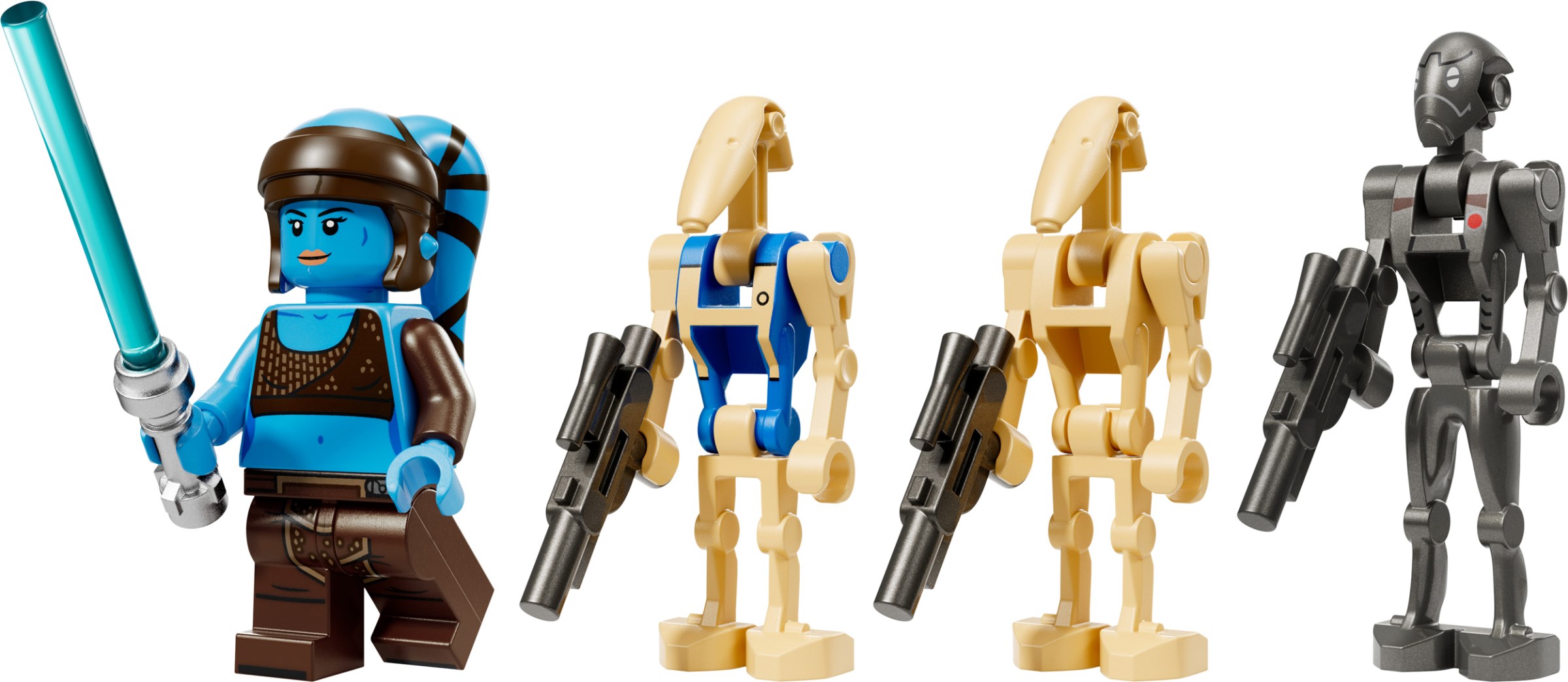 - Aayla Secura, Commander Bly, Pilot Battle Droid, Battle Droids (6), Commando Droids (3)