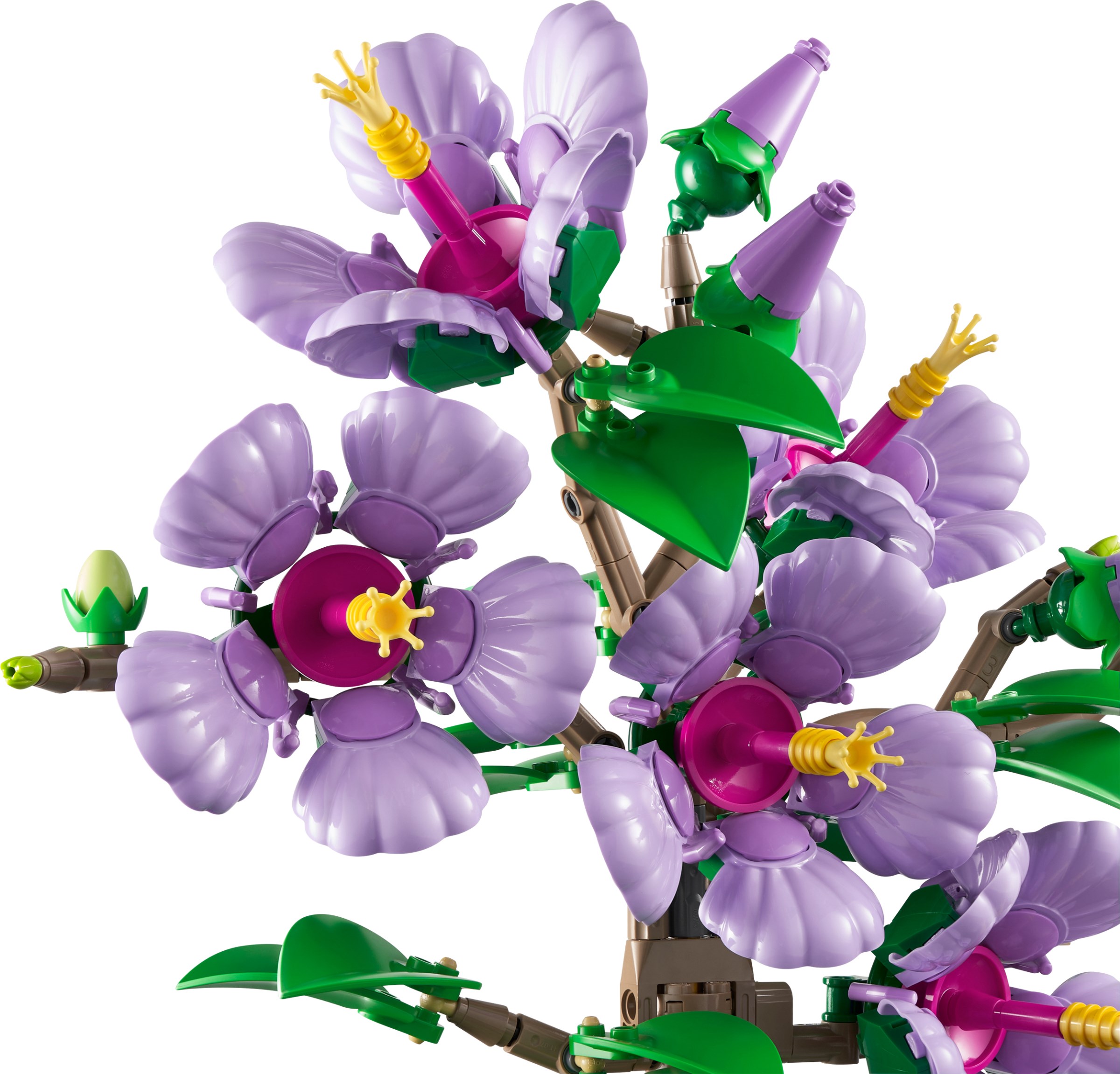 Enjoy building the LEGO plant, which features 5 large blooms, 4 faux flowers that are about to blossom and 2 young flower buds, before discovering the details. Capturing the gentle beauty of nature, the large blooms have lavender-coloured petals and yellow stamens, while the leaves are pale green. Once you've finished building the hibiscus, you can move the petals and position the leaves to add a touch of customisation to your creation.