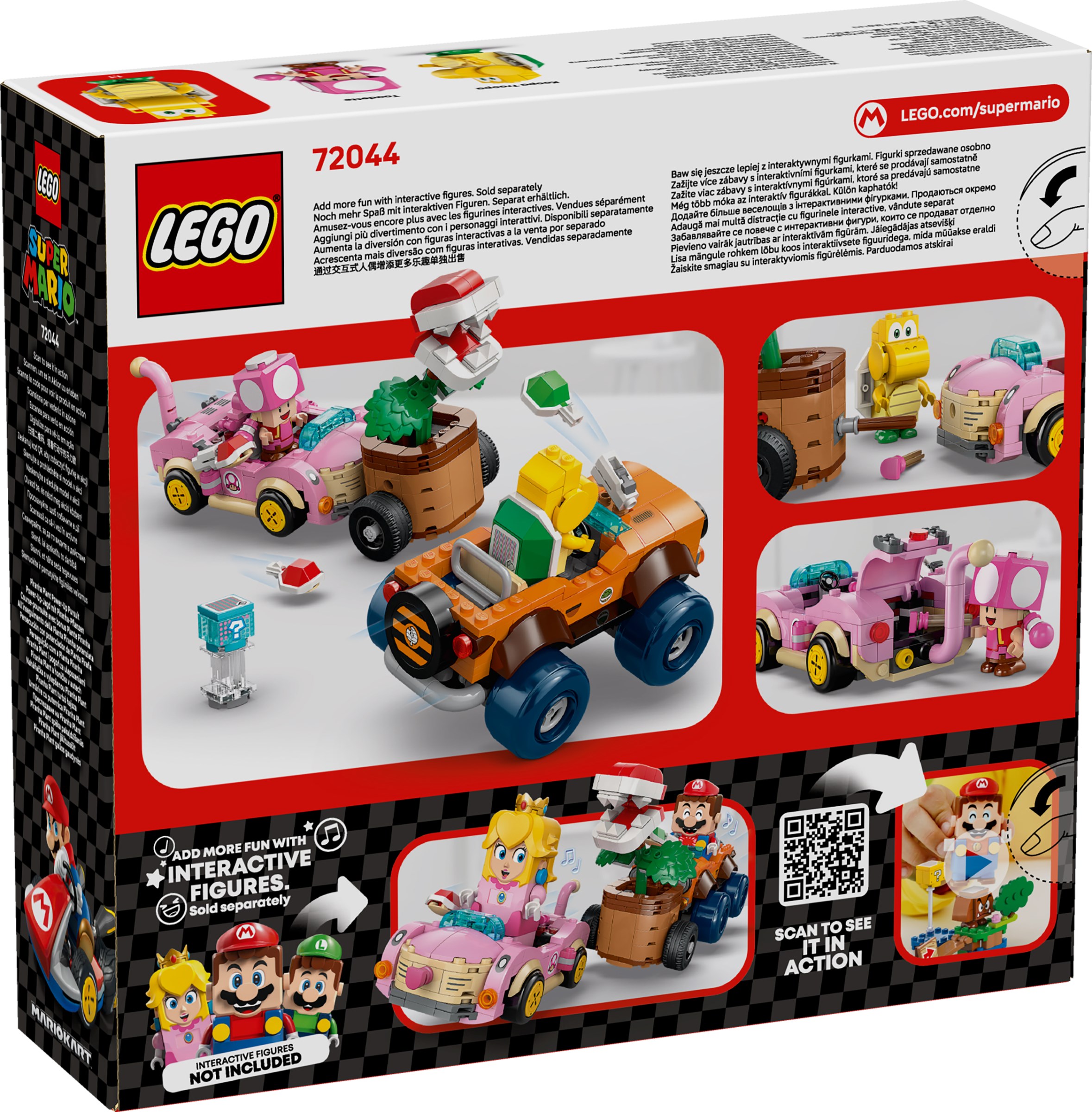 Add a LEGO Mario, LEGO Luigi or LEGO Peach figure (from sets 71439, 71440, 71441 or 72043 – sold separately) for interactive play, including getting random digital items from the Item Box and triggering Mario Kart sound/visual effects when they drive the vehicles.