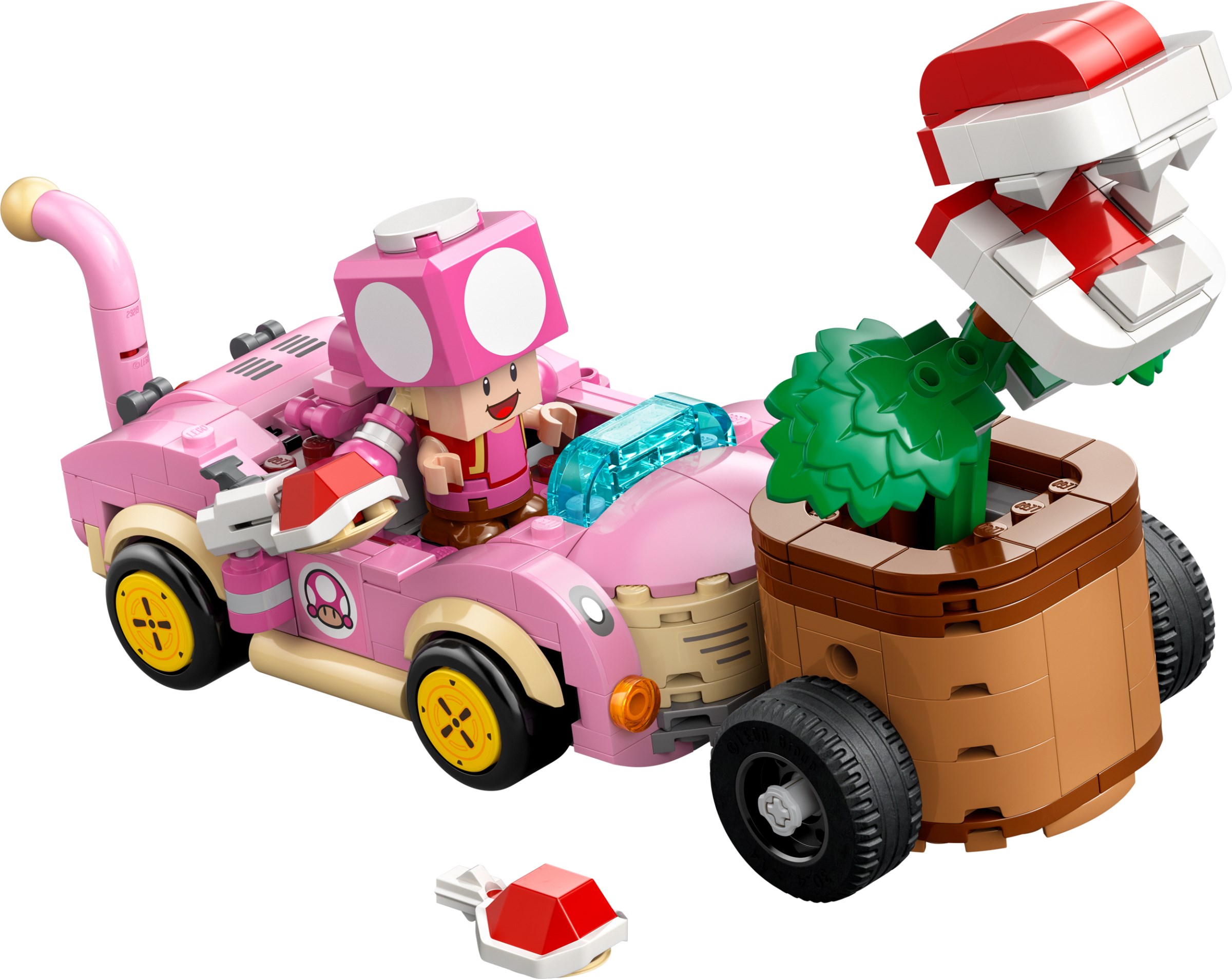 Team up with Toadette or the Koopa Troopa for a Piranha Plant Power-Up Pursuit with this Mario Kart toy building set for kids (72044). A top LEGO Super Mario gift for boys, girls and gamers aged 8 and over, the set features detailed buildable models of Toadette in the Cat Cruiser and a Koopa Troopa in the Tanooki Kart for pretend play. Each kart has drifting action and shell-launching function. Attach the Piranha Plant figure to either kart and see how it moves when the kart is in motion.